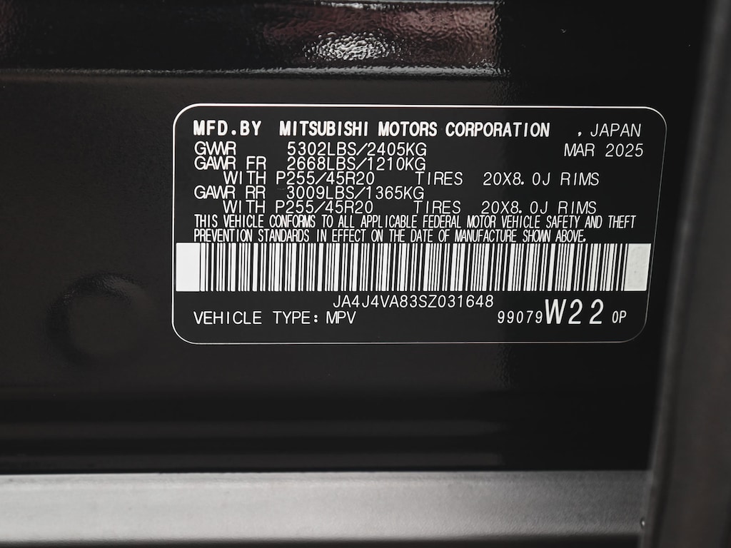 - Front tires: 255/45WR20.0