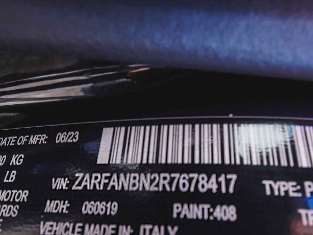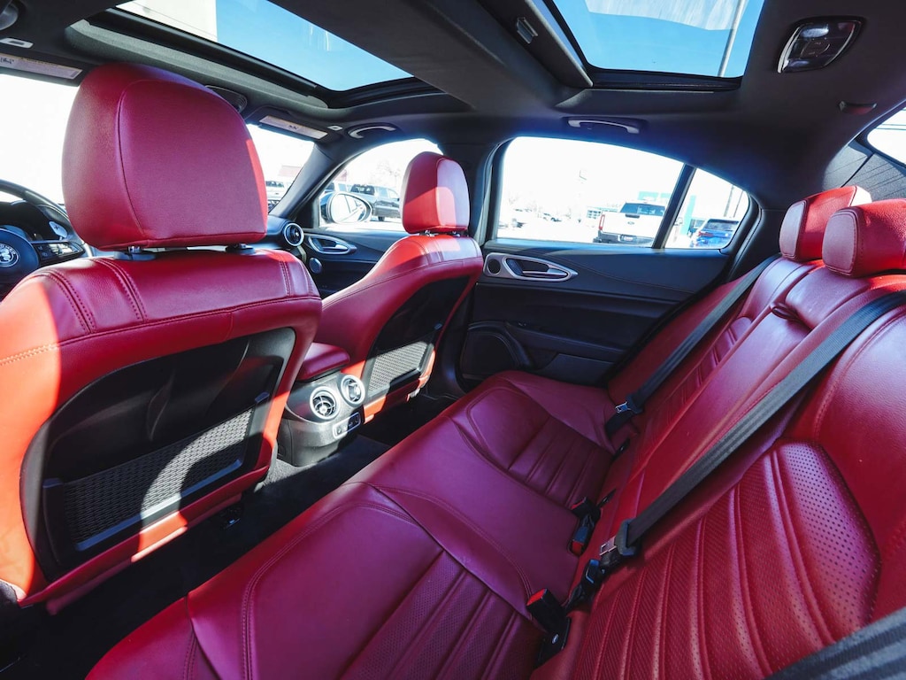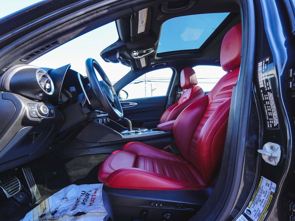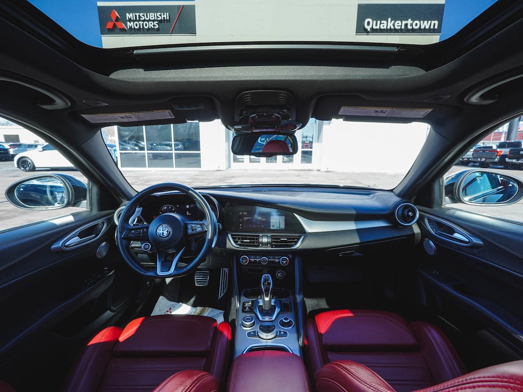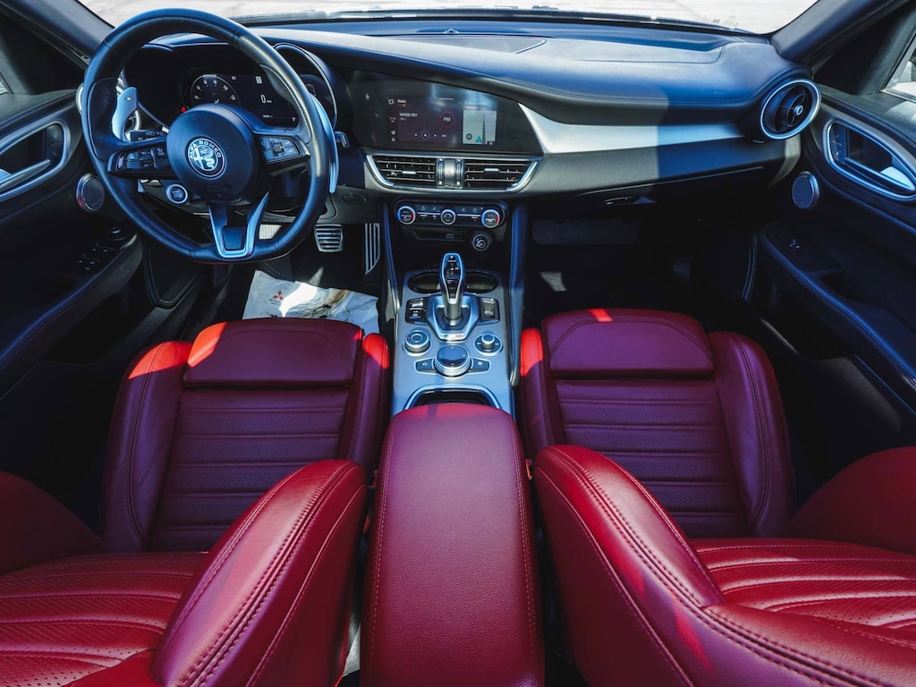 2024 Alfa Romeo Giulia Veloce ONE OWNER, BLUE TOOTH, NEW PA STATE INSPECTION, FULLY RECONDITIONED, NAVIGATION, ALLOY WHEELS, NON-SMOKER, SUNROOF/MOONROOF, LEATHER, BACK UP CAMERA, Giulia Veloce Ti, 4D Sedan, I4, 8-Speed Automatic, AWD, Vulcano Black Metallic, Black/Red w/Sport Leather Seats, 14 Speaker harman/kardon Premium Audio, 4-Wheel Disc Brakes, ABS brakes, Active Assist Plus Package (DISC), Active Blind Spot Assist, Active Driving Assist System, Aluminum Steering Column Mounted Paddle Shifters, AM/FM radio: SiriusXM, Apple CarPlay/Android Auto, Auto High-beam Headlights, Auto-dimming door mirrors, Auto-dimming Rear-View mirror, Automatic temperature control, Brake assist, Cruise control, Dark Miron V Scudetto Grille, Driver Attention Alert, Dual front impact airbags, Dual front side impact airbags, Electronic Stability Control, Exterior Parking Camera Rear, Four wheel independent suspension, Front dual zone A/C, Fully automatic headlights, Garage door transmitter, Heated door mirrors, Heated front seats, Heated rear seats, Heated steering wheel, Illuminated entry, Intelligent Speed Assist (ISA), Knee airbag, Lane Keep Assist, Leather Dash & Upper Doors, Leather Shift Knob, Leather steering wheel, Limited Slip Differential Rear Axle, Low tire pressure warning, Memory seat, Navigation System, Occupant sensing airbag, Overhead airbag, Panic alarm, Power Adjustable Bolster, Power door mirrors, Power driver seat, Power moonroof, Power passenger seat, Premium Interior & Sound Package, Quick Order Package 22S Veloce, Radio: AM/FM/HD 8.8" w/Navigation, Rain sensing wipers, Rear window defroster, Remote keyless entry, Security system, Sport Leather Seats, Sport steering wheel, Telescoping steering wheel, Tilt steering wheel, Traction control, Traffic Sign Information, Traffic Sign Recognition, Turn signal indicator mirrors, Veloce Rear Fascia, Wheels: 19" x 8.0" Sport 5-Hole Aluminum. 23/31 City/Highway MPG