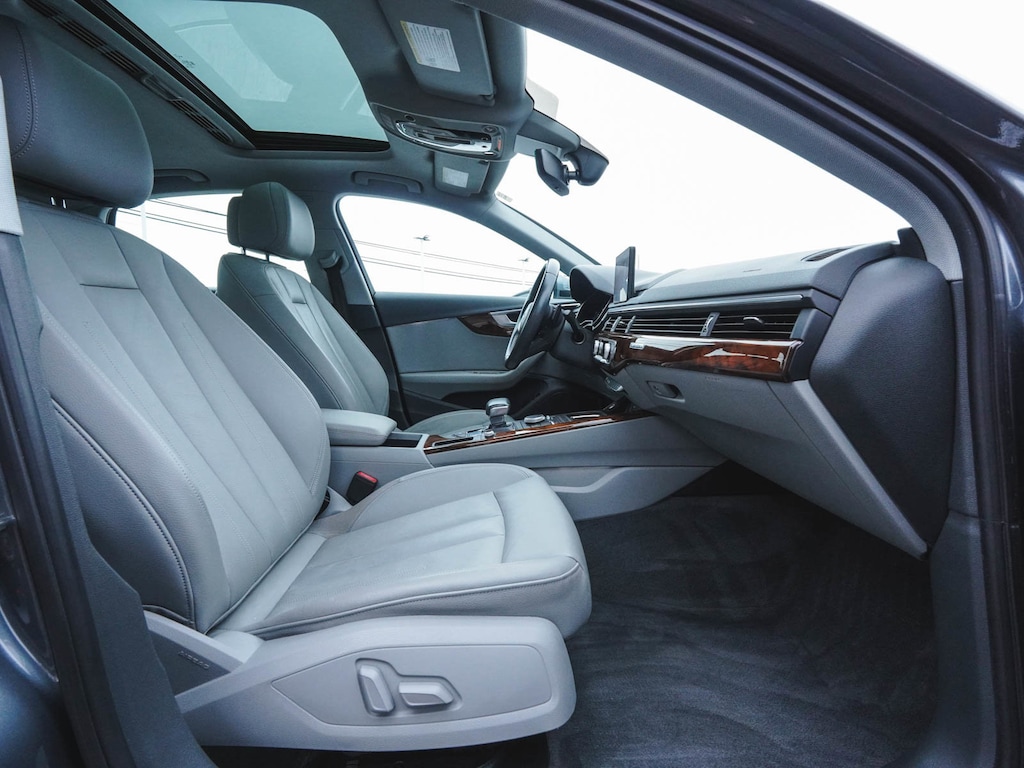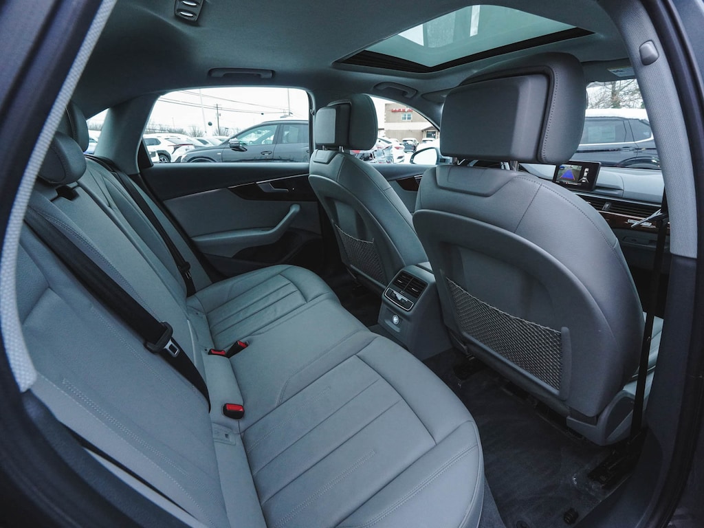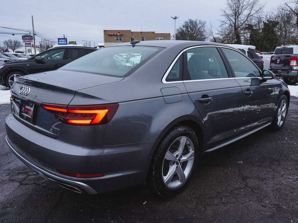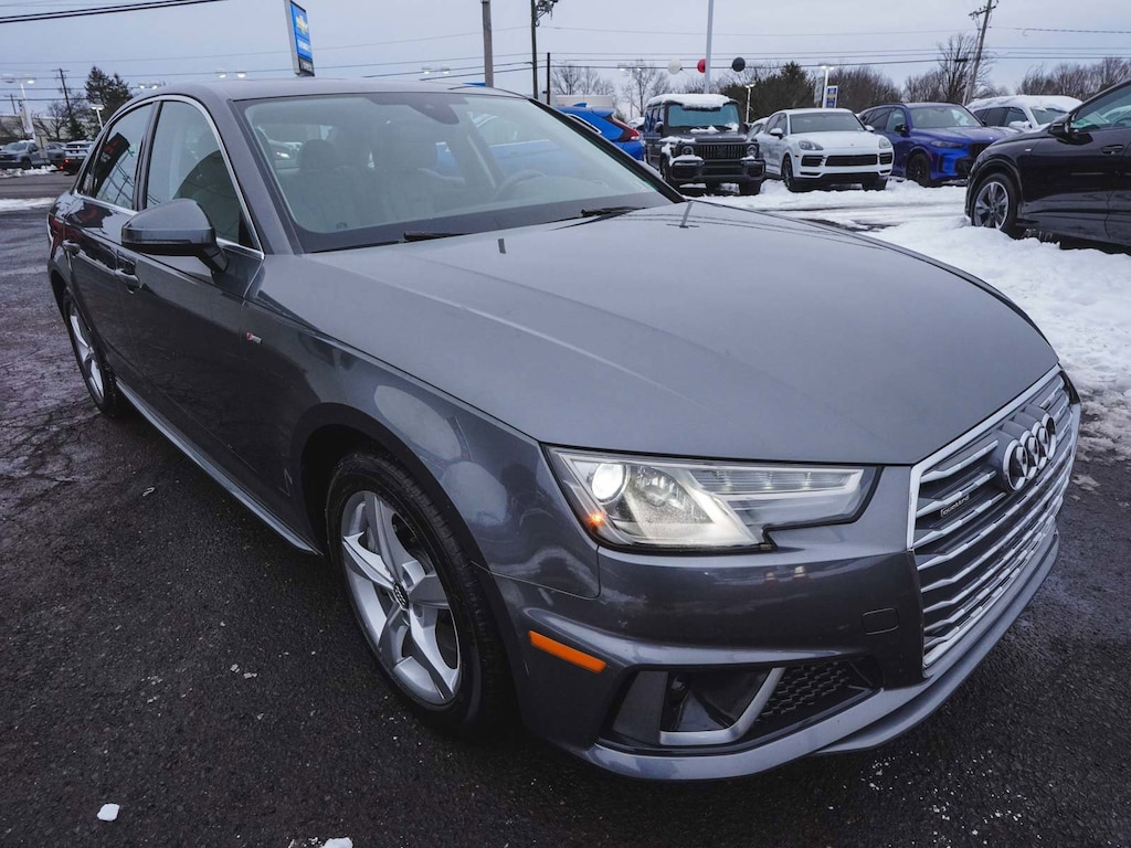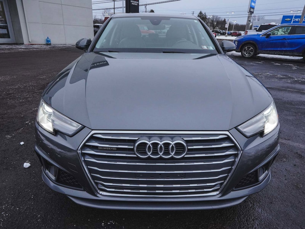 2019 Audi A4 2.0T Premium quattro CLEAN CARFAX, BLUE TOOTH, NEW PA STATE INSPECTION, FULLY RECONDITIONED, NAVIGATION, ALLOY WHEELS, SUNROOF/MOONROOF, LEATHER, BACK UP CAMERA, A4 2.0T Premium quattro, 4D Sedan, 2.0L I4 TFSI DOHC, 7-Speed Automatic S tronic, quattro, Monsoon Gray Metallic, Rock Gray/Gray w/Leather Seating Surfaces, 10 Speakers, 4-Wheel Disc Brakes, ABS brakes, Alarm System w/Motion Sensor, AM/FM radio, Anti-whiplash front head restraints, Audi Advanced Key, Audi Beam-Rings, Audi Guard Wheel Lock Kit, Audi Pre Sense Rear, Audi Side Assist w/Rear Cross Traffic Assist, Audi smartphone interface (Apple CarPlay/Android Auto), Auto-Dimming Exterior Mirrors, Auto-dimming Rear-View mirror, Automatic temperature control, Brake assist, Convenience Package, Cruise control, Dual front impact airbags, Dual front side impact airbags, Electronic Stability Control, Exterior Parking Camera Rear, Four wheel independent suspension, Front dual zone A/C, Front fog lights, Garage door transmitter: HomeLink, Genuine wood console insert, Genuine wood dashboard insert, Genuine wood door panel insert, Heated door mirrors, Heated Front Bucket Seats, High intensity discharge headlights: Xenon plus, Illuminated entry, Knee airbag, Leather Seating Surfaces, Leather Shift Knob, Leather steering wheel, Low tire pressure warning, Memory for Driver's Seat, Navigation System, Occupant sensing airbag, Overhead airbag, Panic alarm, Power door mirrors, Power driver seat, Power moonroof, Power passenger seat, Radio: Audi Sound System, Rain sensing wipers, Rear air conditioning, Rear window defroster, Remote keyless entry, SiriusXM Satellite Radio, Telescoping steering wheel, Tilt steering wheel, Traction control, Turn signal indicator mirrors, Wheels: 17" 5-Arm Design. 23/34 City/Highway MPG Odometer is 13629 miles below market average!
