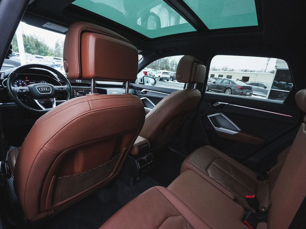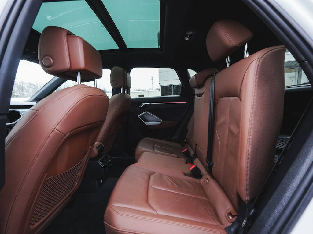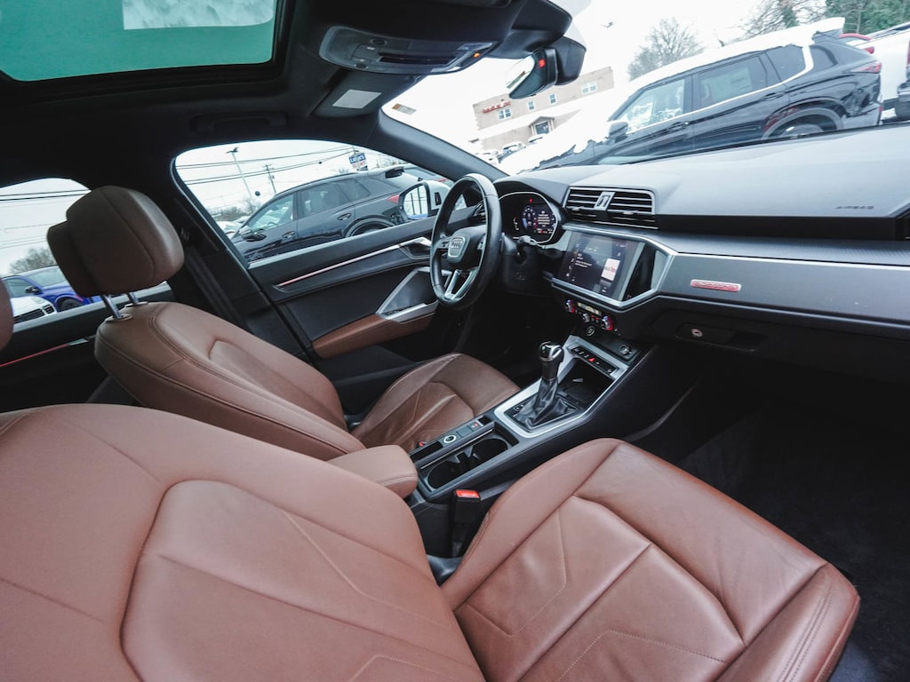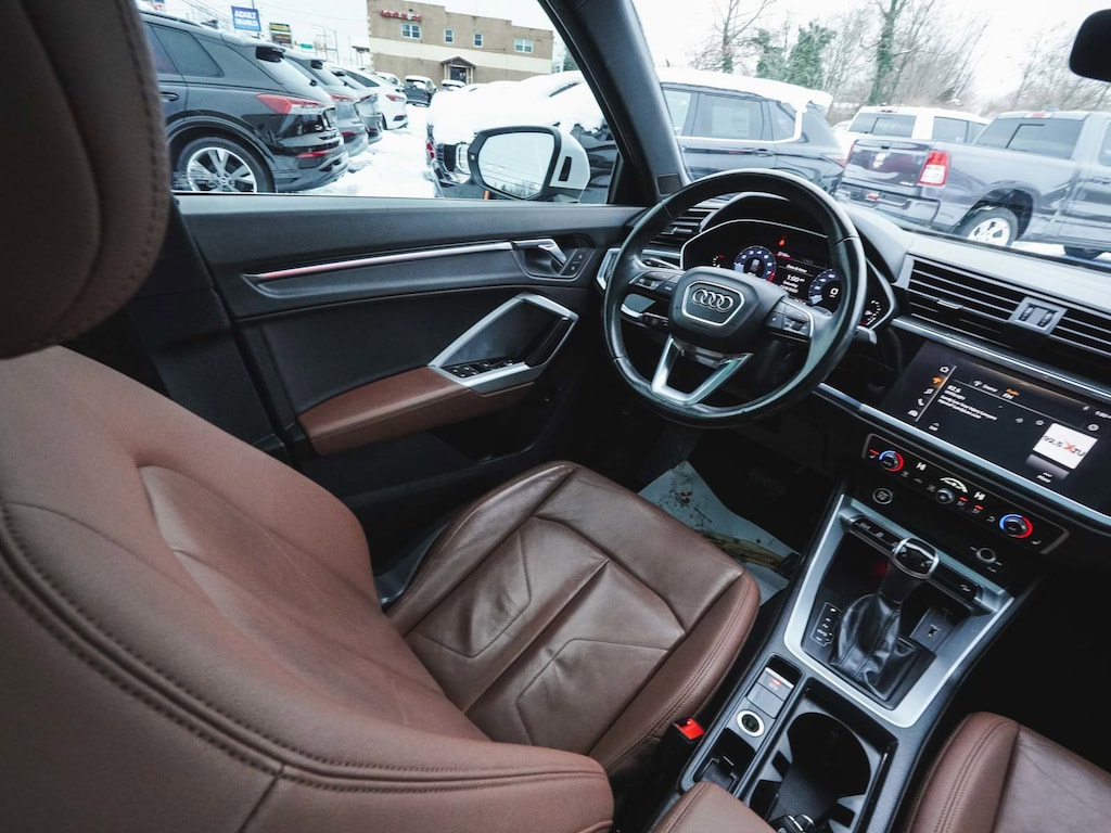 2021 Audi Q3 Premium Plus S Line quattro BLUE TOOTH, NEW PA STATE INSPECTION, FULLY RECONDITIONED, NAVIGATION, ALLOY WHEELS, PANORAMIC SUNROOF, LEATHER, BACK UP CAMERA, Q3 Premium Plus S Line quattro, 4D Sport Utility, 2.0L 4-Cylinder TFSI, 8-Speed Automatic with Tiptronic, quattro, Ibis White, Okapi Brown w/Leather Seating Surfaces, 10 Speakers, 4-Wheel Disc Brakes, ABS brakes, Adaptive Cruise Assist w/Traffic Jam Assist, Alarm w/Motion Sensor, Aluminum Spectrum Inlays, AM/FM radio, Audi Advanced Key, Audi Beam-Rings, Audi Parking System Plus, Audi Phone Box w/Wireless Charging, Audi Side Assist, Audi smartphone interface (Apple CarPlay/Android Auto), Auto High-beam Headlights, Automatic temperature control, Brake assist, Convenience Package, Customizable LED Interior Lighting Package Plus, Dual front impact airbags, Dual front side impact airbags, Electronic Stability Control, Exterior Parking Camera Rear, Four wheel independent suspension, Frameless Auto-Dimming Interior Mirror w/Compass, Front dual zone A/C, Front fog lights, Full LED Headlights w/Unique DRL Signature, Fully automatic headlights, Heated Front Bucket Seats, Heated Power-Folding Exterior Mirrors, HomeLink Garage Door Opener, Illuminated entry, Knee airbag, Leather Seating Surfaces, Leather Shift Knob, Leather steering wheel, LED Interior Lighting Package, Low tire pressure warning, Navigation System, Occupant sensing airbag, Overhead airbag, Panic alarm, Power door mirrors, Power driver seat, Power Liftgate, Power passenger seat, Premium Plus Package, Radio: Audi Sound System, Rain sensing wipers, Rear window defroster, Rear window wiper, Remote keyless entry, SiriusXM All Access Service, Stainless Steel Trunk Sill, Telescoping steering wheel, Tilt steering wheel, Traction control, Turn signal indicator mirrors, Wheels: 19" 5-Twin-Arm Design. 20/28 City/Highway MPG