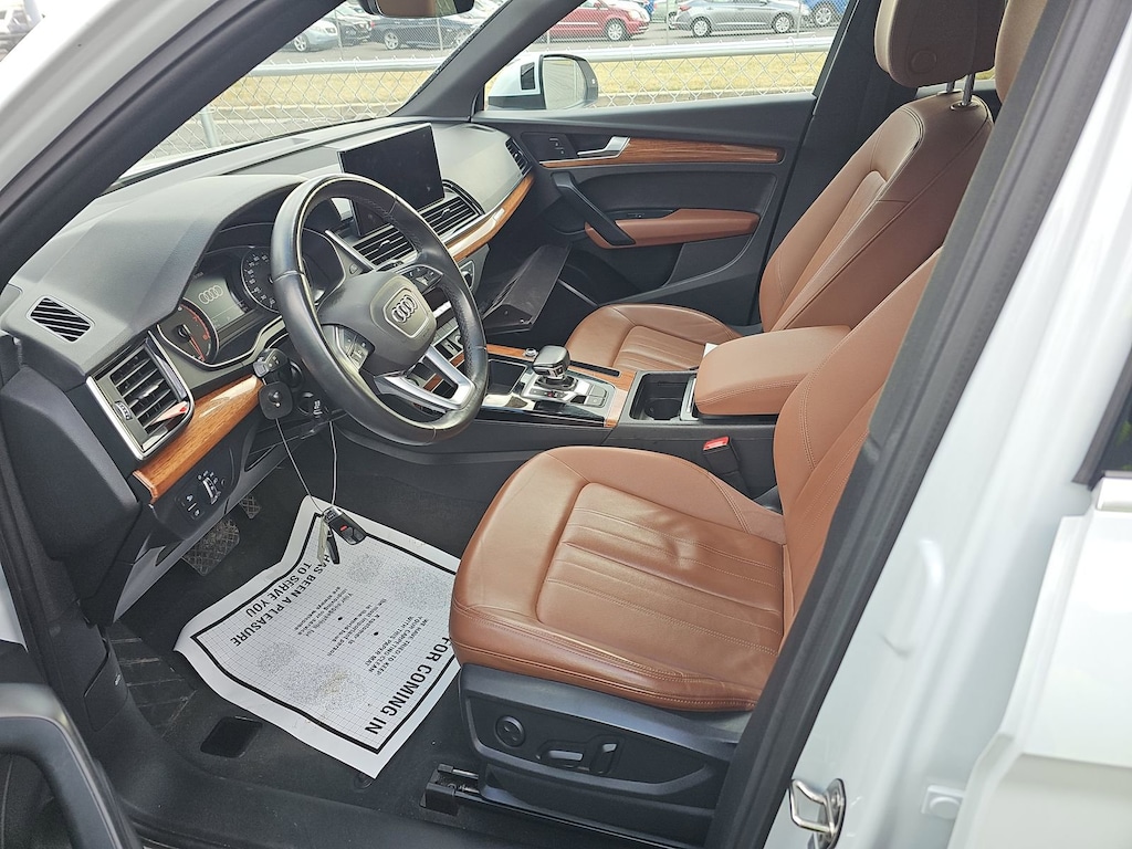 2021 Audi Q5 45 Premium quattro Recent Arrival! BLUE TOOTH, NEW PA STATE INSPECTION, FULLY RECONDITIONED, NAVIGATION, ALLOY WHEELS, PANORAMIC SUNROOF, LEATHER, BACK UP CAMERA, Q5 45 Premium quattro, 4D Sport Utility, 2.0L Turbocharged, 7-Speed Automatic S tronic, quattro, Ibis White, Okapi Brown w/Leather Seating Surfaces, 10 Speakers, 4-Wheel Disc Brakes, ABS brakes, AM/FM radio, Audi Advanced Key, Audi Beam-Rings, Auto High-beam Headlights, Auto-Dimming Power Folding Exterior Mirrors, Auto-dimming Rear-View mirror, Automatic temperature control, Brake assist, Convenience Package, Cruise control, Driver Seat Memory, Dual front impact airbags, Dual front side impact airbags, Electronic Stability Control, Exterior Parking Camera Rear, Four wheel independent suspension, Front dual zone A/C, Front fog lights, Garage door transmitter: HomeLink, Genuine wood console insert, Genuine wood dashboard insert, Genuine wood door panel insert, Heated 8-Way Power Front Bucket Seats, Heated door mirrors, Heated Steering Wheel, Illuminated entry, Leather Seating Surfaces, Leather Shift Knob, Low tire pressure warning, Navigation System, Occupant sensing airbag, Overhead airbag, Panic alarm, Panoramic Sunroof, Power door mirrors, Power Liftgate, Radio: Audi Sound System, Rain sensing wipers, Rear window defroster, Rear window wiper, Remote keyless entry, Security system, SiriusXM All Access Service, Telescoping steering wheel, Tilt steering wheel, Traction control, Turn signal indicator mirrors, USB Cables, Wheels: 19" 5-Double-Arm Design Bi-Color Finish. 23/28 City/Highway MPG Odometer is 23627 miles below market average!