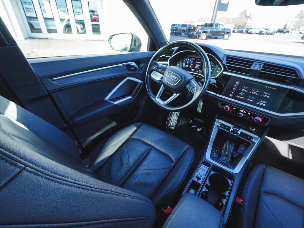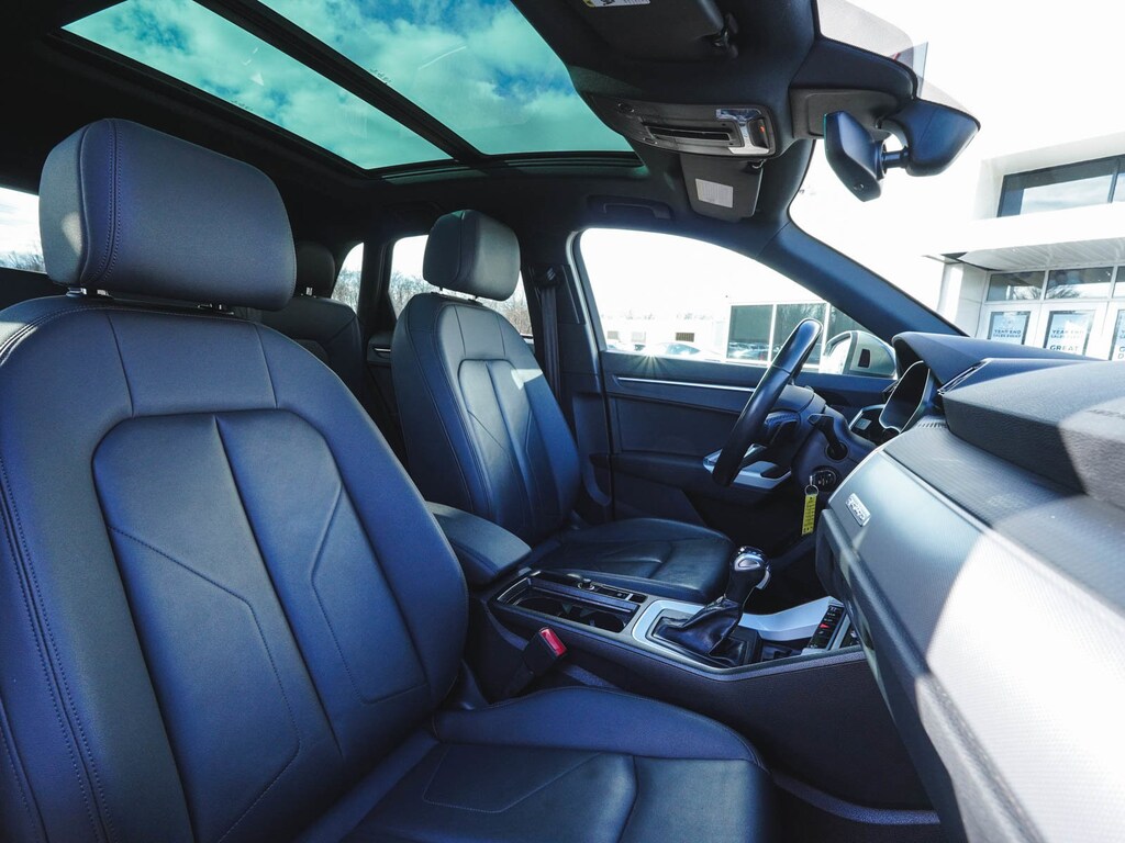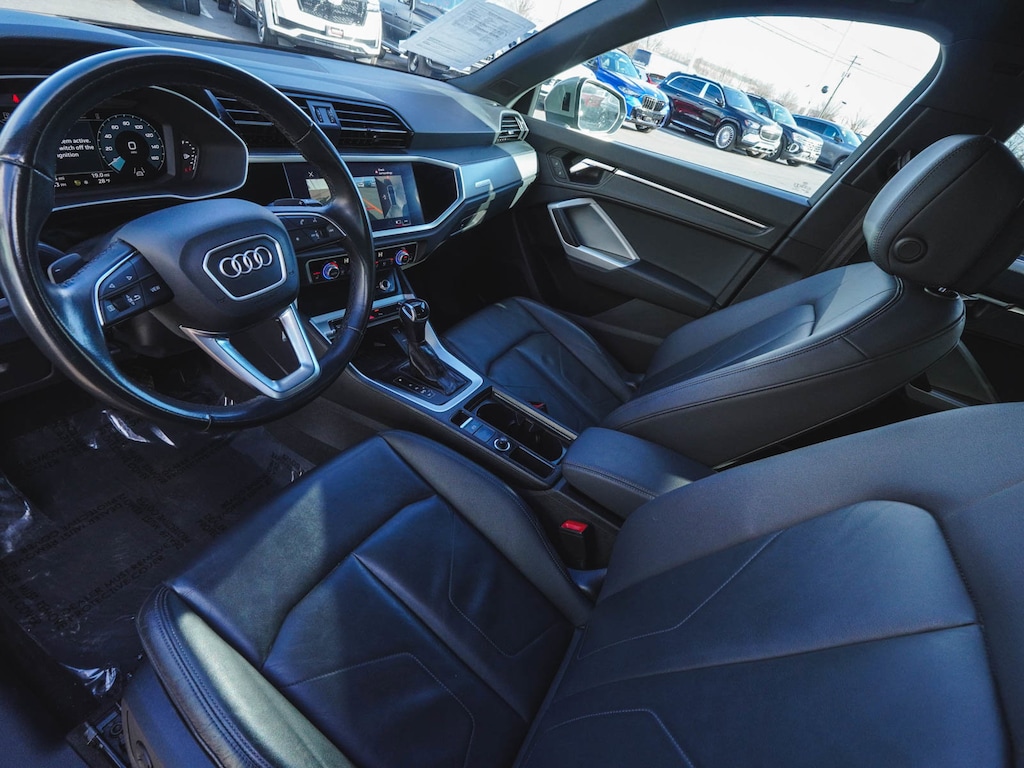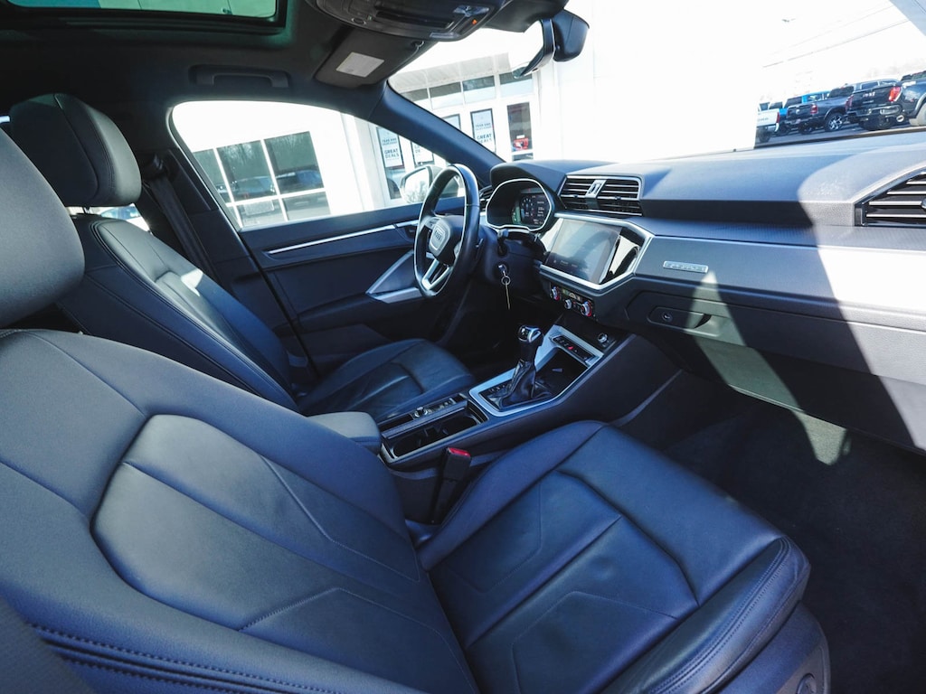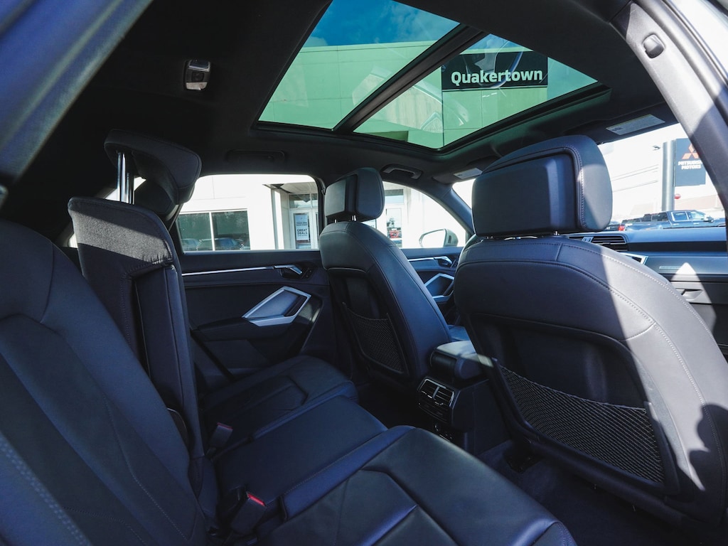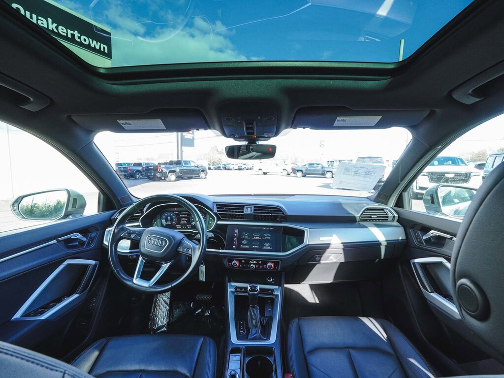 2022 Audi Q3 Premium Plus S Line quattro ONE OWNER, BLUE TOOTH, NEW PA STATE INSPECTION, FULLY RECONDITIONED, NAVIGATION, ALLOY WHEELS, PANORAMIC SUNROOF, LEATHER, BACK UP CAMERA, Q3 Premium Plus S Line quattro, 4D Sport Utility, 2.0L 4-Cylinder TFSI, 8-Speed Automatic with Tiptronic, quattro, Chronos Gray Metallic, Black w/Leather Seating Surfaces, 10 Speakers, 19" Wheel Package, 4-Wheel Disc Brakes, ABS brakes, Adaptive Cruise Assist w/Lane Guidance, Alarm w/Motion Sensor, AM/FM radio, Audi Advanced Key, Audi Phone Box w/Wireless Charging, Audi smartphone interface (Apple CarPlay/Android Auto), Auto High-beam Headlights, Automatic temperature control, Brake assist, Convenience Package, Customizable LED Interior Lighting Package Plus, Driver Memory, Dual front impact airbags, Dual front side impact airbags, Electronic Stability Control, Exterior Parking Camera Rear, Four wheel independent suspension, Frameless Auto-Dimming Interior Mirror w/Compass, Front dual zone A/C, Front fog lights, Full LED Headlights w/Unique DRL Signature, Fully automatic headlights, Heated Front Bucket Seats, Heated Power-Folding Exterior Mirrors, HomeLink Garage Door Opener, Illuminated entry, Knee airbag, Leather Seating Surfaces, Leather Shift Knob, Leather steering wheel, LED Interior Lighting Package, Low tire pressure warning, Navigation System, Occupant sensing airbag, Overhead airbag, Panic alarm, Power door mirrors, Power driver seat, Power Liftgate, Power moonroof: Panoramic, Power passenger seat, Premium Plus Package, Radio: Audi Sound System, Rain sensing wipers, Rear window defroster, Rear window wiper, Remote keyless entry, SiriusXM All Access Service, Stainless Steel Trunk Sill, Telescoping steering wheel, Tilt steering wheel, Topview Camera System, Traction control, Turn signal indicator mirrors, Wheels: 19" 5-Double-Spoke Dynamic Design. 21/28 City/Highway MPG