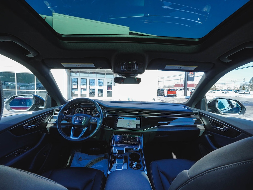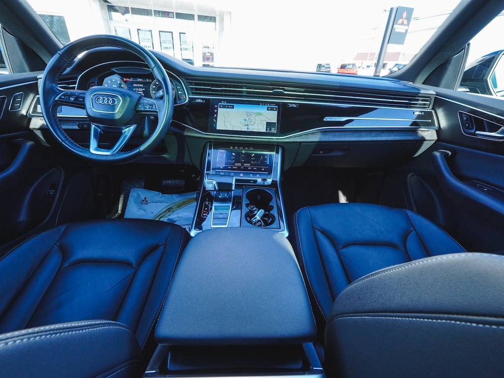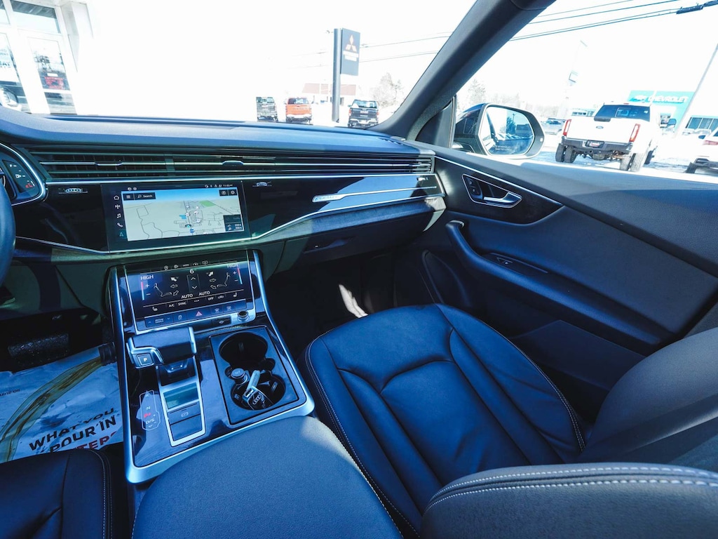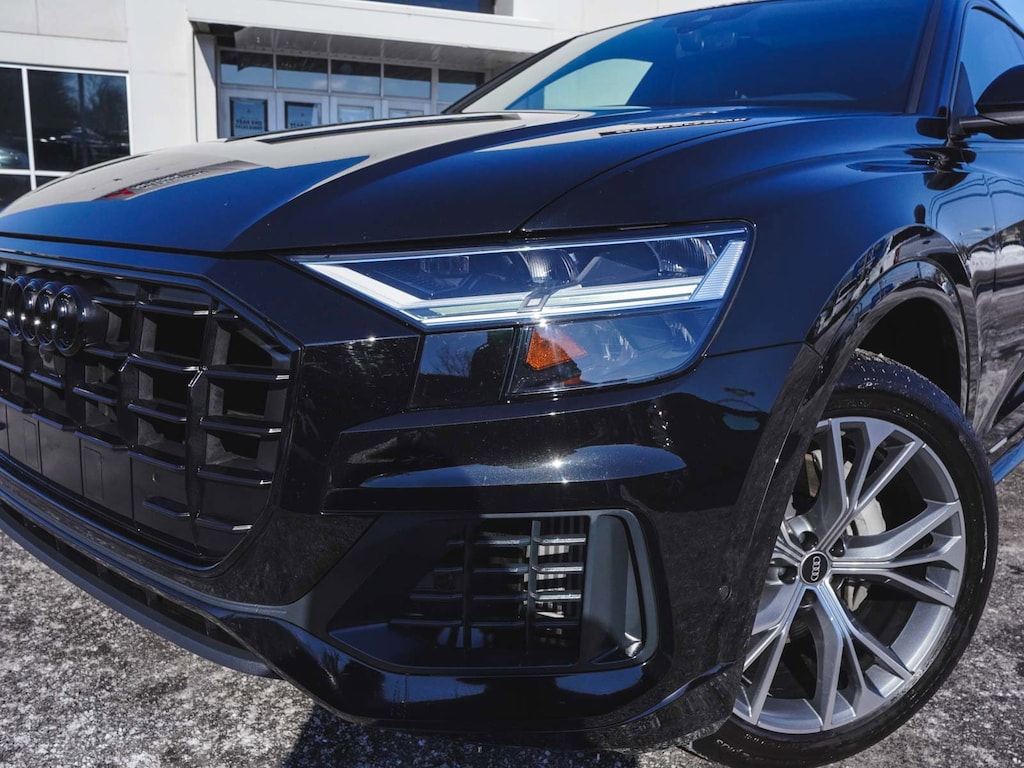New Price! 2022 Audi Q8 55 Premium quattro CLEAN CARFAX, ONE OWNER, BLUE TOOTH, NEW PA STATE INSPECTION, FULLY RECONDITIONED, NAVIGATION, PREMIUM WHEELS, PANORAMIC SUNROOF, LEATHER, BACK UP CAMERA, Q8 55 Premium quattro, 4D Sport Utility, 3.0L V6 Turbocharged DOHC 24V LEV3-ULEV70 335hp, 8-Speed Automatic with Tiptronic, quattro, Mythos Black Metallic, Black w/Leather Seating Surfaces, 10 Speakers, 4-Wheel Disc Brakes, ABS brakes, Adaptive suspension, AM/FM radio: SiriusXM, Audi Guard Wheel Lock Kit, Audi Phone Box w/Wireless Charging, Audi smartphone interface (Apple CarPlay/Android Auto), Auto High-beam Headlights, Auto-dimming door mirrors, Auto-dimming Rear-View mirror, Automatic temperature control, Black Audi Rings & Badges, Black Cloth Headliner, Black Front & Rear Bumpers, Black Optic Package, Brake assist, Convenience Package, Cruise control, Dual front impact airbags, Dual front side impact airbags, Electronic Stability Control, Exterior Parking Camera Rear, Four wheel independent suspension, Front & Rear Doors Audi Beam-Rings, Front dual zone A/C, Front fog lights, Fully automatic headlights, Garage door transmitter: HomeLink, Genuine wood door panel insert, Heated door mirrors, Heated Front Bucket Seats, Heated Steering Wheel, Illuminated entry, Leather Seating Surfaces, Leather Shift Knob, Leather steering wheel, Low tire pressure warning, Memory seat, Navigation system: Audi MMI Navigation plus with Touch Response, Occupant sensing airbag, Overhead airbag, Panic alarm, Power door mirrors, Power driver seat, Power Liftgate, Power moonroof: Panoramic, Power passenger seat, Radio: MMI Nav Plus w/MMI Touch Response, Rain sensing wipers, Rear air conditioning, Rear side impact airbag, Rear window defroster, Rear window wiper, Remote keyless entry, Security system, Steering wheel memory, Telescoping steering wheel, Tilt steering wheel, Top View Camera System, Tow Hitch Receiver, Towing 7 Pin Connector, Towing Package, Traction control, Turn signal indicator mirrors, Wheels: 21" Bi-Color 5-W-Spoke-Design. Odometer is 2433 miles below market average!