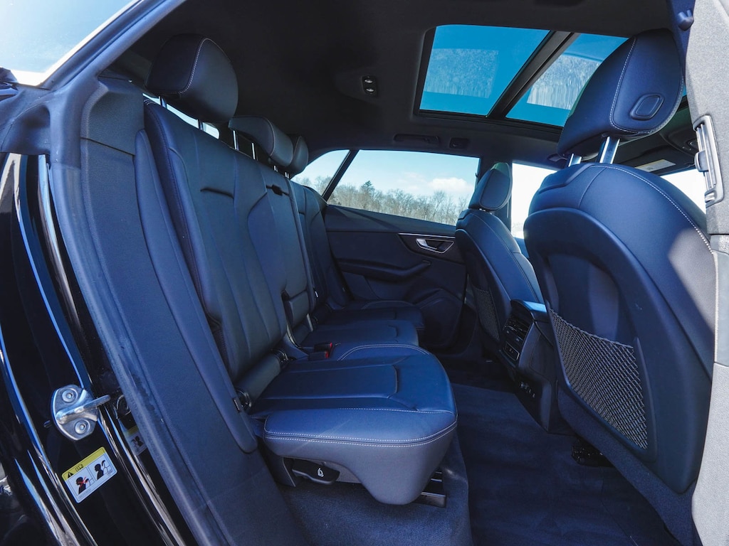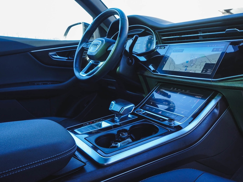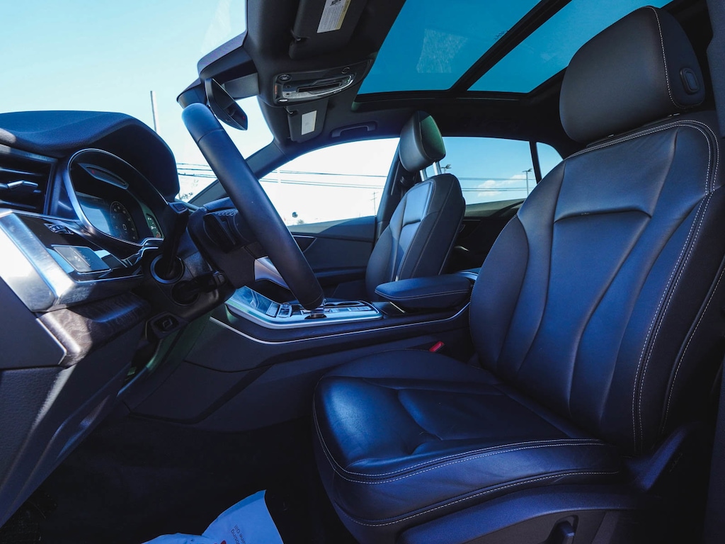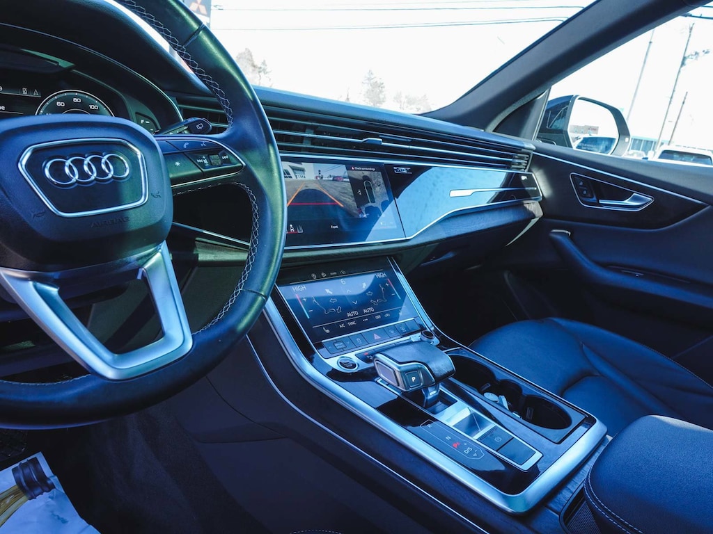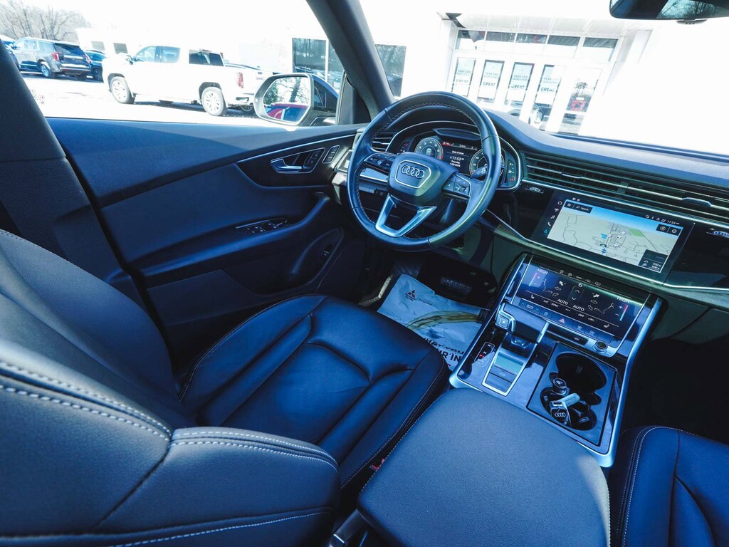 New Price! 2022 Audi Q8 55 Premium quattro CLEAN CARFAX, ONE OWNER, BLUE TOOTH, NEW PA STATE INSPECTION, FULLY RECONDITIONED, NAVIGATION, PREMIUM WHEELS, PANORAMIC SUNROOF, LEATHER, BACK UP CAMERA, Q8 55 Premium quattro, 4D Sport Utility, 3.0L V6 Turbocharged DOHC 24V LEV3-ULEV70 335hp, 8-Speed Automatic with Tiptronic, quattro, Mythos Black Metallic, Black w/Leather Seating Surfaces, 10 Speakers, 4-Wheel Disc Brakes, ABS brakes, Adaptive suspension, AM/FM radio: SiriusXM, Audi Guard Wheel Lock Kit, Audi Phone Box w/Wireless Charging, Audi smartphone interface (Apple CarPlay/Android Auto), Auto High-beam Headlights, Auto-dimming door mirrors, Auto-dimming Rear-View mirror, Automatic temperature control, Black Audi Rings & Badges, Black Cloth Headliner, Black Front & Rear Bumpers, Black Optic Package, Brake assist, Convenience Package, Cruise control, Dual front impact airbags, Dual front side impact airbags, Electronic Stability Control, Exterior Parking Camera Rear, Four wheel independent suspension, Front & Rear Doors Audi Beam-Rings, Front dual zone A/C, Front fog lights, Fully automatic headlights, Garage door transmitter: HomeLink, Genuine wood door panel insert, Heated door mirrors, Heated Front Bucket Seats, Heated Steering Wheel, Illuminated entry, Leather Seating Surfaces, Leather Shift Knob, Leather steering wheel, Low tire pressure warning, Memory seat, Navigation system: Audi MMI Navigation plus with Touch Response, Occupant sensing airbag, Overhead airbag, Panic alarm, Power door mirrors, Power driver seat, Power Liftgate, Power moonroof: Panoramic, Power passenger seat, Radio: MMI Nav Plus w/MMI Touch Response, Rain sensing wipers, Rear air conditioning, Rear side impact airbag, Rear window defroster, Rear window wiper, Remote keyless entry, Security system, Steering wheel memory, Telescoping steering wheel, Tilt steering wheel, Top View Camera System, Tow Hitch Receiver, Towing 7 Pin Connector, Towing Package, Traction control, Turn signal indicator mirrors, Wheels: 21" Bi-Color 5-W-Spoke-Design. Odometer is 2433 miles below market average!