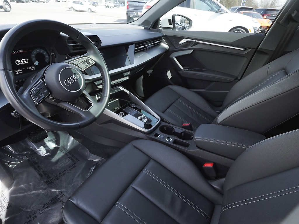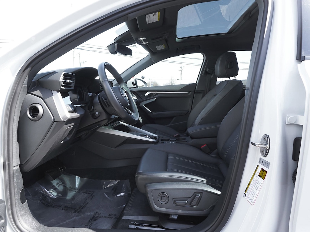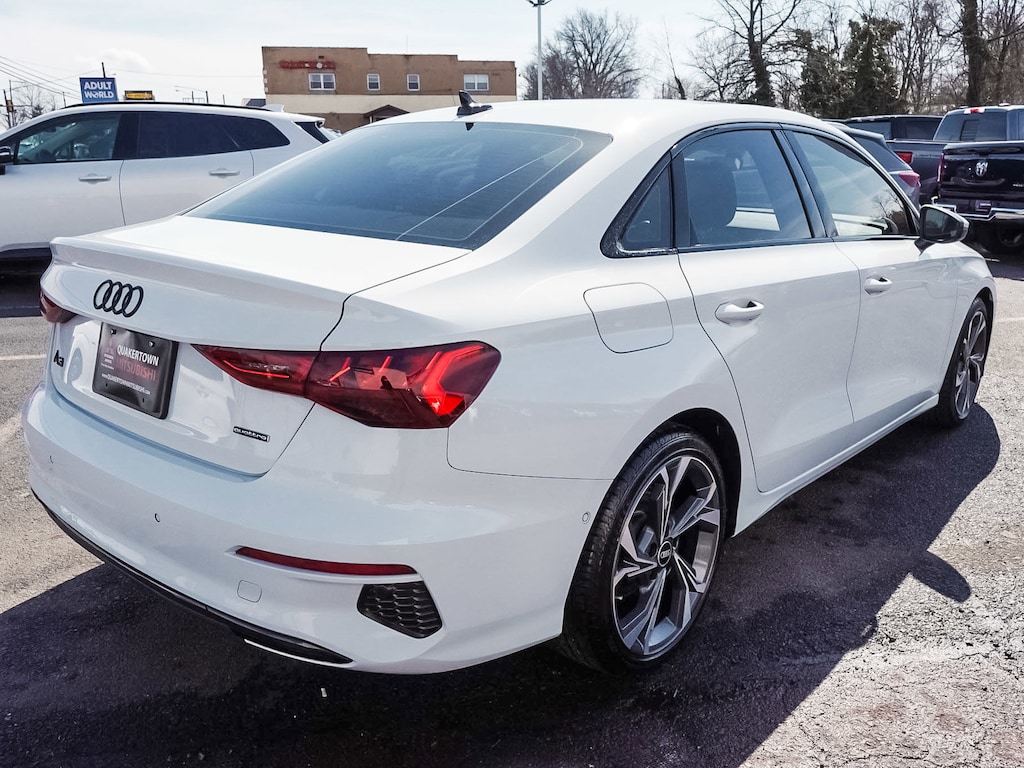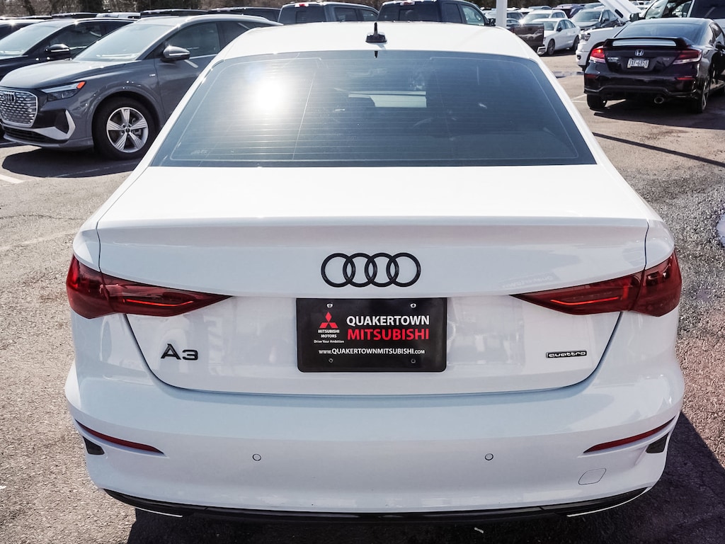 2023 Audi A3 40 Premium quattro Recent Arrival! ONE OWNER, BLUE TOOTH, NEW PA STATE INSPECTION, FULLY RECONDITIONED, NAVIGATION, ALLOY WHEELS, NON-SMOKER, SUNROOF/MOONROOF, LEATHER, BACK UP CAMERA, A3 40 Premium quattro, 4D Sedan, 2.0L 4-Cylinder TFSI, 7-Speed Automatic S tronic, quattro, Glacier White Metallic, Black/Rock Gray Stitching w/Leather Seating Surfaces, 4-Wheel Disc Brakes, 6 Speakers, ABS brakes, Alarm System w/Motion Sensor, AM/FM radio, Audi Advanced Key, Audi Side Assist, Audi Sound System, Auto High-beam Headlights, Auto-Dimming Interior Mirror w/Compass, Auto-Dimming Power Folding Exterior Mirrors, Automatic temperature control, Black Audi Rings & Badges, Black Exterior Trim, Black Optic Sport Package, Brake assist, Convenience Package, Cruise control, Dual front impact airbags, Dual front side impact airbags, Electronic Stability Control, Exterior Parking Camera Rear, Four wheel independent suspension, Front dual zone A/C, Fully automatic headlights, Heated door mirrors, Heated Front Bucket Seats, Illuminated entry, Knee airbag, Leather Seating Surfaces, Leather steering wheel, Low tire pressure warning, Memory for Driver's Seat, Navigation System, Occupant sensing airbag, Overhead airbag, Panic alarm, Park Assist, Power door mirrors, Power driver seat, Power moonroof, Power passenger seat, Radio: Audi Sound System, Rain sensing wipers, Rear side impact airbag, Rear window defroster, Remote keyless entry, SiriusXM w/360L, Sport Suspension (-15 mm), Telescoping steering wheel, Tilt steering wheel, Traction control, Turn signal indicator mirrors, Wheels: 18" 5-Y-Spoke Design, Wireless Phone Charging Pad. 27/35 City/Highway MPG Odometer is 507 miles below market average!