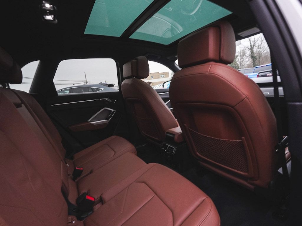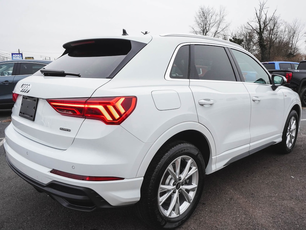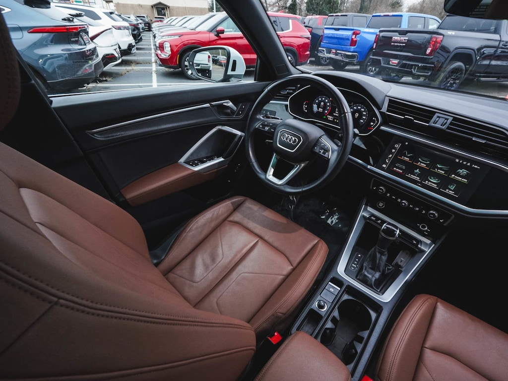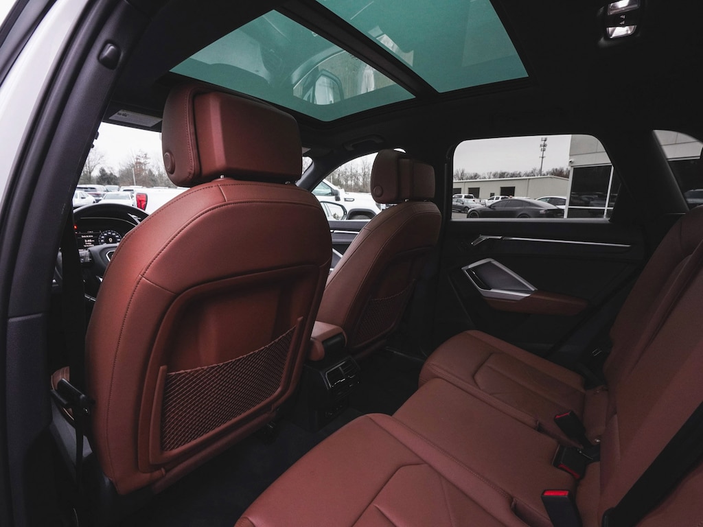 2023 Audi Q3 Premium S Line quattro ONE OWNER, BLUE TOOTH, NEW PA STATE INSPECTION, FULLY RECONDITIONED, NAVIGATION, ALLOY WHEELS, PANORAMIC SUNROOF, LEATHER, BACK UP CAMERA, Q3 Premium S Line quattro, 4D Sport Utility, 2.0L 4-Cylinder TFSI, 8-Speed Automatic with Tiptronic, quattro, Glacier White Metallic, Okapi Brown w/Leather Seating Surfaces, 10 Speakers, 4-Wheel Disc Brakes, ABS brakes, Alarm w/Motion Sensor, AM/FM radio, Audi Advanced Key, Audi Beam-Rings, Audi smartphone interface (Apple CarPlay/Android Auto), Auto High-beam Headlights, Auto-Dimming Power-Folding Exterior Mirrors, Automatic temperature control, Brake assist, Convenience Package, Cruise control, Driver Seat Memory, Dual front impact airbags, Dual front side impact airbags, Electronic Stability Control, Exterior Parking Camera Rear, Four wheel independent suspension, Frameless Auto-Dimming Interior Mirror w/Compass, Front dual zone A/C, Front fog lights, Fully automatic headlights, Heated door mirrors, Heated Front Bucket Seats, Illuminated entry, Knee airbag, Leather Seating Surfaces, Leather Shift Knob, Leather steering wheel, LED Interior Lighting Package, Low tire pressure warning, Navigation System, Occupant sensing airbag, Overhead airbag, Panic alarm, Power door mirrors, Power driver seat, Power Liftgate, Power moonroof: Panoramic, Power passenger seat, Radio: Audi Sound System, Rain sensing wipers, Rear window defroster, Rear window wiper, Remote keyless entry, SiriusXM w/360L, Telescoping steering wheel, Tilt steering wheel, Traction control, Turn signal indicator mirrors, Wheels: 18" 5-V-Spoke-S Design. 21/28 City/Highway MPG Odometer is 10618 miles below market average!