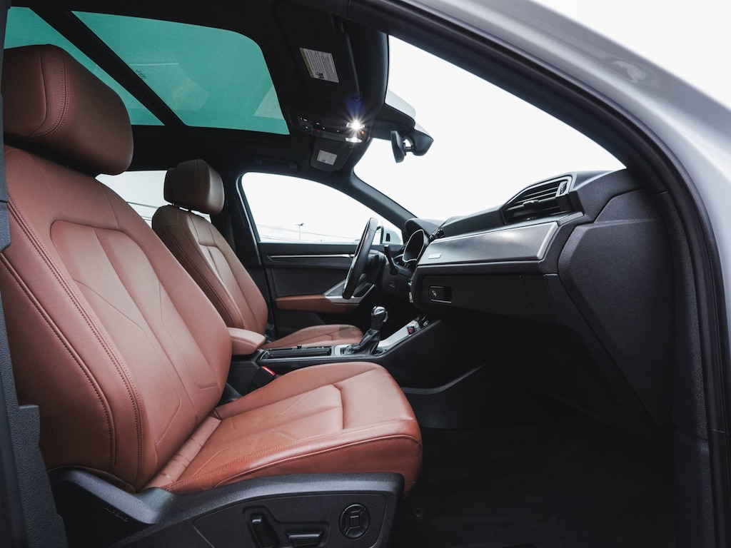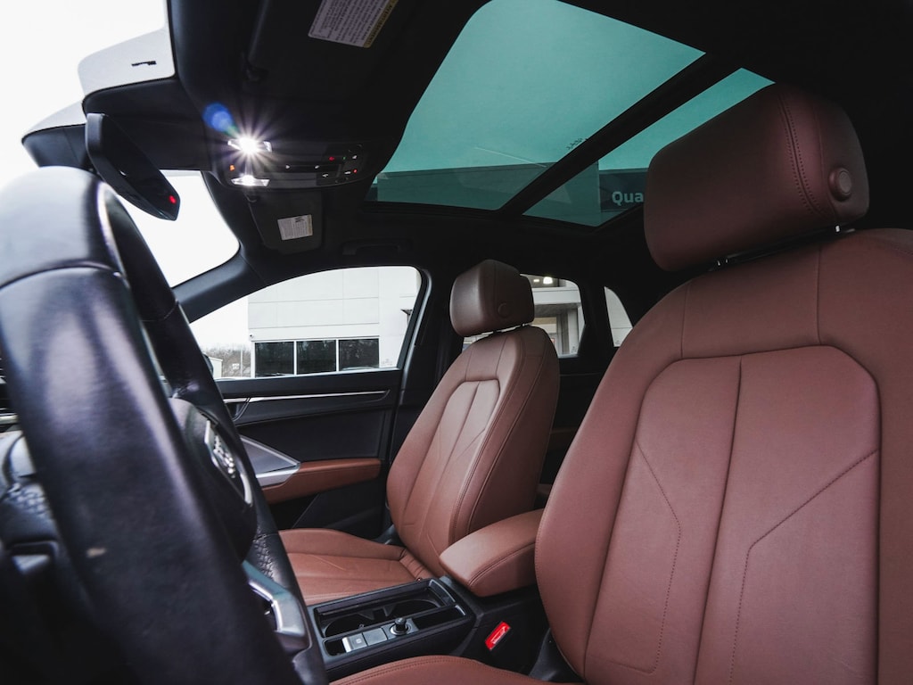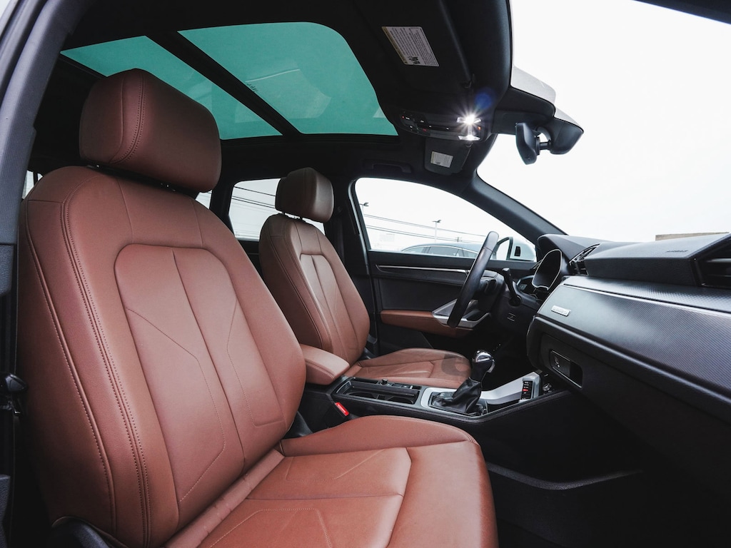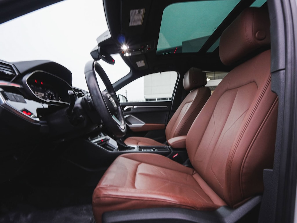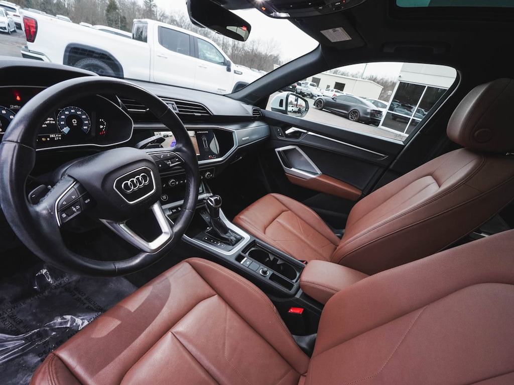 2023 Audi Q3 Premium S Line quattro ONE OWNER, BLUE TOOTH, NEW PA STATE INSPECTION, FULLY RECONDITIONED, NAVIGATION, ALLOY WHEELS, PANORAMIC SUNROOF, LEATHER, BACK UP CAMERA, Q3 Premium S Line quattro, 4D Sport Utility, 2.0L 4-Cylinder TFSI, 8-Speed Automatic with Tiptronic, quattro, Glacier White Metallic, Okapi Brown w/Leather Seating Surfaces, 10 Speakers, 4-Wheel Disc Brakes, ABS brakes, Alarm w/Motion Sensor, AM/FM radio, Audi Advanced Key, Audi Beam-Rings, Audi smartphone interface (Apple CarPlay/Android Auto), Auto High-beam Headlights, Auto-Dimming Power-Folding Exterior Mirrors, Automatic temperature control, Brake assist, Convenience Package, Cruise control, Driver Seat Memory, Dual front impact airbags, Dual front side impact airbags, Electronic Stability Control, Exterior Parking Camera Rear, Four wheel independent suspension, Frameless Auto-Dimming Interior Mirror w/Compass, Front dual zone A/C, Front fog lights, Fully automatic headlights, Heated door mirrors, Heated Front Bucket Seats, Illuminated entry, Knee airbag, Leather Seating Surfaces, Leather Shift Knob, Leather steering wheel, LED Interior Lighting Package, Low tire pressure warning, Navigation System, Occupant sensing airbag, Overhead airbag, Panic alarm, Power door mirrors, Power driver seat, Power Liftgate, Power moonroof: Panoramic, Power passenger seat, Radio: Audi Sound System, Rain sensing wipers, Rear window defroster, Rear window wiper, Remote keyless entry, SiriusXM w/360L, Telescoping steering wheel, Tilt steering wheel, Traction control, Turn signal indicator mirrors, Wheels: 18" 5-V-Spoke-S Design. 21/28 City/Highway MPG Odometer is 10618 miles below market average!