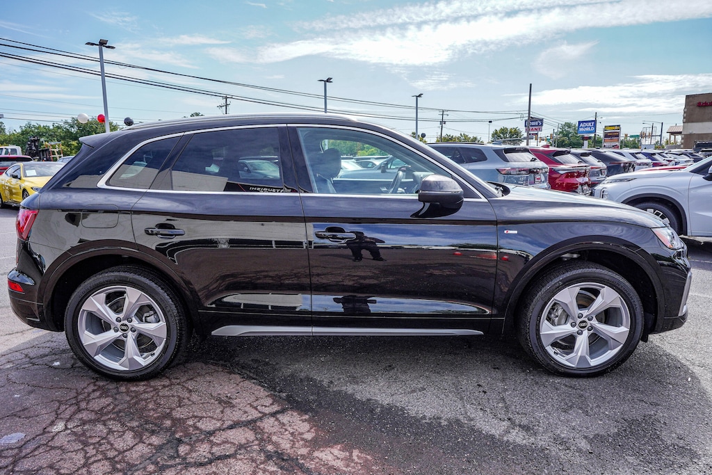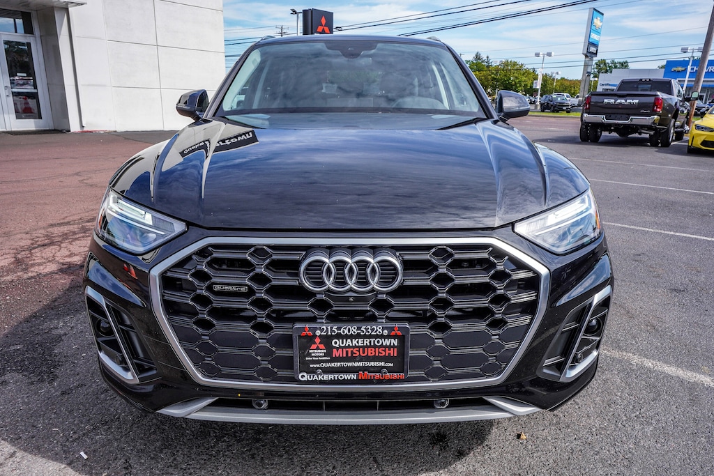 2023 Audi Q5 45 S line Premium Plus quattro CLEAN CARFAX, ONE OWNER, BLUE TOOTH, NEW PA STATE INSPECTION, FULLY RECONDITIONED, NAVIGATION, ALLOY WHEELS, PANORAMIC SUNROOF, LEATHER, BACK UP CAMERA, Q5 45 S line Premium Plus quattro, 4D Sport Utility, 2.0L Turbocharged, 7-Speed Automatic S tronic, quattro, Mythos Black Metallic, Black w/Leather Seating Surfaces, 10 Speakers, 4-Wheel Disc Brakes, ABS brakes, AM/FM radio, Audi Active Lane Assist, Audi Advanced Key, Audi Virtual Cockpit Plus, Auto-Dimming Power Folding Exterior Mirrors, Auto-dimming Rear-View mirror, Automatic temperature control, Bang & Olufsen Sound System w/3D Sound, Brake assist, Convenience Package, Cruise control, Driver Seat Memory, Dual front impact airbags, Dual front side impact airbags, Electronic Stability Control, Exterior Parking Camera Rear, Four wheel independent suspension, Front dual zone A/C, Front fog lights, Garage door transmitter: HomeLink, Genuine wood console insert, Genuine wood dashboard insert, Genuine wood door panel insert, Hands-On Detection Steering Wheel, Heated 8-Way Power Front Bucket Seats, Heated door mirrors, Heated Steering Wheel, Illuminated entry, Leather Seating Surfaces, Leather Shift Knob, Leatherette Covered Center Console & Door Armrests, Low tire pressure warning, Navigation System, Occupant sensing airbag, Overhead airbag, Panic alarm, Panoramic Sunroof, Power Adjustable Steering Column, Power door mirrors, Power Liftgate, Premium Plus Package, Rain sensing wipers, Rear air conditioning, Rear window defroster, Rear window wiper, Remote keyless entry, Security system, Telescoping steering wheel, Tilt steering wheel, Top View Camera System, Traction control, Traffic Jam Assist, Turn signal indicator mirrors, Wheels: 20" 5-Arm Design. 22/29 City/Highway MPG