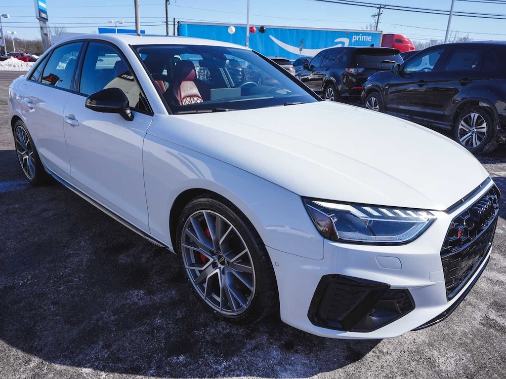 2023 Audi S4 3.0T Prestige quattro ONE OWNER, BLUE TOOTH, NEW PA STATE INSPECTION, FULLY RECONDITIONED, NAVIGATION, ALLOY WHEELS, SUNROOF/MOONROOF, LEATHER, BACK UP CAMERA, S4 3.0T Prestige quattro, 4D Sedan, 3.0L TFSI V6 DOHC, 8-Speed Automatic, quattro, Glacier White Metallic, Magma Red w/Fine Nappa Leather Seating Surfaces, 10 Speakers, 2 Rear USB Charging Ports, 4-Wheel Disc Brakes, ABS brakes, Adaptive Cruise Control, Alarm System w/Motion Sensors, AM/FM radio, Animation for Headlights & Taillights, Audi Active Lane Assist, Audi Advanced Key, Audi Connect PLUS, Audi Phone Box, Audi S Beam - Front Doors Only, Audi Side Assist w/Pre Sense Rear, Audi smartphone interface (Apple CarPlay/Android Auto), Audi Virtual Cockpit Plus, Auto High-beam Headlights, Auto-Dimming Exterior Mirrors w/Memory, Auto-dimming Rear-View mirror, Automatic temperature control, Bang & Olufsen Sound System w/3D Sound, Black Audi Rings & Badges, Black Exterior Mirror Housings & Exhaust Tips, Black Exterior Trim, Black Optic Plus Package, Black Side Sill Blades, Brake assist, Convenience Package, Driver's Seat Memory, Dual front impact airbags, Dual front side impact airbags, Dual Pane Acoustic Glass for Front Side Windows, Dynamic Steering, Electronic Stability Control, Exterior Parking Camera Rear, Fine Nappa Leather Seating Surfaces, Four wheel independent suspension, Front dual zone A/C, Front fog lights, Garage door transmitter: HomeLink, Hands-On Detection Steering Wheel, Head-Up Display, Heated door mirrors, Heated Front S Sport Seats, Heated Rear Seats, Heated Steering Wheel, Illuminated entry, Knee airbag, Leather Shift Knob, Leather steering wheel, Leatherette Covered Center Console & Door Armrests, LED Interior Lighting Plus Package, Low tire pressure warning, Matrix-Design LED Headlights w/Washers, MMI Navigation Plus, Navigation Package, Navigation System, Occupant sensing airbag, Overhead airbag, Panic alarm, Park Assist, Parking System Plus (Front/Rear Acoustic Sensors), Power driver seat, Power Folding Exterior Mirrors, Power moonroof, Power passenger seat, Prestige Package, Rain sensing wipers, Rear air conditioning, Rear Side Thoracic Airbags, Rear window defroster, Red Brake Calipers, Remote keyless entry, S Sport Package, SiriusXM w/360L, Sport Adaptive Damping Suspension, Sport Rear Differential, Sport steering wheel, Telescoping steering wheel, Tilt steering wheel, Top View Camera System, Traction control, Traffic Jam Assist, Traffic Sign Recognition, Turn signal indicator mirrors, Wheels: 19" 5-V-Spoke-Star Design. 21/30 City/Highway MPG