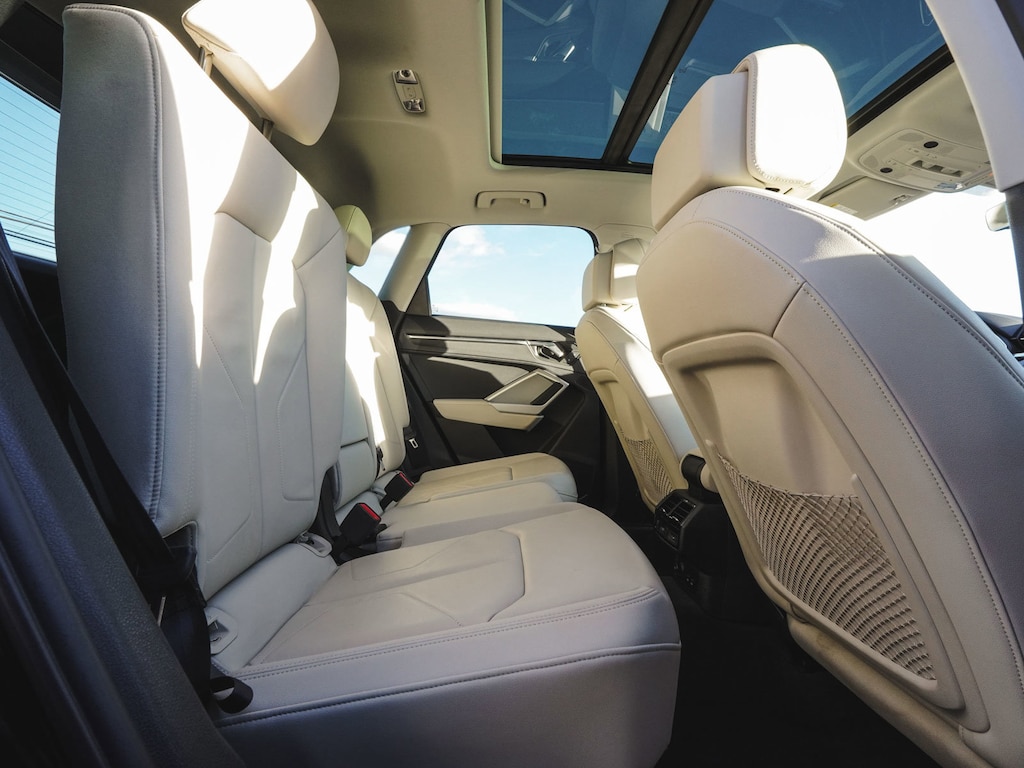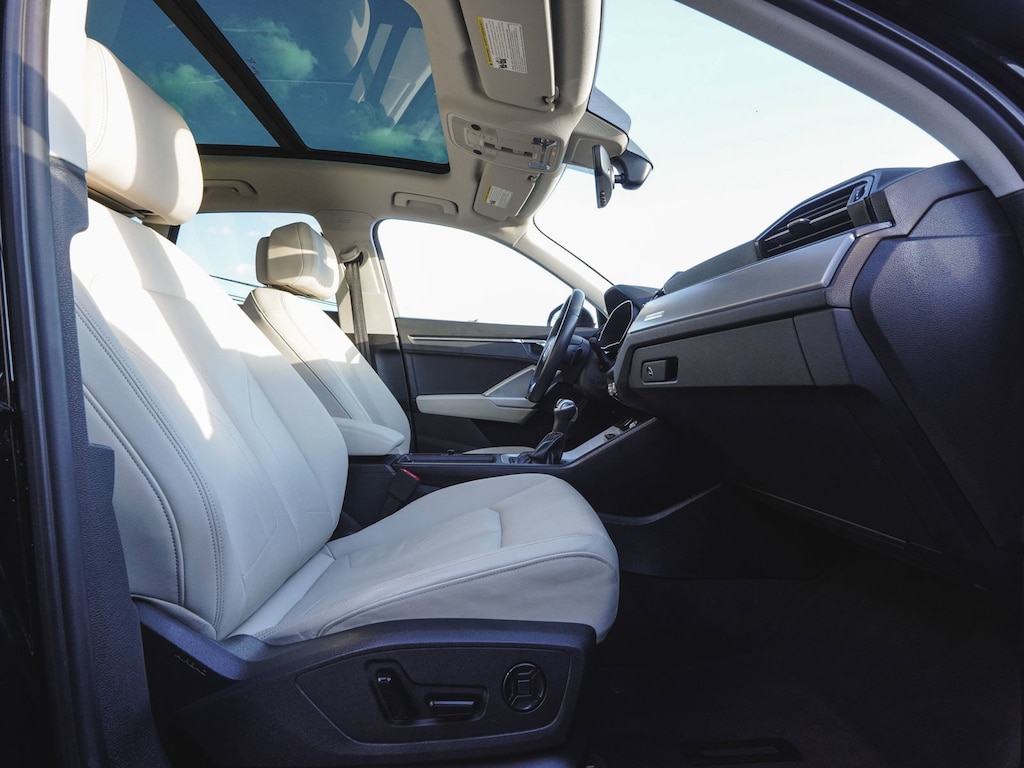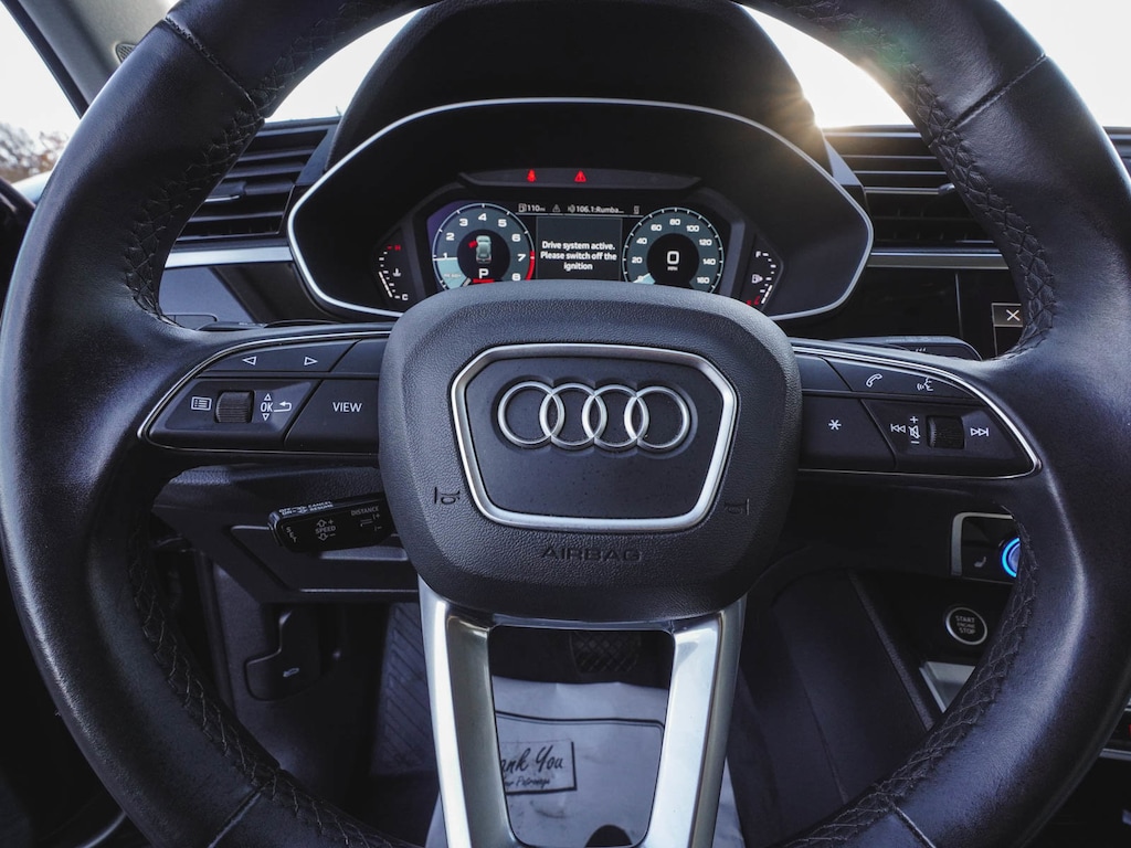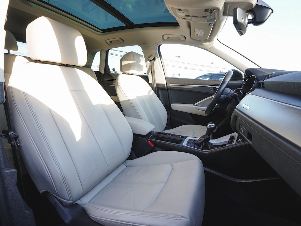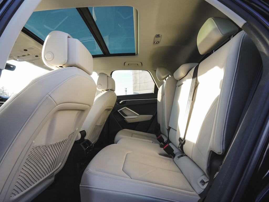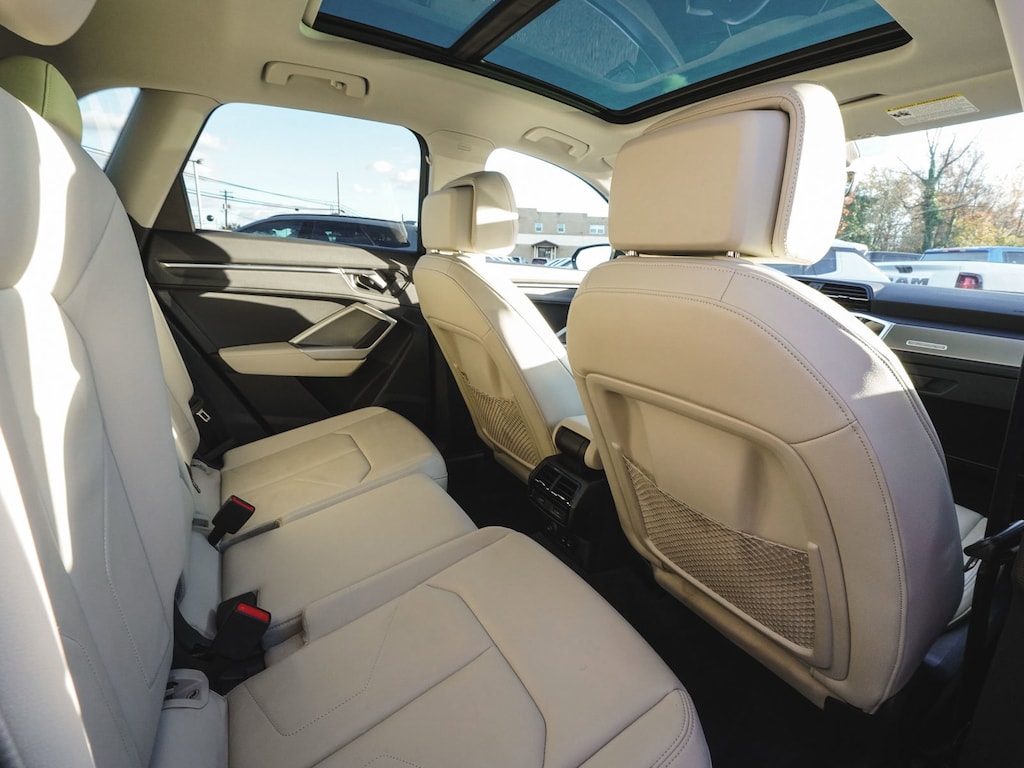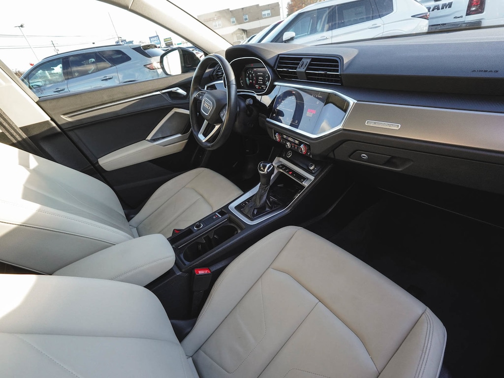 2024 Audi Q3 Premium S Line quattro ONE OWNER, BLUE TOOTH, NEW PA STATE INSPECTION, FULLY RECONDITIONED, NAVIGATION, ALLOY WHEELS, PANORAMIC SUNROOF, LEATHER, BACK UP CAMERA, Q3 Premium S Line quattro, 4D Sport Utility, 2.0L 4-Cylinder TFSI, 8-Speed Automatic with Tiptronic, quattro, Mythos Black Metallic, Pearl Beige w/Leather Seating Surfaces, 10 Speakers, 4-Wheel Disc Brakes, ABS brakes, Alarm w/Motion Sensor, AM/FM radio, Audi Advanced Key, Audi smartphone interface (Apple CarPlay/Android Auto), Auto High-beam Headlights, Auto-Dimming Power-Folding Exterior Mirrors, Auto-Dimming Rear-View Mirror, Automatic temperature control, Brake assist, Convenience Package, Cruise control, Driver Seat Memory, Dual front impact airbags, Dual front side impact airbags, Electronic Stability Control, Exterior Parking Camera Rear, Four wheel independent suspension, Front dual zone A/C, Front fog lights, Fully automatic headlights, Garage Door Opener (HomeLink), Heated door mirrors, Heated Front Bucket Seats, Illuminated entry, Knee airbag, Leather Seating Surfaces, Leather Shift Knob, Leather steering wheel, LED Interior Lighting Package, Low tire pressure warning, Navigation System, Occupant sensing airbag, Overhead airbag, Panic alarm, Power door mirrors, Power driver seat, Power Liftgate, Power moonroof: Panoramic, Power passenger seat, Radio: Audi Sound System, Rain sensing wipers, Rear window defroster, Rear window wiper, Remote keyless entry, SiriusXM, Telescoping steering wheel, Tilt steering wheel, Traction control, Turn signal indicator mirrors, Wheels: 18" 5-V-Spoke-S Design, Wireless Phone Charging Pad. 20/28 City/Highway MPG