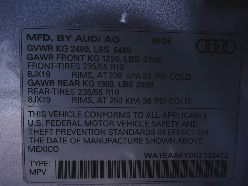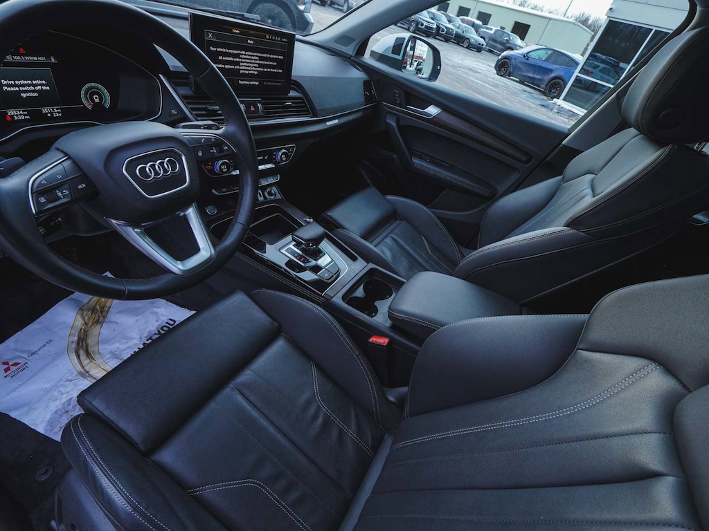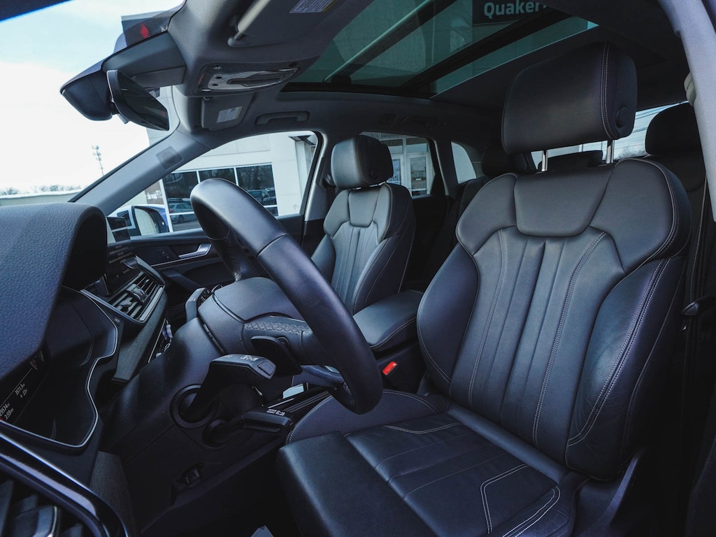 2024 Audi Q5 45 S line Premium Plus quattro CLEAN CARFAX, ONE OWNER, BLUE TOOTH, NEW PA STATE INSPECTION, FULLY RECONDITIONED, NAVIGATION, ALLOY WHEELS, PANORAMIC SUNROOF, LEATHER, BACK UP CAMERA, Q5 45 S line Premium Plus quattro, 4D Sport Utility, 2.0L Turbocharged, 7-Speed Automatic S tronic, quattro, Black w/Leather Seating Surfaces, 10 Speakers, 4-Wheel Disc Brakes, ABS brakes, AM/FM radio, Audi Advanced Key, Audi Virtual Cockpit Plus, Auto High-beam Headlights, Auto-Dimming Power Folding Exterior Mirrors, Auto-dimming Rear-View mirror, Automatic temperature control, Bang & Olufsen Sound System w/3D Sound, Brake assist, Convenience Package, Cruise control, Driver Seat Memory, Dual front impact airbags, Dual front side impact airbags, Electronic Stability Control, Exterior Parking Camera Rear, Four wheel independent suspension, Front dual zone A/C, Front fog lights, Garage door transmitter: HomeLink, Genuine wood console insert, Genuine wood dashboard insert, Genuine wood door panel insert, Heated 8-Way Power Front Bucket Seats, Heated door mirrors, Heated steering wheel, Illuminated entry, Leather Seating Surfaces, Leather Shift Knob, Leather steering wheel, Leatherette Covered Center Console & Door Armrests, Low tire pressure warning, Navigation System, Occupant sensing airbag, Overhead airbag, Panic alarm, Panoramic Sunroof, Power Adjustable Steering Column, Power door mirrors, Power Liftgate, Premium Plus Package, Rain sensing wipers, Rear air conditioning, Rear window defroster, Rear window wiper, Remote keyless entry, Security system, SiriusXM w/360L, Telescoping steering wheel, Tilt steering wheel, Top View Camera System, Traction control, Turn signal indicator mirrors, Wheels: 19" 5-Double-Arm Design Bi-Color Finish. 22/28 City/Highway MPG Odometer is 18017 miles below market average!