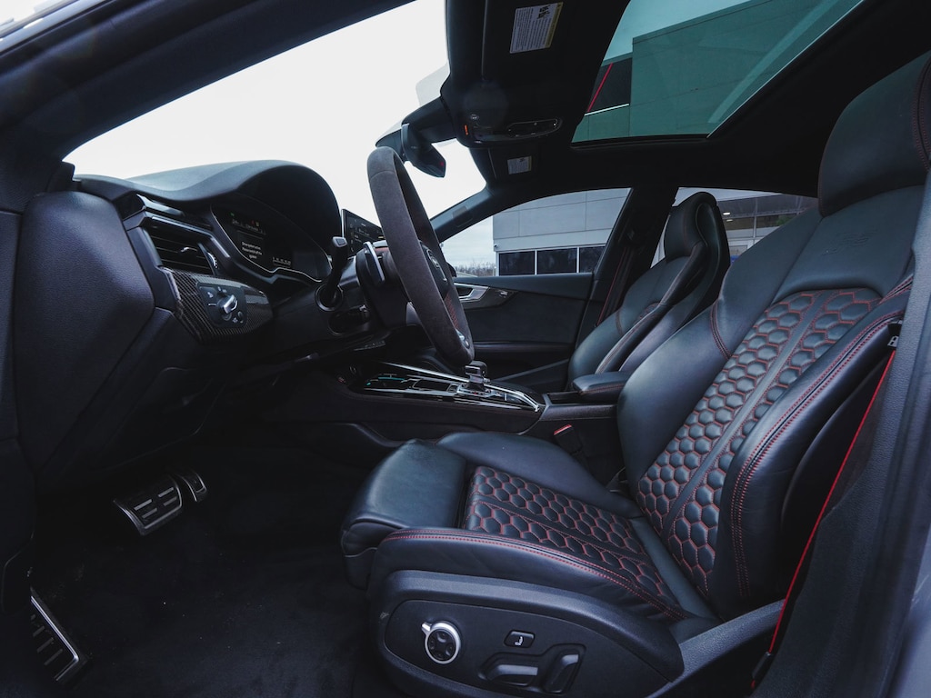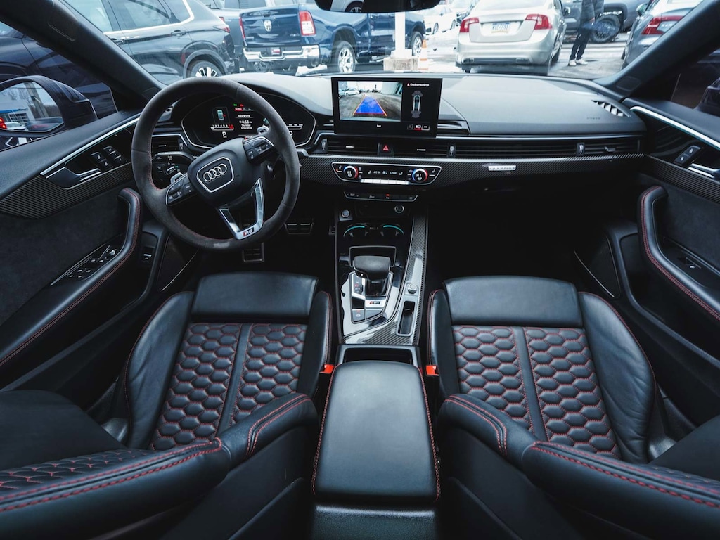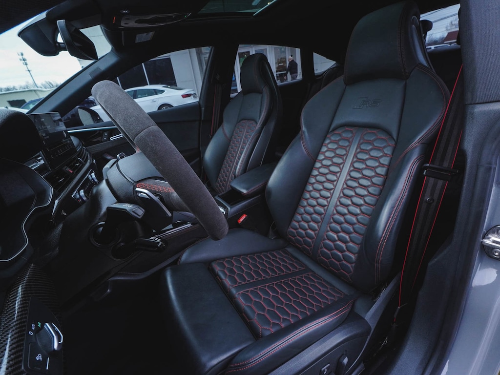 2024 Audi RS 5 2.9T quattro RS 5 2.9T quattro, 4D Hatchback, 2.9L V6 Turbocharged DOHC 24V LEV3-ULEV70 444hp, 8-Speed Automatic with Tiptronic, quattro, Nardo Gray, Black w/Crescendo Red Stitching w/Fine Nappa Leather Seating Surfaces, 19 Speakers, Alcantara Steering Wheel, Shifter & Center Console, AM/FM radio: SiriusXM, Automatic temperature control, Bang & Olufsen Sound System w/3D Sound, Black Optic Package, Exterior Mirror Housings in High-Gloss Black, Fine Nappa Leather Seating Surfaces, Front Bucket Seats, Front dual zone A/C, Front Spoiler Trim in High-Gloss Black, Heated front seats, Heated rear seats, High-Gloss Black Exterior Elements, Power passenger seat, Rain sensing wipers, Rear air conditioning, Rear Diffuser Trim in High-Gloss Black, Rear window defroster, RS Design Package, RS Logo Floor Mats w/Red Edging, Seat Belts w/Red Edging, Wheels: 19" 10-Spoke-Star Forged Design, Wheels: 20" 5-Arm-Flag Forged Design.