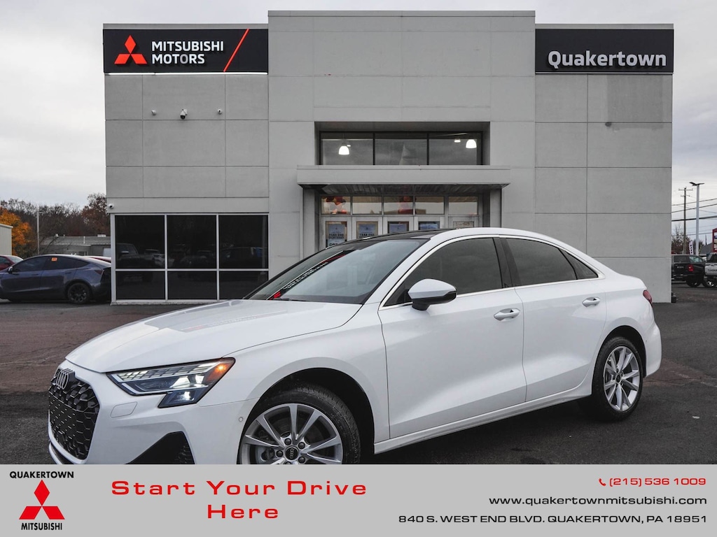 2025 Audi A3 40 Premium Plus quattro CLEAN CARFAX, ONE OWNER, BLUE TOOTH, NEW PA STATE INSPECTION, FULLY RECONDITIONED, NAVIGATION, ALLOY WHEELS, NON-SMOKER, SUNROOF/MOONROOF, LEATHER, BACK UP CAMERA, A3 40 Premium Plus quattro, 4D Sedan, 2.0L 4-Cylinder TFSI, 7-Speed Automatic S tronic, quattro, Arkona White, Parchment Beige/Steel Gray Stitching w/Leather Seating Surfaces, 4-Wheel Disc Brakes, 6 Speaker Sound System, ABS brakes, AM/FM radio, Audi Advanced Key, Auto High-beam Headlights, Auto-Dimming Power Folding Exterior Mirrors, Auto-Dimming Rear-View Mirror, Automatic temperature control, Brake assist, Convenience Package, Dual front impact airbags, Dual front side impact airbags, Electronic Stability Control, Exterior Parking Camera Rear, Four wheel independent suspension, Front dual zone A/C, Fully automatic headlights, Genuine wood dashboard insert, Heated door mirrors, Heated Front Bucket Seats, HomeLink Garage Door Opener, Illuminated entry, Knee airbag, Leather Seating Surfaces, Leather steering wheel, LED Interior Lighting Plus Package, Low tire pressure warning, Navigation System, Occupant sensing airbag, Overhead airbag, Panic alarm, Power door mirrors, Power driver seat, Power moonroof, Power passenger seat, Premium Plus Package, Rain sensing wipers, Rear side impact airbag, Rear window defroster, Remote keyless entry, Security system, SONOS Sound System, Telescoping steering wheel, Tilt steering wheel, Traction control, Turn signal indicator mirrors, Wheels: 17" 5-V-Spoke Design, Wireless Phone Charging Pad. 24/34 City/Highway MPG