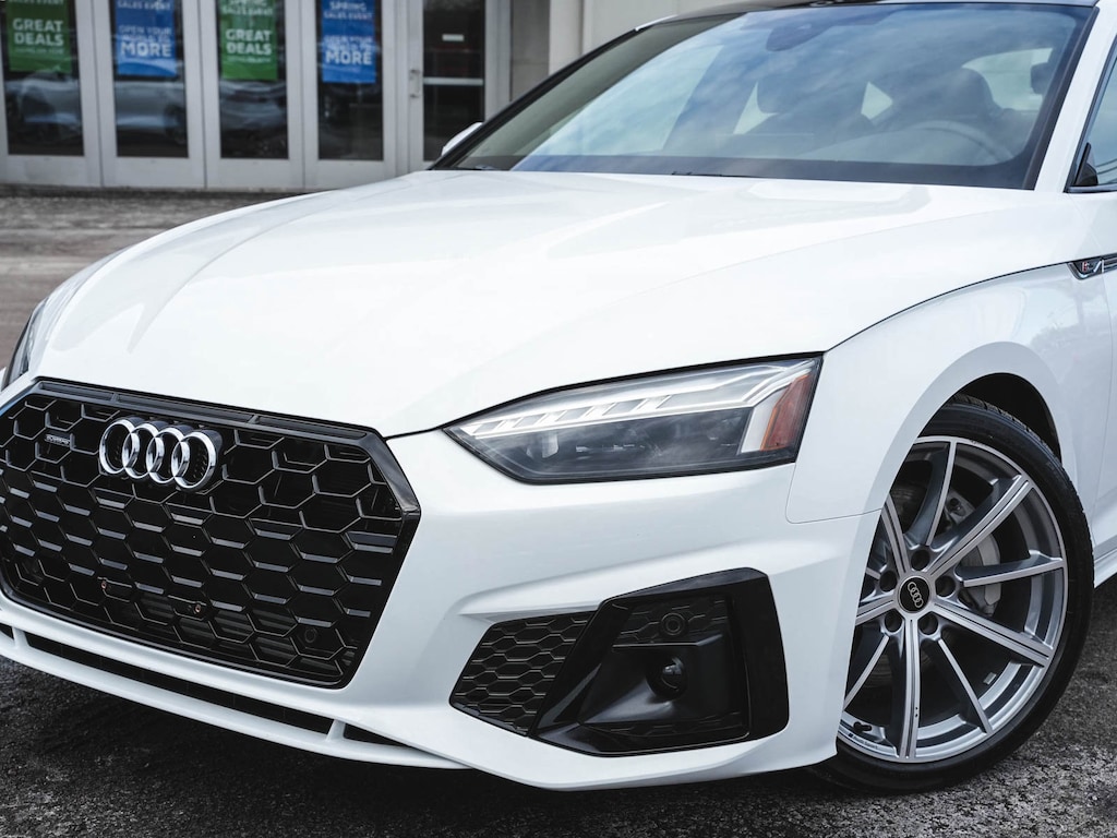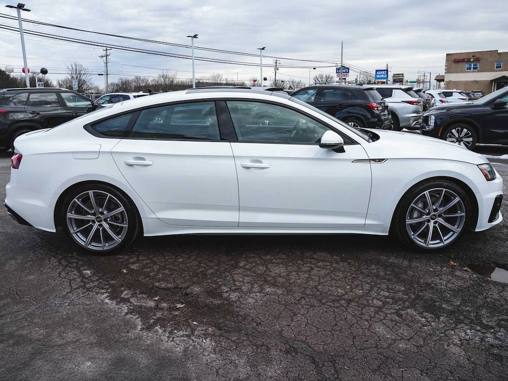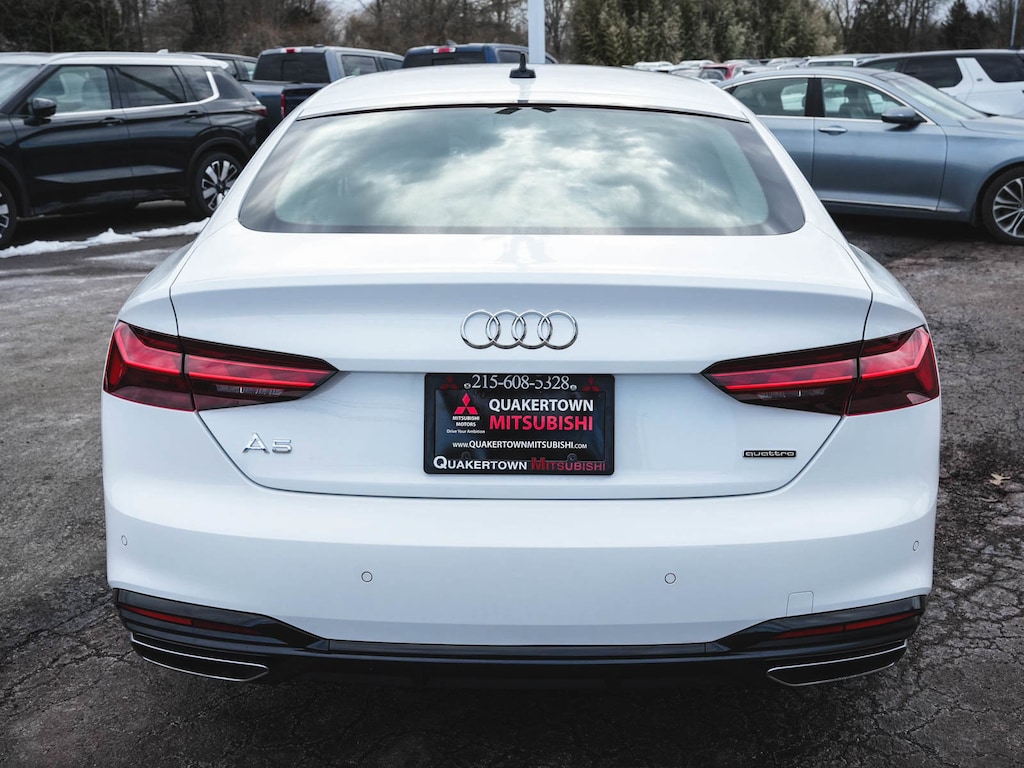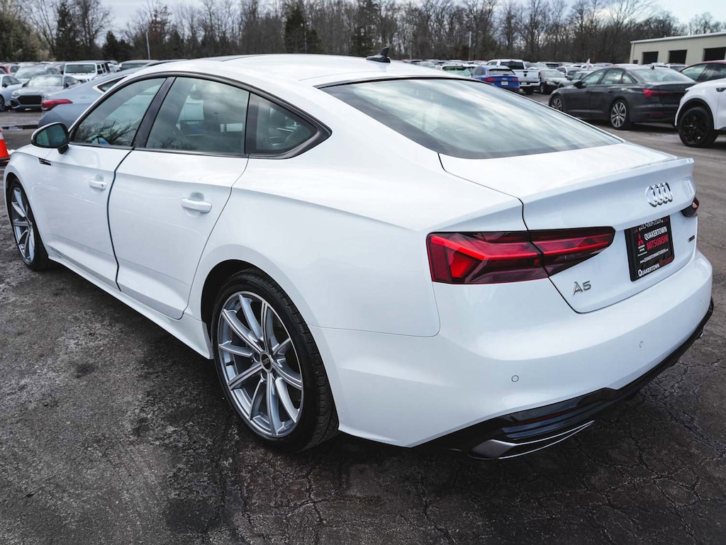 2025 Audi A5 Sportback 45 S line Premium quattro BLUE TOOTH, NEW PA STATE INSPECTION, FULLY RECONDITIONED, NAVIGATION, ALLOY WHEELS, SUNROOF/MOONROOF, LEATHER, BACK UP CAMERA, A5 Sportback 45 S line Premium quattro, 4D Hatchback, 2.0L 4-Cylinder TFSI, 7-Speed Automatic S tronic, quattro, White, Black w/Leather Seating Surfaces, 10 Speakers, 2 Rear USB Charge Ports, 4-Wheel Disc Brakes, ABS brakes, Alarm System with Motion Sensor, Aluminum Ellipse Silver Inlays, AM/FM radio, Anti-whiplash front head restraints, Audi Advanced Key, Audi Side Assist with Pre Sense Rear, Audi Virtual Cockpit Plus, Auto High-beam Headlights, Auto-Dimming Exterior Mirrors with Memory, Auto-dimming Rear-View mirror, Automatic temperature control, Brake assist, Convenience Plus Package, Cruise control, Dual front impact airbags, Dual front side impact airbags, Electronic Stability Control, Exterior Parking Camera Rear, Four wheel independent suspension, Front dual zone A/C, Front fog lights, Garage door transmitter: HomeLink, Genuine wood console insert, Genuine wood dashboard insert, Genuine wood door panel insert, Heated door mirrors, Heated Front Sport Seats, Heated steering wheel, Illuminated entry, Knee airbag, Leather Seating Surfaces, Leather Shift Knob, Leather steering wheel, Low tire pressure warning, Memory For Driver's Seat, Navigation System, Occupant sensing airbag, Overhead airbag, Panic alarm, Power adjustable front head restraints, Power door mirrors, Power driver seat, Power Liftgate, Power moonroof, Power passenger seat, Radio: Audi Sound System, Rain sensing wipers, Rear air conditioning, Rear window defroster, Remote keyless entry, SiriusXM with 360L, Telescoping steering wheel, Tilt steering wheel, Traction control, Turn signal indicator mirrors, Wheels: 19" 10-Spoke-Star-Design. 23/32 City/Highway MPG