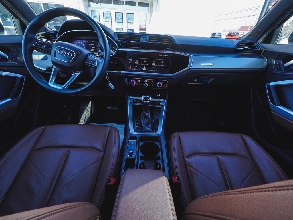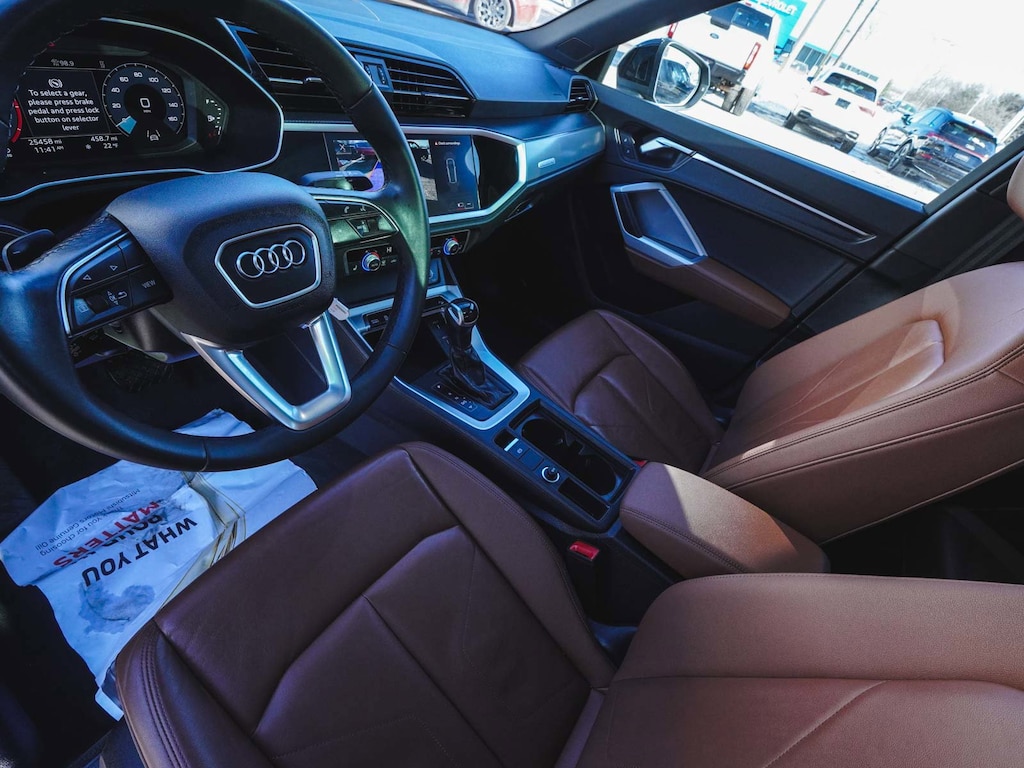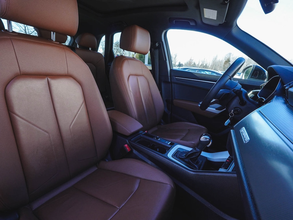 2025 Audi Q3 Premium S Line quattro CLEAN CARFAX, ONE OWNER, BLUE TOOTH, NEW PA STATE INSPECTION, FULLY RECONDITIONED, NAVIGATION, ALLOY WHEELS, NON-SMOKER, PANORAMIC SUNROOF, LEATHER, BACK UP CAMERA, Q3 Premium S Line quattro, 4D Sport Utility, 2.0L 4-Cylinder TFSI, 8-Speed Automatic with Tiptronic, quattro, Okapi Brown w/Leather Seating Surfaces, 10 Speakers, 4-Wheel Disc Brakes, ABS brakes, AM/FM radio, Audi smartphone interface (Apple CarPlay/Android Auto), Auto High-beam Headlights, Automatic temperature control, Brake assist, Cruise control, Dual front impact airbags, Dual front side impact airbags, Electronic Stability Control, Exterior Parking Camera Rear, Four wheel independent suspension, Front dual zone A/C, Front fog lights, Fully automatic headlights, Heated door mirrors, Heated Front Bucket Seats, Illuminated entry, Knee airbag, Leather Seating Surfaces, Leather Shift Knob, Leather steering wheel, Low tire pressure warning, Navigation System, Occupant sensing airbag, Overhead airbag, Panic alarm, Power door mirrors, Power driver seat, Power Liftgate, Power moonroof: Panoramic, Power passenger seat, Radio: Audi Sound System, Rain sensing wipers, Rear window defroster, Rear window wiper, Remote keyless entry, Telescoping steering wheel, Tilt steering wheel, Traction control, Turn signal indicator mirrors, Wheels: 18" 5-V-Spoke-S Design. 20/28 City/Highway MPG