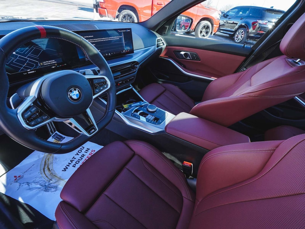 2025 BMW 3 Series M340i xDrive CLEAN CARFAX, ONE OWNER, BLUE TOOTH, NEW PA STATE INSPECTION, FULLY RECONDITIONED, NAVIGATION, ALLOY WHEELS, NON-SMOKER, SUNROOF/MOONROOF, LEATHER, BACK UP CAMERA, 3 Series M340i xDrive, 4D Sedan, 3.0L I6, 8-Speed Automatic Sport, AWD, Skyscraper Grey Metallic, Tacora Red w/Perforated Sensatec Upholstery, 10 Speakers, 4-Wheel Disc Brakes, ABS brakes, AM/FM radio: SiriusXM, Apple CarPlay & Android Auto Compatibility, Auto High-beam Headlights, Auto-dimming door mirrors, Auto-dimming Rear-View mirror, Automatic temperature control, BMW TeleServices, Brake assist, Connected Package Pro, ConnectedDrive Services, Cruise control, Dual front impact airbags, Dual front side impact airbags, Electronic Stability Control, Exterior Parking Camera Rear, Four wheel independent suspension, Front dual zone A/C, Fully automatic headlights, Garage door transmitter, Heated door mirrors, Heated Front Seats, Heated steering wheel, Hi-Fi Sound System, Illuminated entry, Knee airbag, Leather steering wheel, Low tire pressure warning, Lumbar Support, Memory seat, Navigation, Occupant sensing airbag, Overhead airbag, Panic alarm, Perforated Sensatec Upholstery, Personal eSIM 5G, Power door mirrors, Power Front Seats, Power moonroof, Radio: AM/FM Audio System, Rain sensing wipers, Rear air conditioning, Rear window defroster, Remote keyless entry, Security system, Sport Seats, Sport steering wheel, Telescoping steering wheel, Tilt steering wheel, Traction control, Turn signal indicator mirrors, Wheels: 19" x 8.0" M Dual-Spoke Bicolor, Widescreen Display, Wireless Device Charging. 26/33 City/Highway MPG