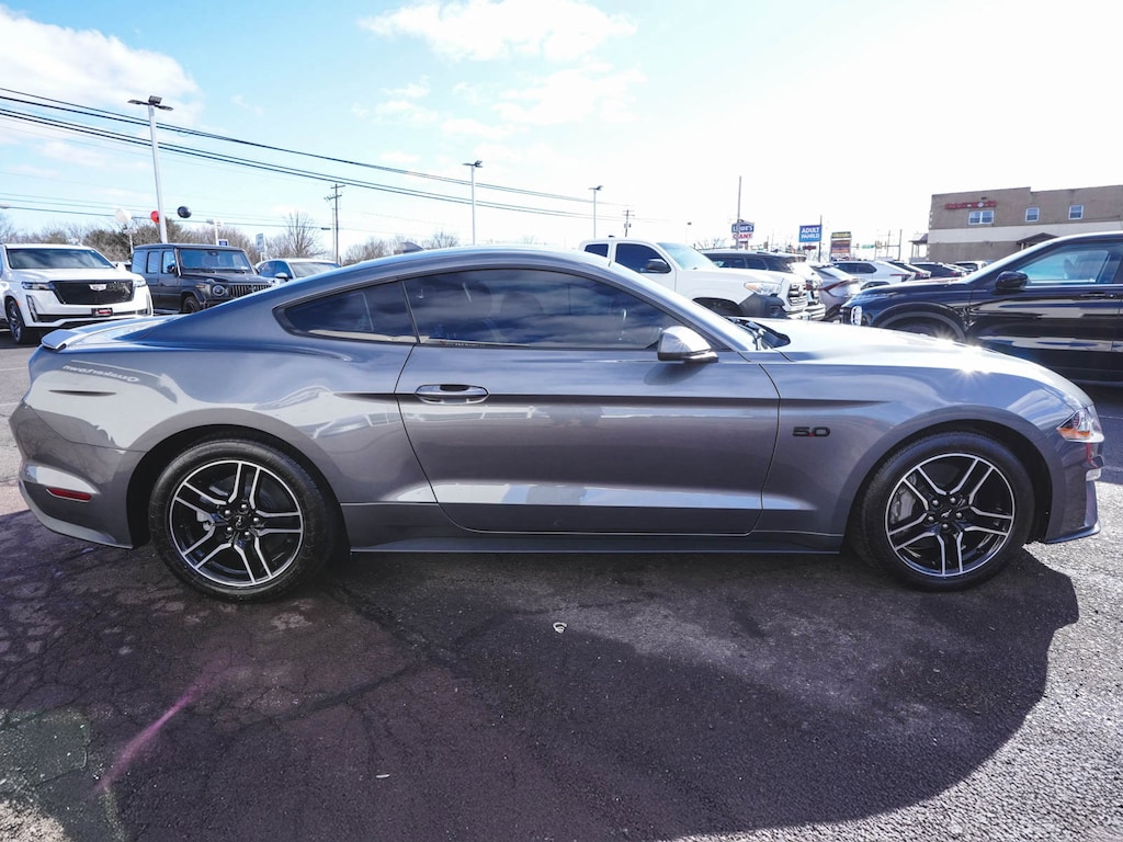 2021 Ford Mustang GT CLEAN CARFAX, BLUE TOOTH, NEW PA STATE INSPECTION, FULLY RECONDITIONED, NAVIGATION, ALLOY WHEELS, BACK UP CAMERA, RAISED BLADE DECKLID SPOILER, Mustang GT, 2D Coupe, 5.0L V8 Ti-VCT, 6-Speed Manual, RWD, Carbonized Gray Metallic, Ebony w/Cloth Bucket Seats, 4-Wheel Disc Brakes, 6 Speakers, ABS brakes, Air Conditioning, AM/FM Stereo, Auto High-beam Headlights, Auto-dimming Rear-View mirror, Brake assist, Cruise control, Dual front impact airbags, Dual front side impact airbags, Electronic Stability Control, Equipment Group 300A, Exterior Parking Camera Rear, Four wheel independent suspension, Front Bucket Seats, Front fog lights, Fully automatic headlights, Illuminated entry, Knee airbag, Low tire pressure warning, Navigation System, Occupant sensing airbag, Overhead airbag, Panic alarm, Power door mirrors, Power driver seat, Power passenger seat, Rain sensing wipers, Rear window defroster, Remote keyless entry, Security system, SYNC Communications & Entertainment System, Telescoping steering wheel, Tilt steering wheel, Traction control, Wheels: 18" x 8" Machined-Face Aluminum.