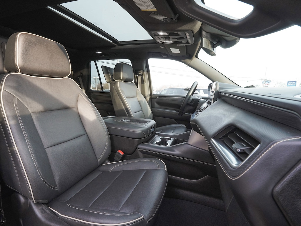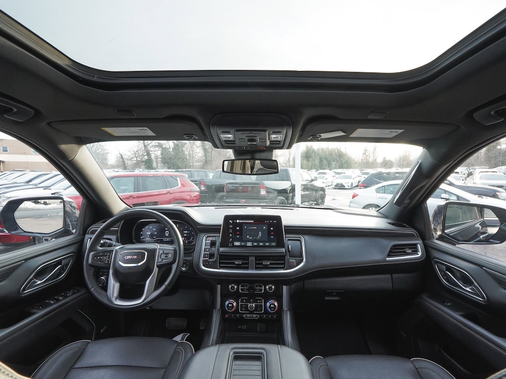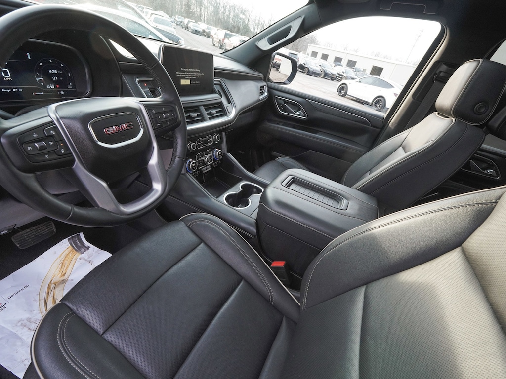 2023 GMC Yukon SLT ONE OWNER, BLUE TOOTH, NEW PA STATE INSPECTION, FULLY RECONDITIONED, NAVIGATION, ALLOY WHEELS, NON-SMOKER, PANORAMIC SUNROOF, LEATHER, BACK UP CAMERA, Yukon SLT, 4D Sport Utility, EcoTec3 5.3L V8, 10-Speed Automatic with Overdrive, 4WD, Midnight Blue Metallic, Jet Black w/Perforated Leather-Appointed Seating, 2 Presets For Outside Rearview Mirrors, 2 Presets For Power Driver Seat, 3rd Row 60/40 Power-Folding Split-Bench Seat, 4-Wheel Disc Brakes, ABS brakes, Adaptive Cruise Control, AM/FM radio: SiriusXM with 360L, Apple CarPlay/Android Auto, Auto High-beam Headlights, Auto-dimming Rear-View mirror, Automatic Emergency Braking, Automatic temperature control, Bose 9-Speaker Stereo Audio System Feature, Brake assist, Bright Chrome Bodyside Moldings, Bright Front & Rear Door Sill Plates, Chrome Door Handles w/Body-Color Strip, Dual front impact airbags, Dual front side impact airbags, Dual-Pane Panoramic Power Sunroof, Electronic Stability Control, Enhanced Automatic Emergency Braking, Floor Console, Following Distance Indicator, Forward Collision Alert, Four wheel independent suspension, Front & Rear Park Assist, Front Bucket Seats, Front dual zone A/C, Front fog lights, Front Pedestrian Braking, Fully automatic headlights, Garage door transmitter, Hands-Free Power Programmable Rear Liftgate, HD Surround Vision, Heated & Ventilated Driver & Front Passenger Seats, Heated 2nd Row Outboard Position Seats, Heated door mirrors, Heated Steering Wheel, Illuminated entry, Inside Rear-View Auto-Dimming Mirror, IntelliBeam Automatic High Beam On/Off, Lane Change Alert w/Side Blind Zone Alert, Lane Keep Assist w/Lane Departure Warning, License Plate Front Mounting Package, Low tire pressure warning, Memory seat, Navigation System, Occupant sensing airbag, Outside Heated Power-Adjustable Mirrors, Overhead airbag, Panic alarm, Perforated Leather-Appointed Seating, Power door mirrors, Power Liftgate, Power passenger seat, Power Release 2nd Row Bucket Seats, Power Tilt & Telescopic Steering Column, Preferred Equipment Group 4SA, Premium Smooth Ride Suspension, Rain sensing wipers, Rear air conditioning, Rear Cross Traffic Alert, Rear Pedestrian Alert, Rear Seat Media System, Rear window defroster, Rear window wiper, Remote keyless entry, Safety Alert Seat, Security system, SLT Luxury Package, SLT Premium Package, Traction control, Universal Home Remote, Wheels: 20" x 9" 6-Spoke Polished Aluminum, Wireless Charging. Odometer is 25283 miles below market average!