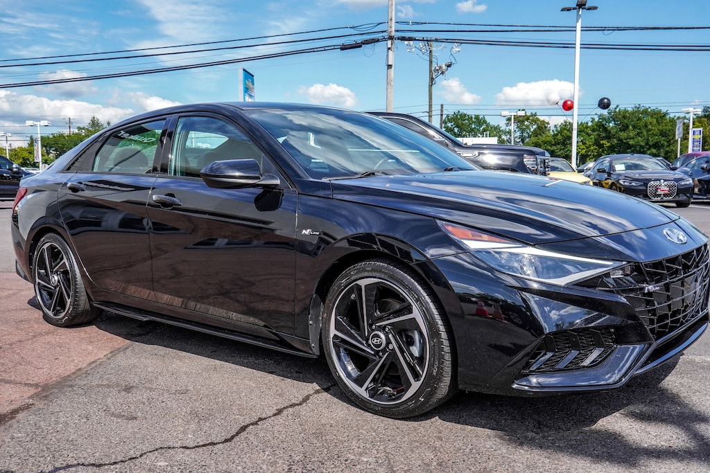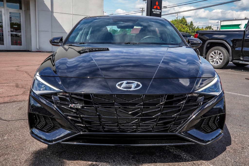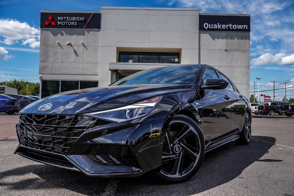 2023 Hyundai Elantra N Line CLEAN CARFAX, ONE OWNER, BLUE TOOTH, NEW PA STATE INSPECTION, FULLY RECONDITIONED, NAVIGATION, ALLOY WHEELS, SUNROOF/MOONROOF, BACK UP CAMERA, Elantra N Line, 4D Sedan, I4, 7-Speed Dual Clutch DCT, FWD, Phantom Black, Black w/Red Stitching w/Combination Cloth & Leather Seating Surfaces, 18" x 7.5J Alloy Wheels, 4-Wheel Disc Brakes, 6 Speakers, ABS brakes, Apple CarPlay & Android Auto, Auto High-beam Headlights, Automatic temperature control, Brake assist, Combination Cloth & Leather Seating Surfaces, Cruise control, Dual front impact airbags, Dual front side impact airbags, Electronic Stability Control, Exterior Parking Camera Rear, Four wheel independent suspension, Front dual zone A/C, Fully automatic headlights, Heated door mirrors, Heated Front Sport Bucket Seats, Illuminated entry, Leather Shift Knob, Leather steering wheel, Low tire pressure warning, Navigation System, Occupant sensing airbag, Option Group 01, Overhead airbag, Panic alarm, Power door mirrors, Power driver seat, Power moonroof, Radio: AM/FM/HD/SiriusXM Display Audio, Rear window defroster, Remote keyless entry, Security system, Sport steering wheel, Telescoping steering wheel, Tilt steering wheel, Traction control, Wheel Locks. 28/36 City/Highway MPG