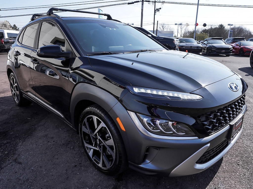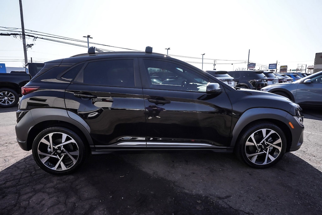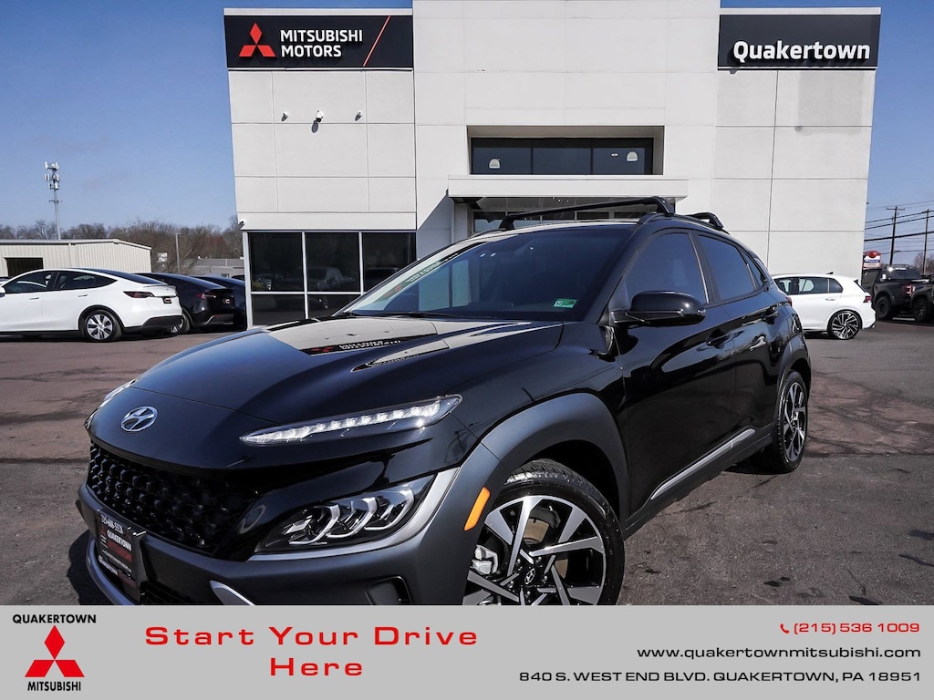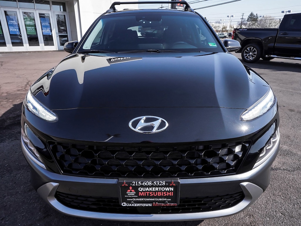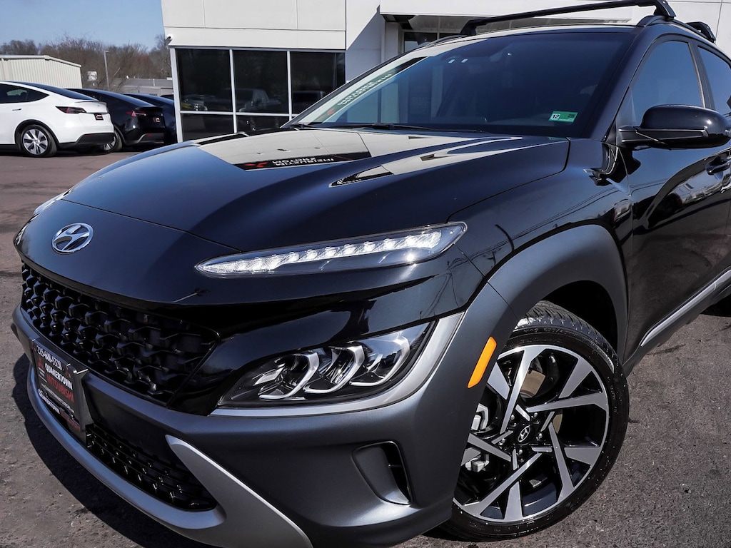 New Price! 2023 Hyundai Kona Limited Recent Arrival! BLUE TOOTH, NEW PA STATE INSPECTION, FULLY RECONDITIONED, NAVIGATION, ALLOY WHEELS, SUNROOF/MOONROOF, LEATHER, BACK UP CAMERA, Kona Limited, 4D Sport Utility, I4, Shiftronic, AWD, Ultra Black, Black w/Leather Seat Trim, 18" x 7.5J Alloy Wheels, 4-Wheel Disc Brakes, 8 Speakers, ABS brakes, AM/FM radio: SiriusXM, Apple CarPlay & Android Auto, Auto High-beam Headlights, Auto-dimming Rear-View mirror, Automatic temperature control, Brake assist, Cargo Package, Cruise control, Dual front impact airbags, Dual front side impact airbags, Electronic Stability Control, Exterior Parking Camera Rear, Four wheel independent suspension, Fully automatic headlights, Garage door transmitter: HomeLink, harman/kardon® Speakers, Heated door mirrors, Heated Front Bucket Seats, Illuminated entry, Leather Seat Trim, Leather Shift Knob, Leather steering wheel, Low tire pressure warning, Navigation System, Occupant sensing airbag, Option Group 01, Overhead airbag, Panic alarm, Power door mirrors, Power driver seat, Power moonroof, Radio: harman/kardon Premium Audio System, Rain sensing wipers, Rear window defroster, Rear window wiper, Remote keyless entry, Security system, Telescoping steering wheel, Tilt steering wheel, Traction control, Turn signal indicator mirrors, Wheel Locks. 27/32 City/Highway MPG