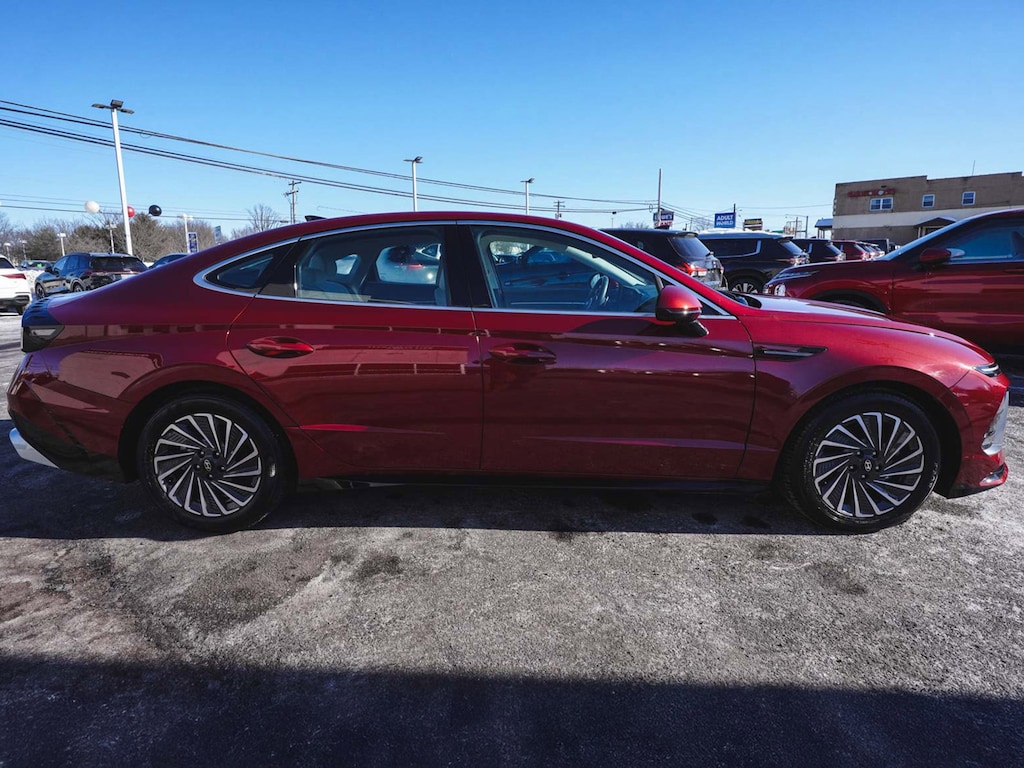 New Price! 2025 Hyundai Sonata Hybrid SEL ONE OWNER, BLUE TOOTH, NEW PA STATE INSPECTION, FULLY RECONDITIONED, NAVIGATION, ALLOY WHEELS, NON-SMOKER, BACK UP CAMERA, Sonata Hybrid SEL, 4D Sedan, I4, 6-Speed Automatic with Shiftronic, FWD, Ultimate red, Dark Gray w/Cloth Seating Surfaces, 17" x 7.0J Aluminum Alloy Wheels, 4-Wheel Disc Brakes, 6 Speakers, ABS brakes, Apple CarPlay & Android Auto, Auto High-beam Headlights, Automatic temperature control, Brake assist, Cruise control, Dual front impact airbags, Dual front side impact airbags, Electronic Stability Control, Four wheel independent suspension, Front dual zone A/C, Fully automatic headlights, Heated door mirrors, Heated Front Bucket Seats, Illuminated entry, Knee airbag, Lane Departure Warning System, Leather steering wheel, Low tire pressure warning, Occupant sensing airbag, Option Group 01, Overhead airbag, Panic alarm, Power door mirrors, Power driver seat, Power passenger seat, Radio: AM/FM/HD/SiriusXM, Rear side impact airbag, Rear window defroster, Remote keyless entry, Security system, Telescoping steering wheel, Tilt steering wheel, Traction control. 44/51 City/Highway MPG Odometer is 15122 miles below market average!
