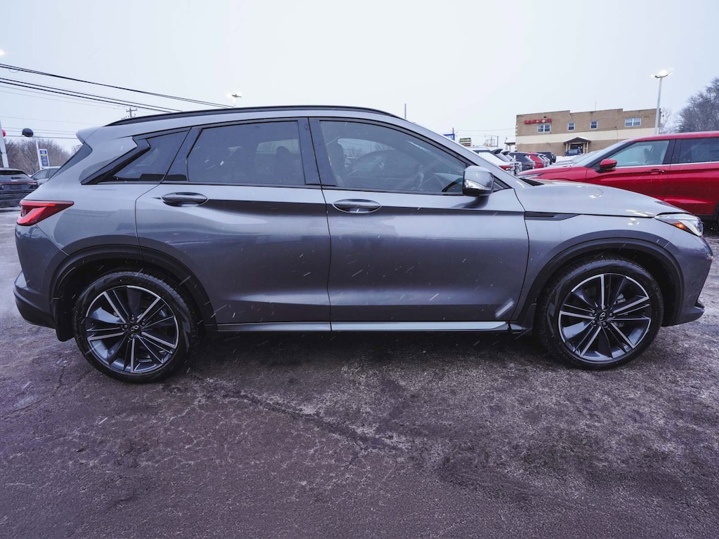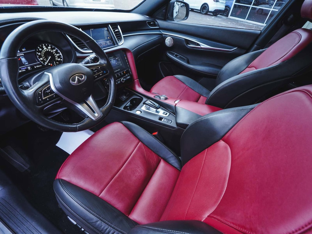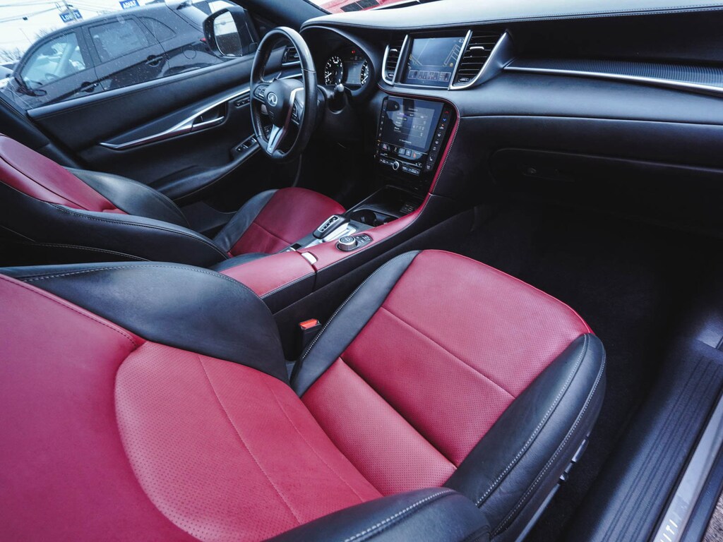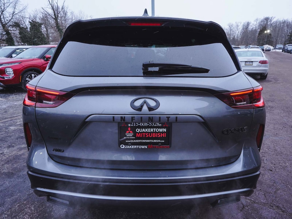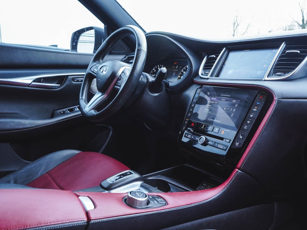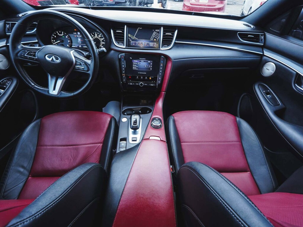 New Price! 2023 INFINITI QX50 SPORT CLEAN CARFAX, ONE OWNER, BLUE TOOTH, NEW PA STATE INSPECTION, FULLY RECONDITIONED, NAVIGATION, ALLOY WHEELS, PANORAMIC SUNROOF, LEATHER, BACK UP CAMERA, QX50 SPORT, 4D Sport Utility, I4, CVT, AWD, Graphite Shadow, Monaco Red w/Semi-Aniline Leather-Appointed Seat Trim, 12 Speakers, 4-Wheel Disc Brakes, ABS brakes, AM/FM radio: SiriusXM, Auto High-beam Headlights, Auto-dimming Rear-View mirror, Automatic temperature control, Bose Premium Audio System, Brake assist, Climate Controlled Front Bucket Seats, Cruise control, Dual front impact airbags, Dual front side impact airbags, Electronic Stability Control, Four wheel independent suspension, Front dual zone A/C, Front fog lights, Fully automatic headlights, Garage door transmitter: HomeLink, Heated door mirrors, Heated front seats, Heated steering wheel, Illuminated entry, Illuminated Kick Plates, Knee airbag, Leather Shift Knob, Leather steering wheel, Low tire pressure warning, Memory seat, Navigation system: INFINITI InTouch Navigation, Occupant sensing airbag, Overhead airbag, Panic alarm, Power door mirrors, Power driver seat, Power Liftgate, Power passenger seat, Rear side impact airbag, Rear window defroster, Rear window wiper, Remote keyless entry, Security system, Semi-Aniline Leather-Appointed Seat Trim, Telescoping steering wheel, Tilt steering wheel, Traction control, Turn signal indicator mirrors, Ventilated front seats, Wheels: 20" Black Painted Machine Finished. 22/28 City/Highway MPG