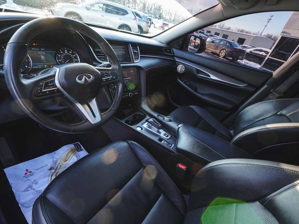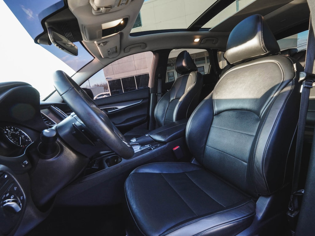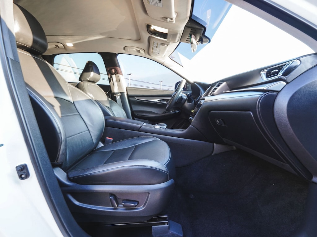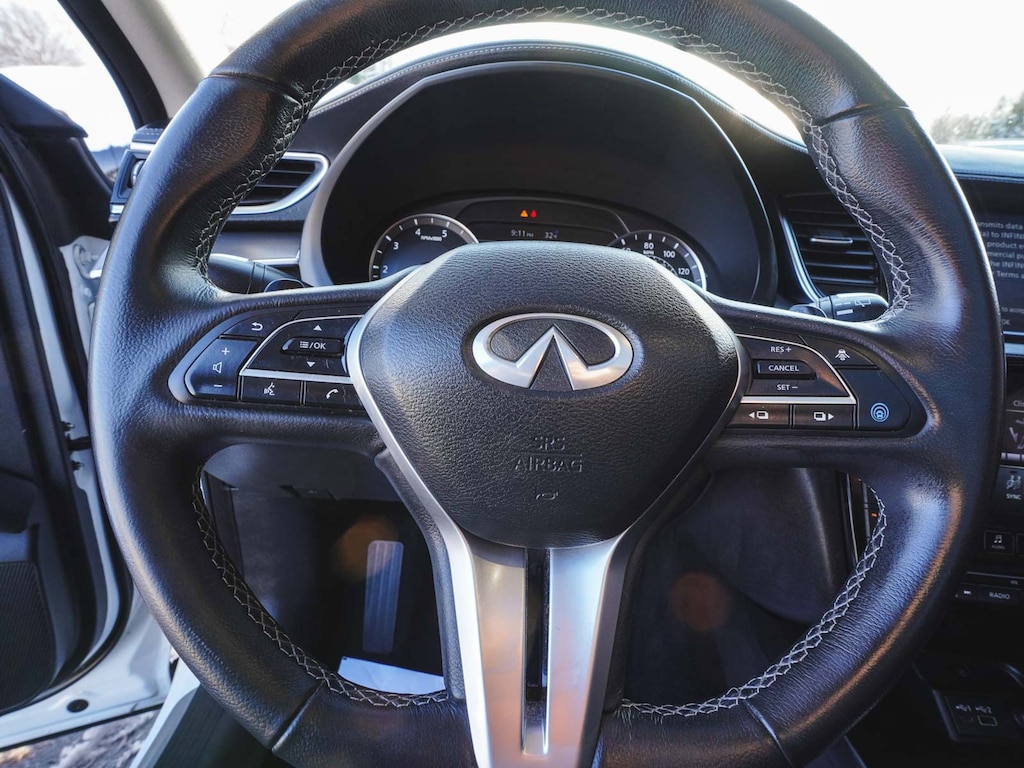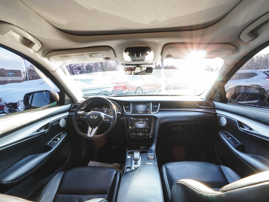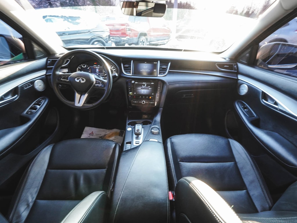 2023 INFINITI QX50 LUXE ONE OWNER, BLUE TOOTH, NEW PA STATE INSPECTION, FULLY RECONDITIONED, NAVIGATION, ALLOY WHEELS, PANORAMIC SUNROOF, LEATHER, BACK UP CAMERA, QX50 LUXE, 4D Sport Utility, I4, CVT, AWD, Radiant White, Graphite w/Leather-Appointed Seat Trim, 4-Wheel Disc Brakes, ABS brakes, Aluminum Interior Accents, AM/FM radio: SiriusXM, Auto High-beam Headlights, Auto-dimming Rear-View mirror, Automatic temperature control, Bose 12-Speaker Premium Audio, Brake assist, Cruise control, Dual front impact airbags, Dual front side impact airbags, Electronic Stability Control, Exterior Parking Camera Rear, Four wheel independent suspension, Front dual zone A/C, Fully automatic headlights, Garage door transmitter: HomeLink, Heated door mirrors, Heated Front Bucket Seats, Illuminated entry, Illuminated Kick Plates, Knee airbag, Leather Shift Knob, Leather steering wheel, Leather-Appointed Seat Trim, Low tire pressure warning, Memory seat, Occupant sensing airbag, Overhead airbag, Panic alarm, Power door mirrors, Power driver seat, Power Liftgate, Power passenger seat, Radio: HD Audio System, Rear Parking Sensors, Rear side impact airbag, Rear window defroster, Rear window wiper, Remote keyless entry, Security system, Telescoping steering wheel, Tilt steering wheel, Traction control, Turn signal indicator mirrors, Wheels: 19" Silver Painted Aluminum Alloy. 22/28 City/Highway MPG