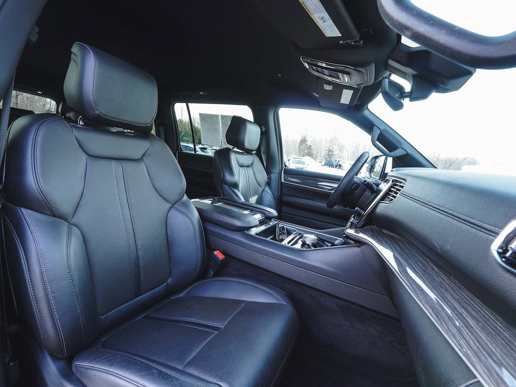 New Price! 2022 Jeep Wagoneer Series II ONE OWNER, BLUE TOOTH, NEW PA STATE INSPECTION, FULLY RECONDITIONED, NAVIGATION, ALLOY WHEELS, LEATHER, BACK UP CAMERA, Wagoneer Series II, 4D Sport Utility, 5.7L V8, 8-Speed Automatic, 4WD, Bright White Clearcoat, Global Black w/Leather Trimmed Bucket Seats, 10 Speakers, 3rd row seats: bench, 4-Wheel Disc Brakes, ABS brakes, Adjustable pedals, AM/FM radio: SiriusXM with 360L, Anti-whiplash front head restraints, Auto-dimming door mirrors, Auto-dimming Rear-View mirror, Auto-leveling suspension, Automatic temperature control, Brake assist, Cruise control, Dual front impact airbags, Dual front side impact airbags, Electronic Stability Control, Exterior Parking Camera Rear, Four wheel independent suspension, Front dual zone A/C, Front fog lights, Fully automatic headlights, Garage door transmitter, Genuine wood console insert, Genuine wood dashboard insert, Genuine wood door panel insert, Heated door mirrors, Heated front seats, Heated steering wheel, Illuminated entry, Knee airbag, Leather Trimmed Bucket Seats, Low tire pressure warning, Memory seat, MOPAR Interior Protection Package, Navigation System, Normal Duty Suspension, Occupant sensing airbag, Overhead airbag, Panic alarm, Pedal memory, Power adjustable front head restraints, Power door mirrors, Power driver seat, Power Liftgate, Power passenger seat, Quick Order Package 22J, Radio: Uconnect 5 Nav w/10.1" Display, Rain sensing wipers, Rear dual zone A/C, Rear window defroster, Rear window wiper, Reclining 3rd row seat, Remote keyless entry, Security system, Steering wheel memory, Telescoping steering wheel, Tilt steering wheel, Traction control, Turn signal indicator mirrors, Ventilated front seats, Wheels: 20" x 9.0" Aluminum Base Finish.