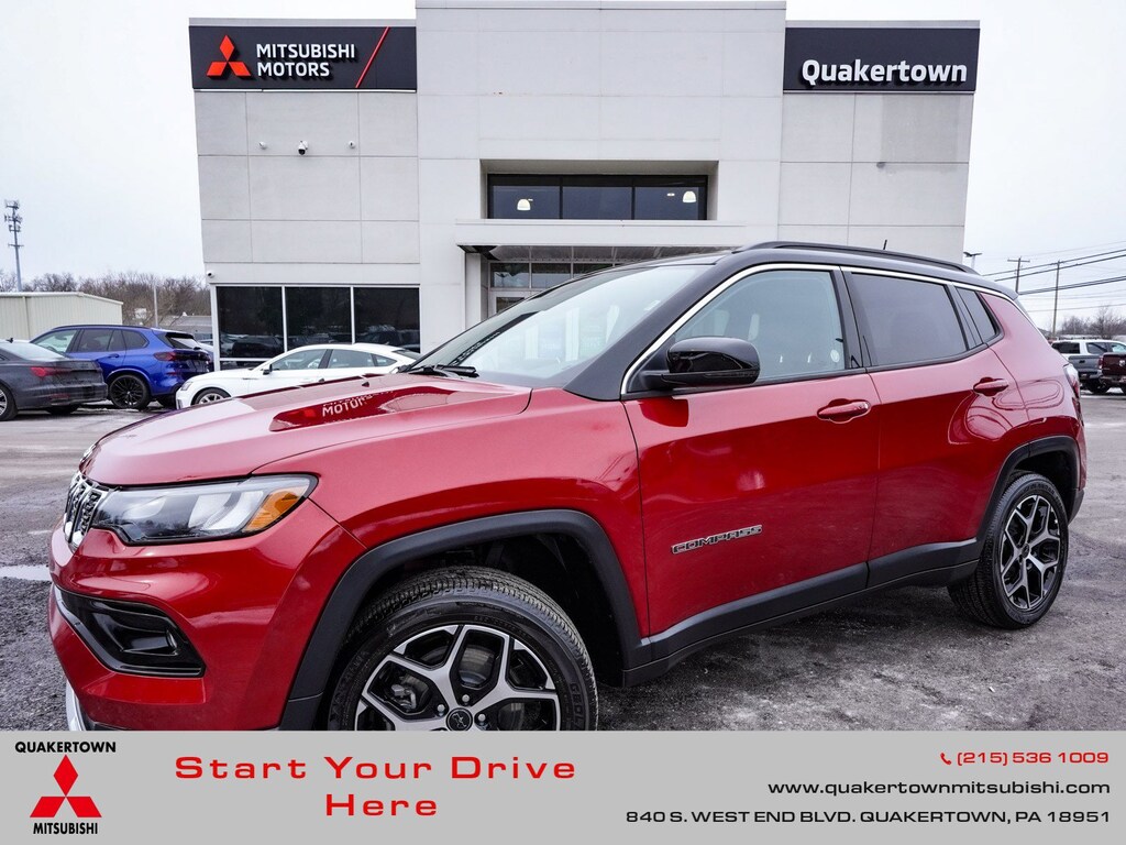 New Price! 2025 Jeep Compass Limited CLEAN CARFAX, ONE OWNER, BLUE TOOTH, NEW PA STATE INSPECTION, FULLY RECONDITIONED, NAVIGATION, ALLOY WHEELS, LEATHER, BACK UP CAMERA, Compass Limited, 4D Sport Utility, 2.0L I4 DOHC, 8-Speed Automatic, 4WD, Red Hot Pearlcoat, Black w/Leatherette Seats, 10.1" Touchscreen Display, 4-Wheel Disc Brakes, 6 Speakers, ABS brakes, AM/FM radio: SiriusXM, Apple CarPlay/Android Auto, Auto High-beam Headlights, Auto-dimming Rear-View mirror, Automatic temperature control, Brake assist, Cruise control, Dual front impact airbags, Dual front side impact airbags, Electronic Stability Control, Four wheel independent suspension, Front Bucket Seats, Front dual zone A/C, Front fog lights, Fully automatic headlights, GPS Navigation, Heated door mirrors, Heated front seats, Illuminated entry, Knee airbag, Leather Shift Knob, Leather steering wheel, Leatherette Seats, Low tire pressure warning, Occupant sensing airbag, Overhead airbag, Panic alarm, ParkView Rear Back-Up Camera, Power door mirrors, Power driver seat, Quick Order Package 29G, Radio: Uconnect 5 w/10.1" Display, Rain sensing wipers, Rear window defroster, Rear window wiper, Remote keyless entry, Security system, Telescoping steering wheel, Tilt steering wheel, Traction control, Turn signal indicator mirrors, Wheels: 18" x 7" Painted Diamond Cut Alum (DISC). 24/32 City/Highway MPG
