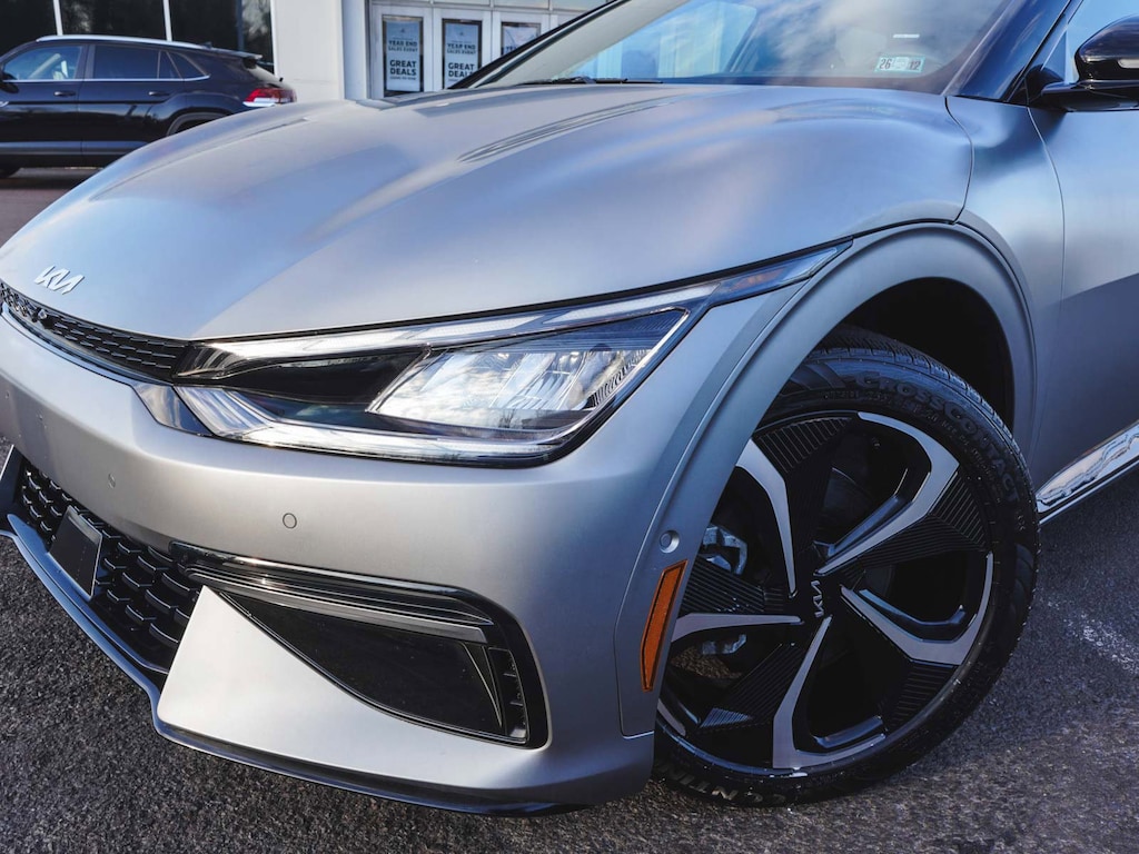 2023 Kia EV6 GT-Line CLEAN CARFAX, ONE OWNER, BLUE TOOTH, NEW PA STATE INSPECTION, FULLY RECONDITIONED, NAVIGATION, ALLOY WHEELS, SUNROOF/MOONROOF, LEATHER, BACK UP CAMERA, EV6 GT-Line, 4D Sport Utility, Electric Motor, 1-Speed Automatic, AWD, Steel Matte Gray, White w/Black Accent w/Vegan Leatherette Seat Trim w/Suede Accents, 14 Speakers, 4-Wheel Disc Brakes, ABS brakes, AM/FM radio: SiriusXM, Apple CarPlay & Android Auto, Auto High-beam Headlights, Auto-dimming Rear-View mirror, Automatic temperature control, Brake assist, Cruise control, Dual front impact airbags, Dual front side impact airbags, Electronic Stability Control, Four wheel independent suspension, Front dual zone A/C, Fully automatic headlights, Garage door transmitter: HomeLink, GT-Line White Seat Package, Heads-Up Display, Heated & Ventilated Front Bucket Seats, Heated door mirrors, Heated rear seats, Heated steering wheel, Illuminated entry, Knee airbag, Low tire pressure warning, Memory seat, Navigation system: AVN 5.0 Navigation System, Occupant sensing airbag, Overhead airbag, Panic alarm, Power door mirrors, Power driver seat, Power Liftgate, Power moonroof, Power passenger seat, Radio: Meridian Premium Audio System, Rain sensing wipers, Rear window defroster, Remote keyless entry, Security system, Sport steering wheel, Telescoping steering wheel, Tilt steering wheel, Traction control, Turn signal indicator mirrors, Vegan Leatherette Seat Trim w/Suede Accents, Wheels: 8.0J x 20" Black Painted Alloy, White Seat Color w/Black Accent. 106/86 City/Highway MPG Odometer is 3091 miles below market average!