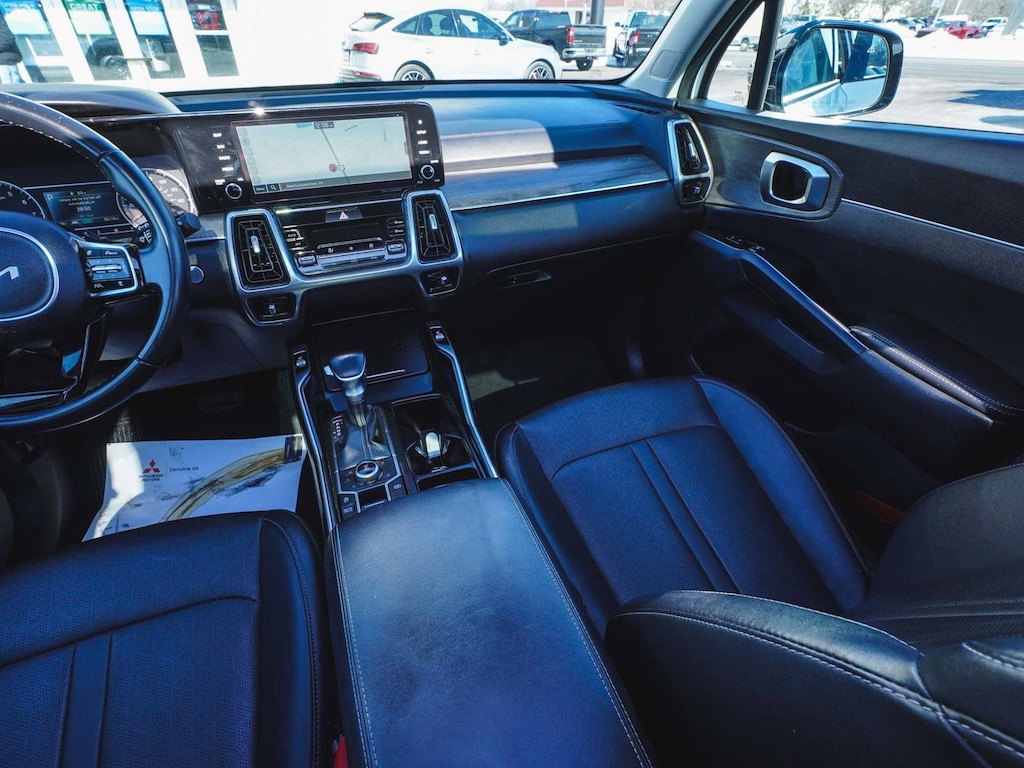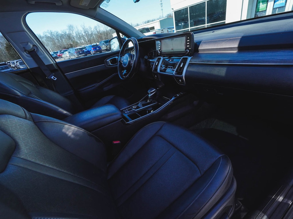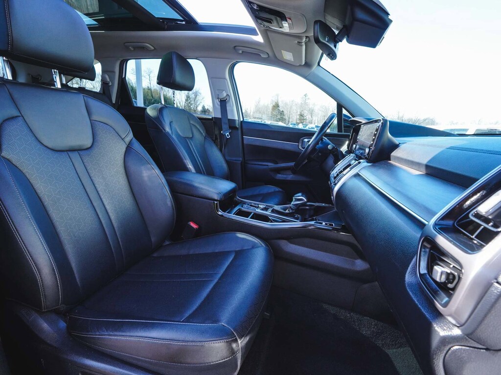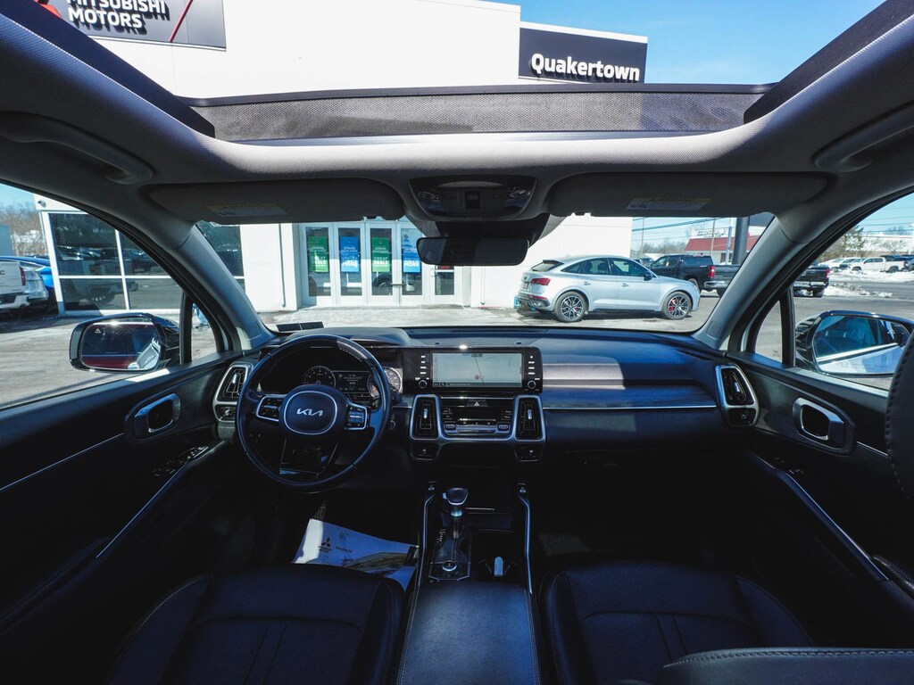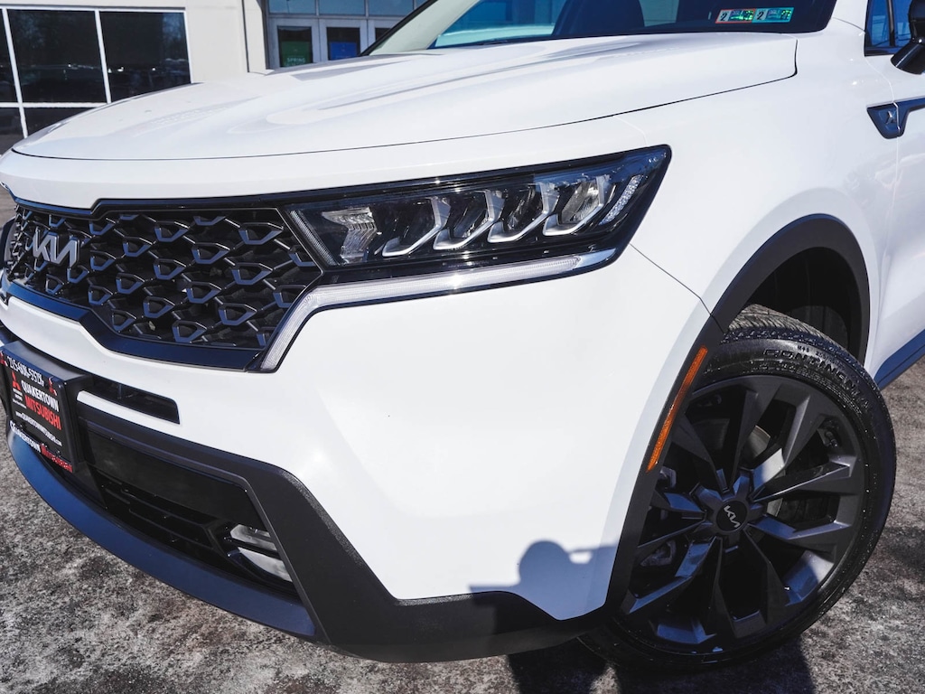 2023 Kia Sorento X-Line EX Recent Arrival! CLEAN CARFAX, ONE OWNER, BLUE TOOTH, NEW PA STATE INSPECTION, FULLY RECONDITIONED, NAVIGATION, ALLOY WHEELS, PANORAMIC SUNROOF, BACK UP CAMERA, Sorento X-Line EX, 4D Sport Utility, 2.5L I4 DGI Turbocharged DOHC 16V LEV3-ULEV70 281hp, 8-Speed DCT, AWD, Glacial White Pearl, Black w/SynTex Artificial Leather Seat Trim, 3rd row seats: split-bench, 4-Wheel Disc Brakes, 6 Speakers, ABS brakes, Adaptive Cruise Control with Stop and Go, AM/FM radio: SiriusXM, Apple CarPlay & Android Auto, Auto High-beam Headlights, Automatic temperature control, Brake assist, Dual front impact airbags, Dual front side impact airbags, EC Mirror w/HomeLink Plug-N-Play, Electronic Stability Control, Exterior Parking Camera Rear, Four wheel independent suspension, Front dual zone A/C, Front fog lights, Fully automatic headlights, Heated door mirrors, Heated Front Bucket Seats, Illuminated entry, Knee airbag, Leather Shift Knob, Leather steering wheel, Low tire pressure warning, Navigation System, Occupant sensing airbag, Overhead airbag, Panic alarm, Power door mirrors, Power driver seat, Power Liftgate, Power passenger seat, Radio: AM/FM Audio System, Rear window defroster, Remote keyless entry, Security system, Smart Key w/ Push Button and Remote Start, Speed-sensing steering, SynTex Artificial Leather Seat Trim, Telescoping steering wheel, Tilt steering wheel, Traction control, Turn signal indicator mirrors, Wheels: 8.5J x 20" Matte Gray Alloy. 22/27 City/Highway MPG