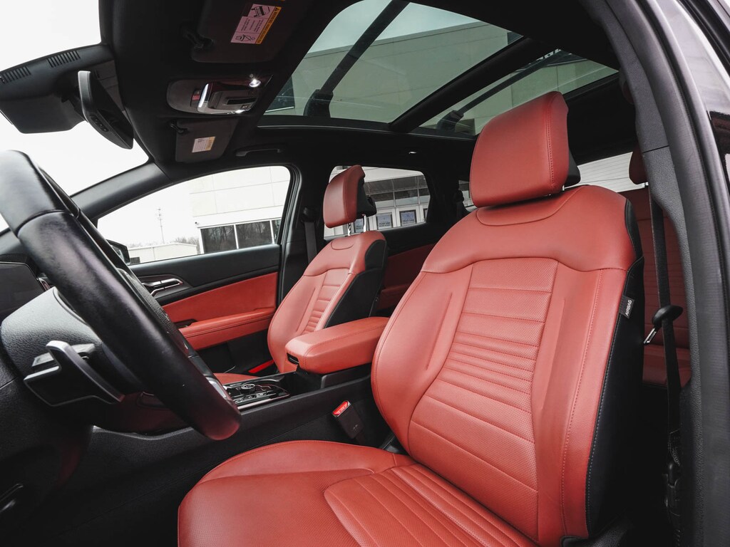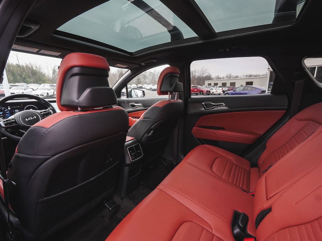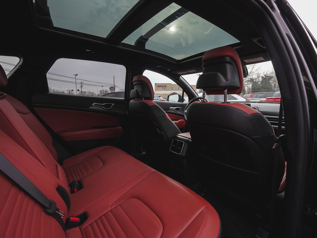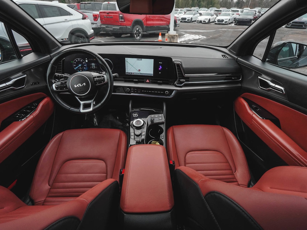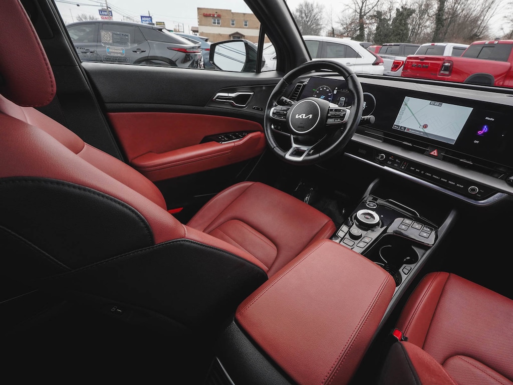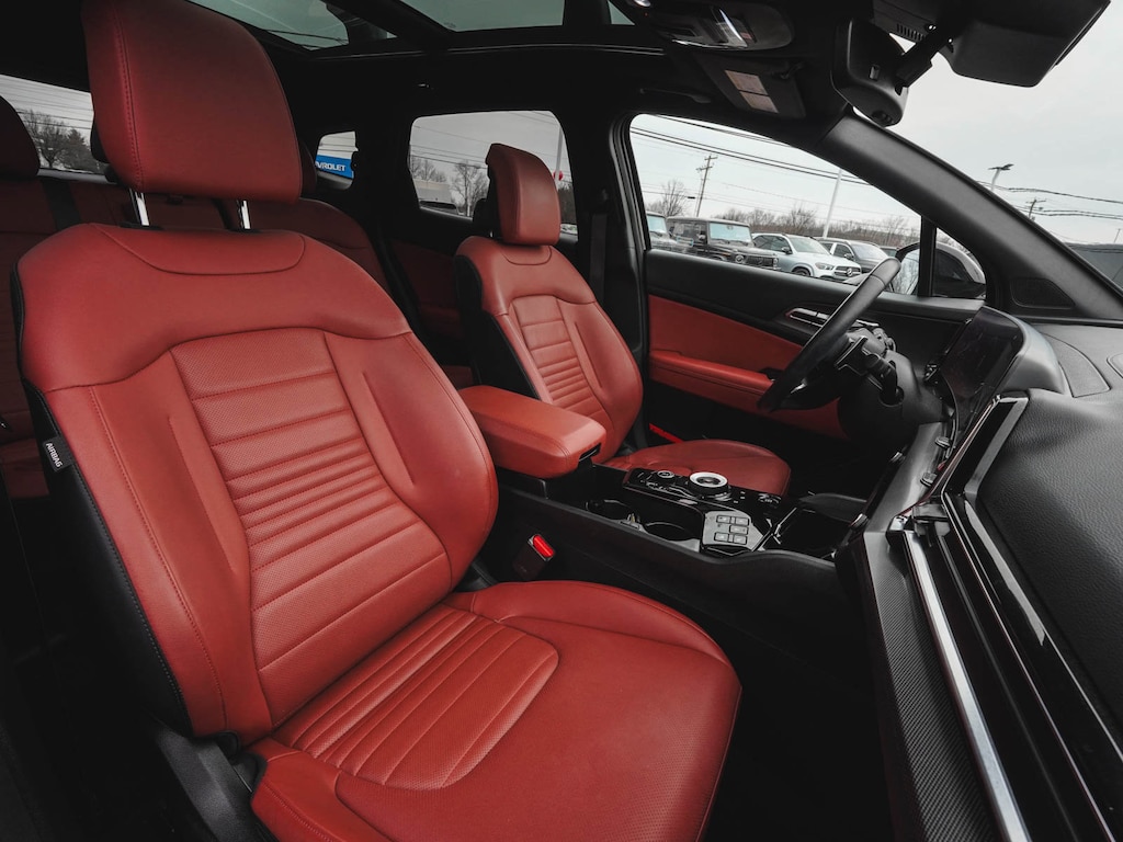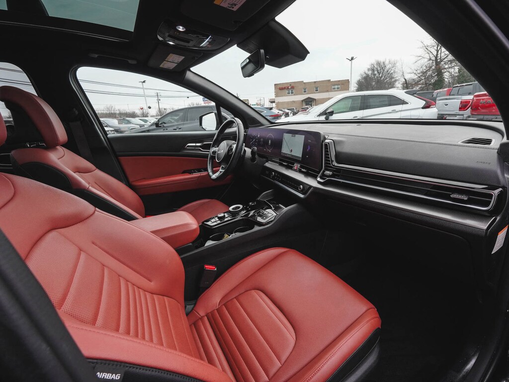 2024 Kia Sportage Hybrid SX-Prestige CLEAN CARFAX, ONE OWNER, BLUE TOOTH, NEW PA STATE INSPECTION, FULLY RECONDITIONED, NAVIGATION, ALLOY WHEELS, NON-SMOKER, PANORAMIC SUNROOF, LEATHER, BACK UP CAMERA, Sportage Hybrid SX-Prestige, 4D Sport Utility, I4, 6-Speed Automatic, AWD, Fusion Black, Red w/Premium Leatherette Seat Trim, 4-Wheel Disc Brakes, 8 Speakers, ABS brakes, AM/FM radio: SiriusXM, Apple CarPlay & Android Auto, Auto High-beam Headlights, Automatic temperature control, Brake assist, Carmine Red Interior Color Package, Cruise control, Dual front impact airbags, Dual front side impact airbags, EC Mirror w/HomeLink, Electronic Stability Control, Four wheel independent suspension, Front dual zone A/C, Front fog lights, Fully automatic headlights, harman/kardon® Speakers, Heated & Ventilated Front Bucket Seats, Heated door mirrors, Heated steering wheel, Illuminated entry, Leather steering wheel, Low tire pressure warning, Memory seat, Navigation System, Occupant sensing airbag, Overhead airbag, Panic alarm, Power door mirrors, Power driver seat, Power Liftgate, Power passenger seat, Premium Leatherette Seat Trim, Rain sensing wipers, Rear side impact airbag, Rear window defroster, Rear window wiper, Remote keyless entry, Security system, Telescoping steering wheel, Tilt steering wheel, Traction control, Turn signal indicator mirrors, Wheels: 18" x 7.5J Dark Alloy. 38/38 City/Highway MPG Odometer is 8829 miles below market average!
