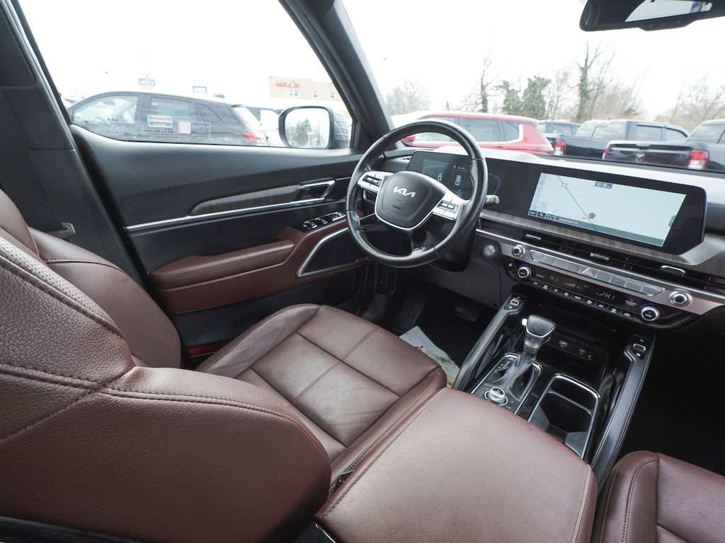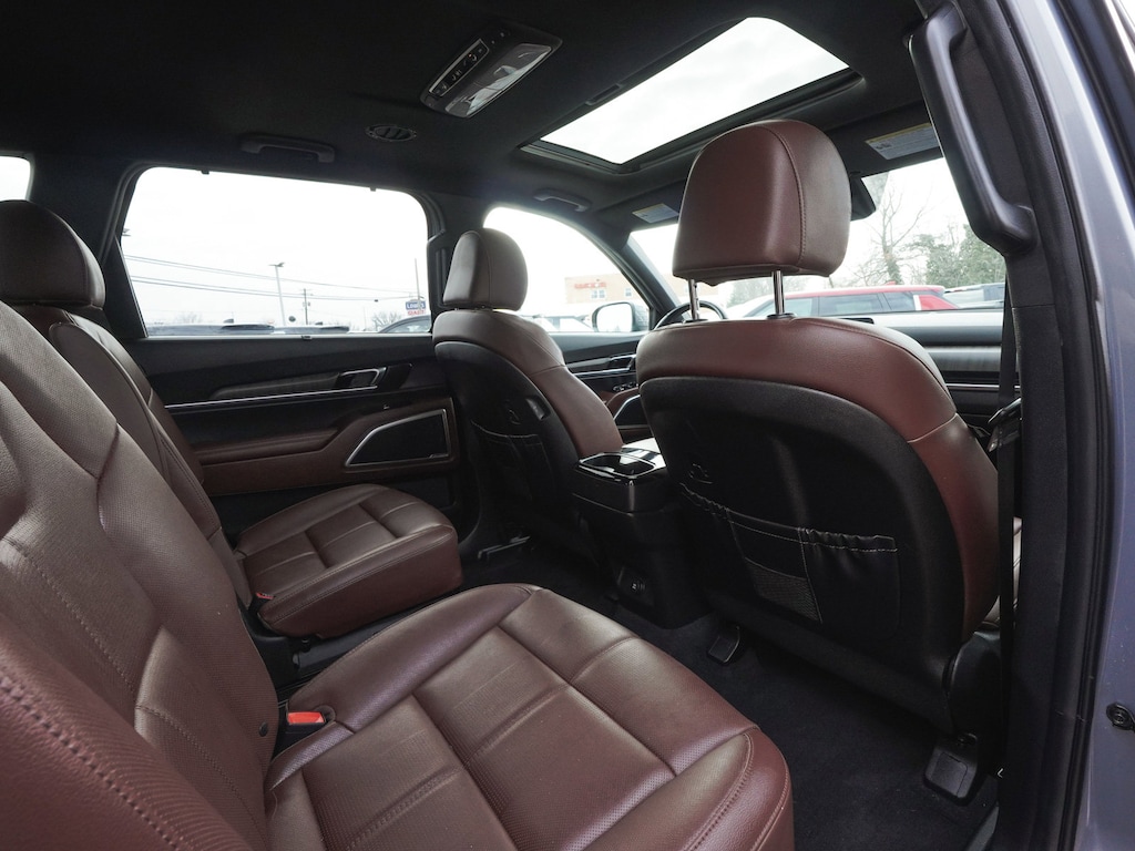2024 Kia Telluride EX CLEAN CARFAX, ONE OWNER, BLUE TOOTH, NEW PA STATE INSPECTION, FULLY RECONDITIONED, NAVIGATION, ALLOY WHEELS, NON-SMOKER, SUNROOF/MOONROOF, LEATHER, BACK UP CAMERA, Telluride EX, 4D Sport Utility, 3.8L V6 DOHC, 8-Speed Automatic, AWD, Everlasting Silver, Black w/Leather Seat Trim, 2nd Row Captain Chairs, 3rd row seats: split-bench, 4-Wheel Disc Brakes, 6 Speakers, ABS brakes, AM/FM radio: SiriusXM, Apple CarPlay & Android Auto, Auto High-beam Headlights, Auto-dimming Rear-View mirror, Automatic temperature control, Brake assist, Cruise control, Dual front impact airbags, Dual front side impact airbags, Electronic Stability Control, EX Captain's Chair Package, Exterior Parking Camera Rear, Four wheel independent suspension, Front dual zone A/C, Fully automatic headlights, Heated & Ventilated Front Bucket Seats, Heated door mirrors, Heated steering wheel, Illuminated entry, Knee airbag, Leather Seat Trim, Leather Shift Knob, Leather steering wheel, Low tire pressure warning, Mahogany Interior Color Package, Navigation System, Occupant sensing airbag, Overhead airbag, Panic alarm, Power door mirrors, Power driver seat, Power Liftgate, Power moonroof, Power passenger seat, Radio: AM/FM Display Audio System, Rear audio controls, Rear side impact airbag, Rear window defroster, Rear window wiper, Reclining 3rd row seat, Remote keyless entry, Security system, Smart Key w/ Push Button and Remote Start, Telescoping steering wheel, Tilt steering wheel, Traction control, Turn signal indicator mirrors, Ventilated front seats, Wheels: 20" x 7.5" Black Finish. Odometer is 10885 miles below market average!