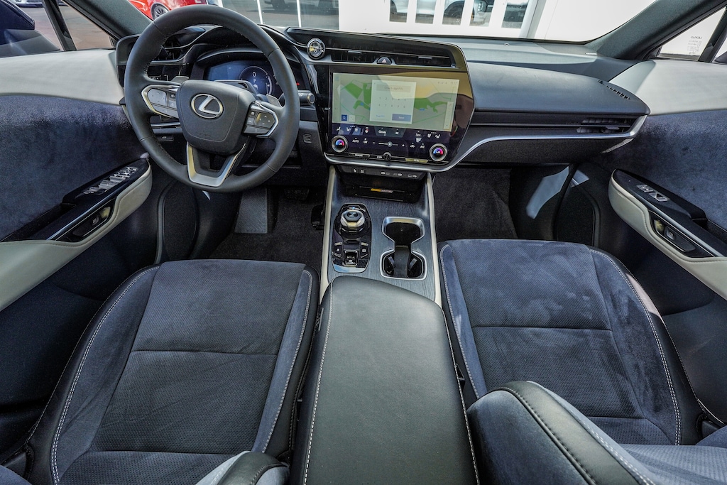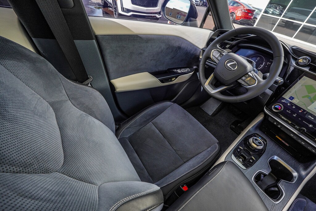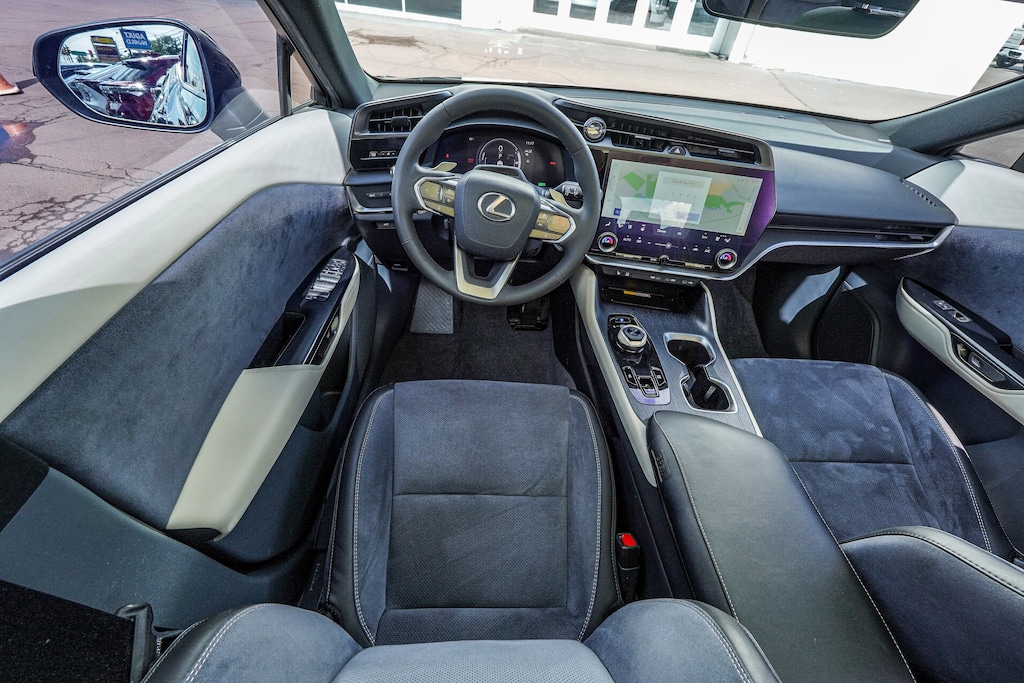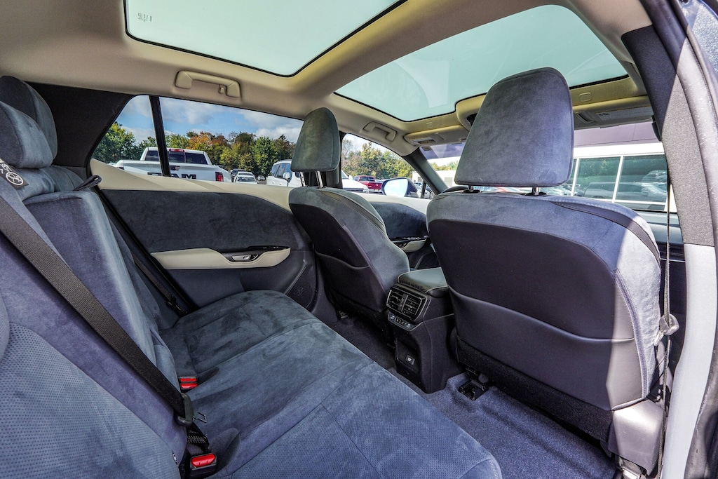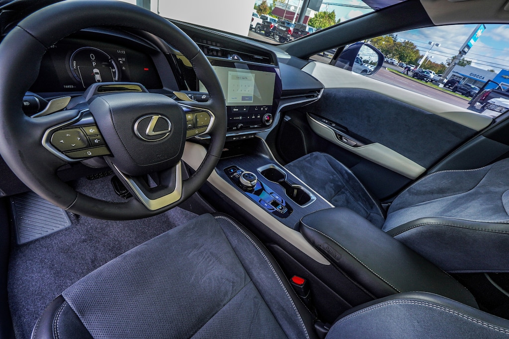 2023 Lexus RZ 450e Luxury BLUE TOOTH, NEW PA STATE INSPECTION, FULLY RECONDITIONED, NAVIGATION, ALLOY WHEELS, NON-SMOKER, PANORAMIC SUNROOF, LEATHER, BACK UP CAMERA, RZ 450e Luxury, 4D Sport Utility, Electric Motor, Single-Speed Automatic, AWD, Caviar, Dapple Gray/Black w/Ultrasuede Seat Trim, 13 Speakers, 4-Wheel Disc Brakes, ABS brakes, AM/FM radio: SiriusXM, Apple CarPlay/Android Auto, Auto High-beam Headlights, Auto-dimming door mirrors, Auto-dimming Rear-View mirror, Automatic temperature control, Brake assist, Cold Area Package, Cruise control, Dual front impact airbags, Dual front side impact airbags, Dynamic Sky Panorama Glass Roof w/Dimming, Electronic Stability Control, Exterior Parking Camera Rear, Four wheel independent suspension, Front dual zone A/C, Fully automatic headlights, Heads-Up Display, Heated & Ventilated Front Bucket Seats, Heated door mirrors, Heated rear seats, Heated steering wheel, Illuminated entry, Illuminated Front Badge, Knee airbag, Low tire pressure warning, Memory seat, Navigation System, Occupant sensing airbag, Overhead airbag, Panic alarm, Power door mirrors, Power driver seat, Power Liftgate, Power passenger seat, Radio: Lexus Interface w/Mark Levinson Audio, Rear window defroster, Remote keyless entry, Security system, Steering wheel memory, Telescoping steering wheel, Tilt steering wheel, Traction control, Turn signal indicator mirrors, Ultrasuede Seat Trim, Wheels: 20" 10-Spoke Premium Alloy. 102/87 City/Highway MPG