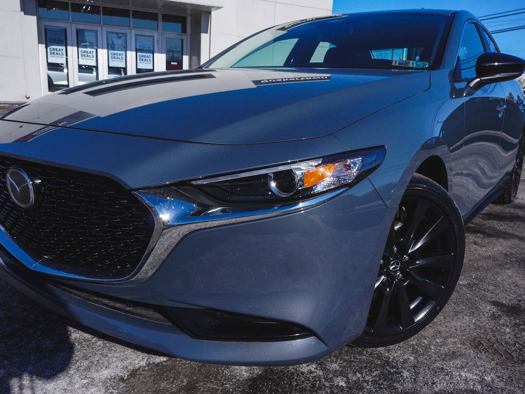2024 Mazda Mazda3 2.5 S Carbon Edition CLEAN CARFAX, ONE OWNER, BLUE TOOTH, NEW PA STATE INSPECTION, FULLY RECONDITIONED, NAVIGATION, ALLOY WHEELS, NON-SMOKER, SUNROOF/MOONROOF, LEATHER, BACK UP CAMERA, Mazda3 2.5 S Carbon Edition, 4D Sedan, 2.5L I4 DOHC 16V LEV3-SULEV30 191hp, 6-Speed Automatic, AWD, Polymetal Gray Metallic, Red w/Leather Seat Trim, 4-Wheel Disc Brakes, 8 Speakers, ABS brakes, Auto High-beam Headlights, Automatic temperature control, Brake assist, Cruise control, Dual front impact airbags, Dual front side impact airbags, Electronic Stability Control, Exterior Parking Camera Rear, Front dual zone A/C, Front wheel independent suspension, Fully automatic headlights, Heated door mirrors, Heated Front Sport Bucket Seats, Illuminated entry, Knee airbag, Leather Seat Trim, Leather Shift Knob, Leather steering wheel, Low tire pressure warning, MAZDA CONNECT Infotainment System, Memory seat, Navigation System, Occupant sensing airbag, Overhead airbag, Panic alarm, Power door mirrors, Power driver seat, Power moonroof, Radio: AM/FM/HD Audio System, Rain sensing wipers, Rear side impact airbag, Rear window defroster, Remote keyless entry, Telescoping steering wheel, Tilt steering wheel, Traction control, Turn signal indicator mirrors, Wheels: 18" x 7J Aluminum Alloy. 26/35 City/Highway MPG Odometer is 12609 miles below market average!