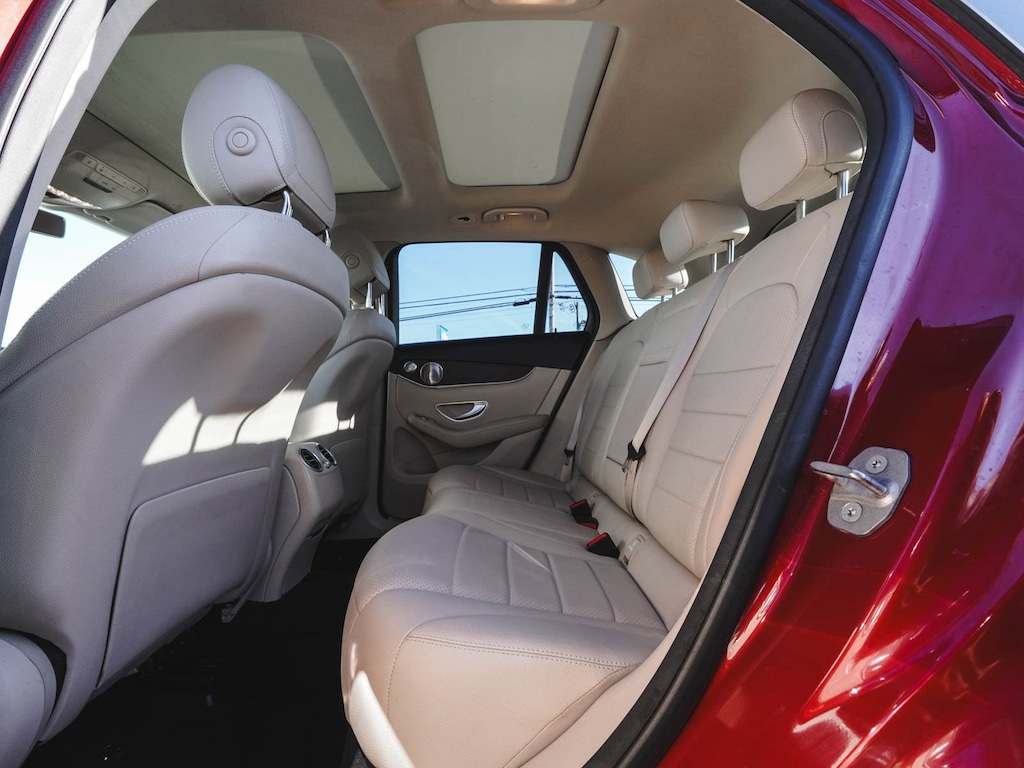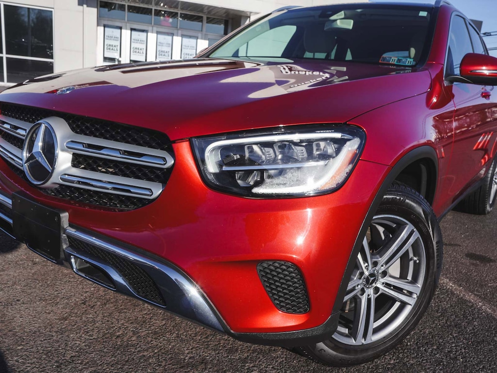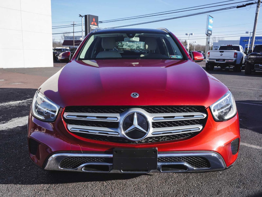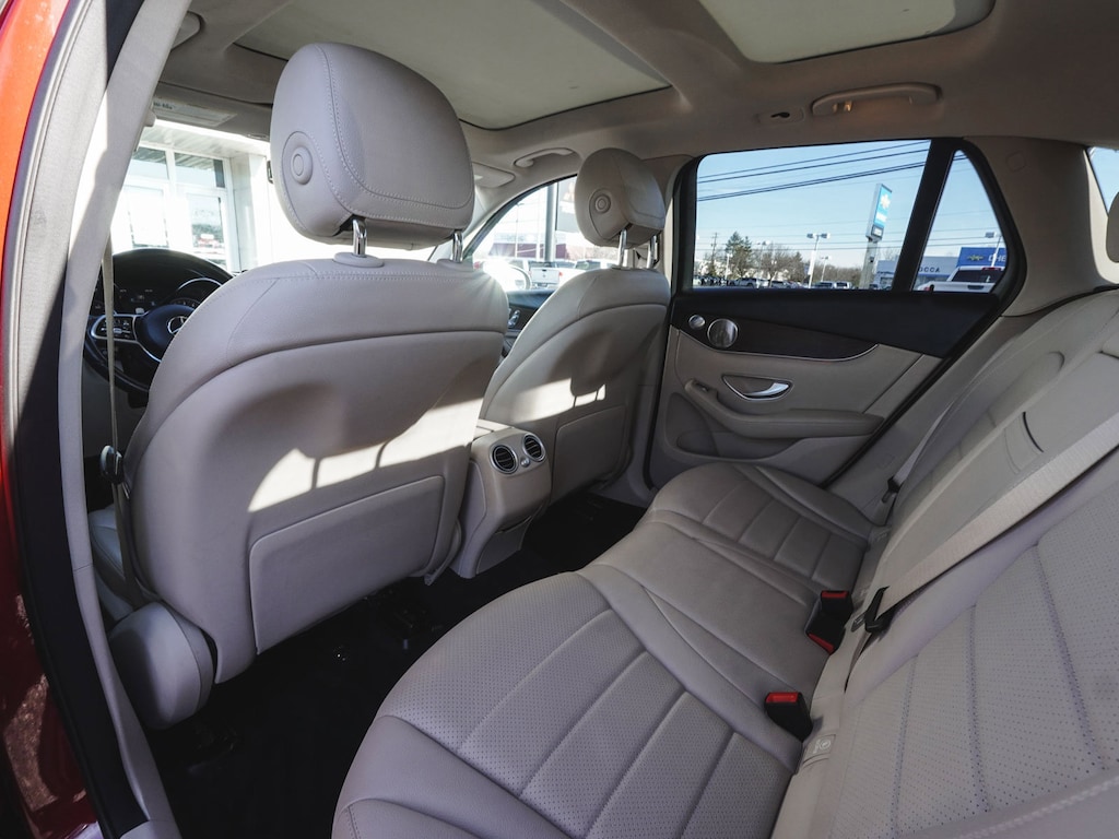 2020 Mercedes-Benz GLC 300 4MATIC® ONE OWNER, BLUE TOOTH, NEW PA STATE INSPECTION, FULLY RECONDITIONED, NAVIGATION, ALLOY WHEELS, PANORAMIC SUNROOF, LEATHER, BACK UP CAMERA, GLC 300 4MATIC®, 4D Sport Utility, I4, 9-Speed Automatic, 4MATIC®, designo Cardinal Red Metallic, Silk Beige/Black w/MB-Tex Upholstery, 10.25" Center Touchscreen Display, 4-Way Lumbar Support, 4-Wheel Disc Brakes, 6 Speakers, 64-Color Ambient Lighting, ABS brakes, AM/FM radio, Apple CarPlay®/Android Auto®, Auto tilt-away steering wheel, Auto-dimming door mirrors, Auto-dimming Rear-View mirror, Automatic temperature control, Brake assist, Burmester® Surround Sound System, Child-Seat-Sensing Airbag, Cruise control, Dual front impact airbags, Dual front side impact airbags, Electrically Adjustable Passenger Seat, Electronic Stability Control, Exterior Parking Camera Rear, Four wheel independent suspension, Front dual zone A/C, Fully automatic headlights, Garage door transmitter: Homelink, Genuine wood dashboard insert, Heated door mirrors, Heated Front Bucket Seats, Heated Steering Wheel, Illuminated Door Sills, Illuminated entry, Illuminated Star, KEYLESS GO®, Knee airbag, Leather steering wheel, Low tire pressure warning, MB-Tex Upholstery, Navigation System, Occupant sensing airbag, Overhead airbag, Panic alarm, Panorama Sunroof, Porcelain Fabric Headliner, Power door mirrors, Power Driver Seat & Steering Column w/Memory, Power Liftgate, Premium Package, Rain sensing wipers, Rear window defroster, Rear window wiper, Remote keyless entry, Security system, SiriusXM Satellite Radio, Smartphone Integration, Telescoping steering wheel, Traction control, Turn signal indicator mirrors, Wheels: 18" Split 5-Spoke. 21/28 City/Highway MPG Odometer is 1959 miles below market average!