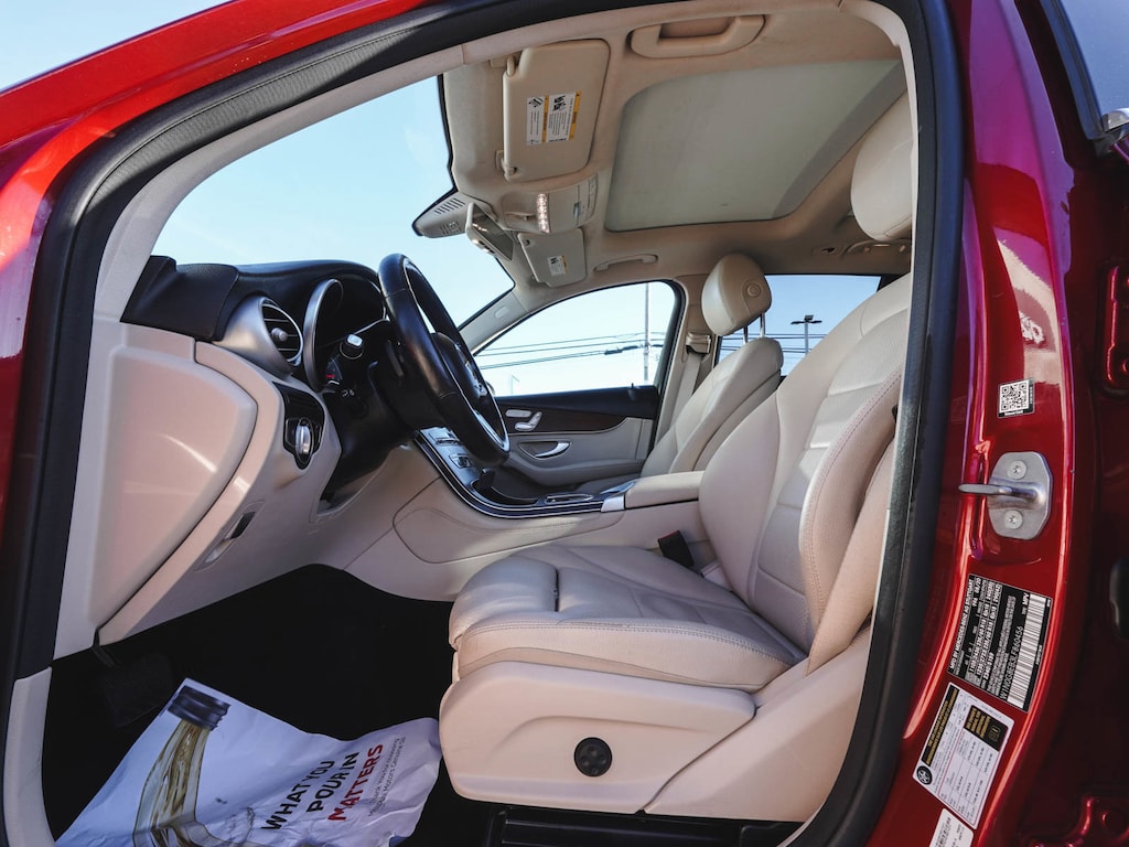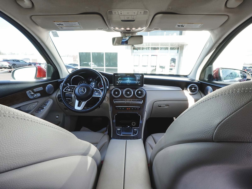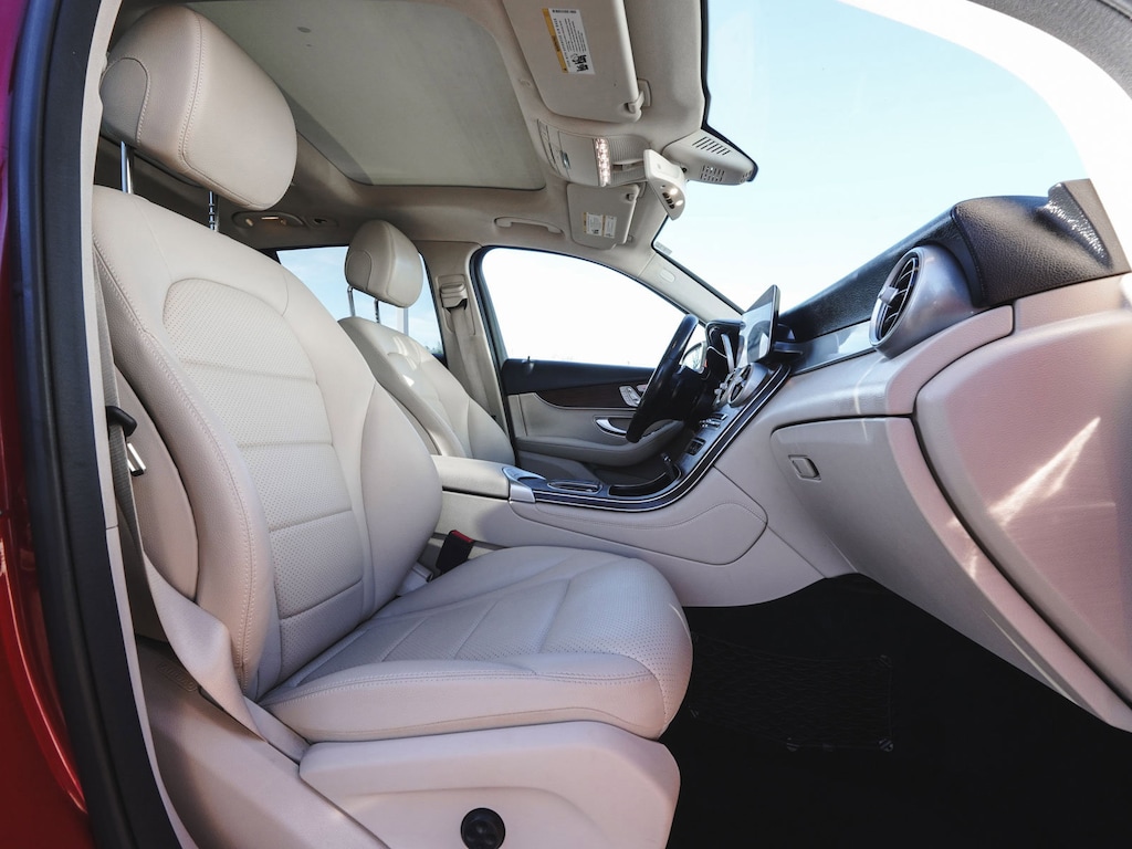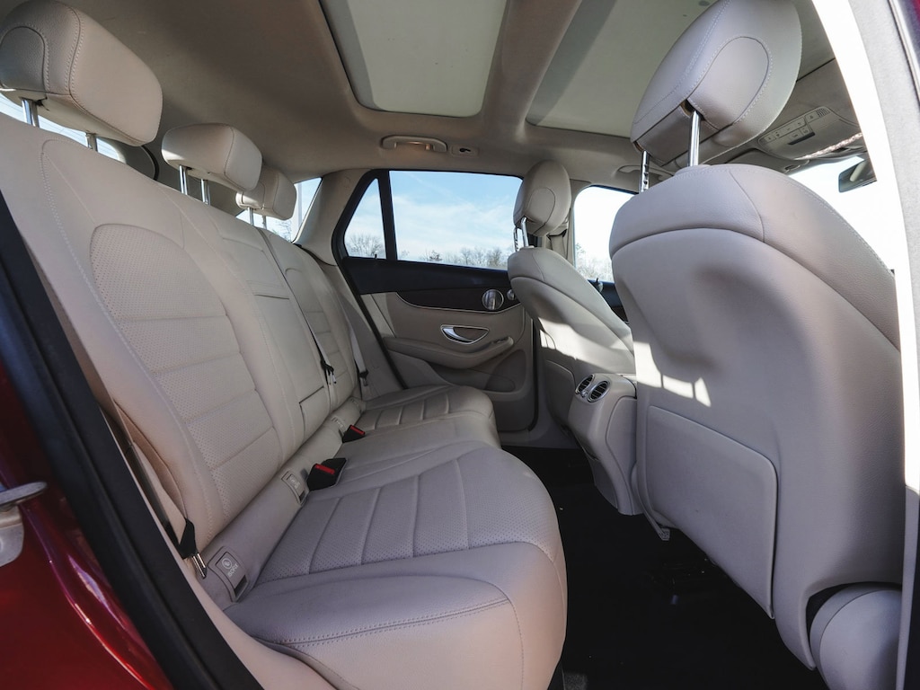 2020 Mercedes-Benz GLC 300 4MATIC® ONE OWNER, BLUE TOOTH, NEW PA STATE INSPECTION, FULLY RECONDITIONED, NAVIGATION, ALLOY WHEELS, PANORAMIC SUNROOF, LEATHER, BACK UP CAMERA, GLC 300 4MATIC®, 4D Sport Utility, I4, 9-Speed Automatic, 4MATIC®, designo Cardinal Red Metallic, Silk Beige/Black w/MB-Tex Upholstery, 10.25" Center Touchscreen Display, 4-Way Lumbar Support, 4-Wheel Disc Brakes, 6 Speakers, 64-Color Ambient Lighting, ABS brakes, AM/FM radio, Apple CarPlay®/Android Auto®, Auto tilt-away steering wheel, Auto-dimming door mirrors, Auto-dimming Rear-View mirror, Automatic temperature control, Brake assist, Burmester® Surround Sound System, Child-Seat-Sensing Airbag, Cruise control, Dual front impact airbags, Dual front side impact airbags, Electrically Adjustable Passenger Seat, Electronic Stability Control, Exterior Parking Camera Rear, Four wheel independent suspension, Front dual zone A/C, Fully automatic headlights, Garage door transmitter: Homelink, Genuine wood dashboard insert, Heated door mirrors, Heated Front Bucket Seats, Heated Steering Wheel, Illuminated Door Sills, Illuminated entry, Illuminated Star, KEYLESS GO®, Knee airbag, Leather steering wheel, Low tire pressure warning, MB-Tex Upholstery, Navigation System, Occupant sensing airbag, Overhead airbag, Panic alarm, Panorama Sunroof, Porcelain Fabric Headliner, Power door mirrors, Power Driver Seat & Steering Column w/Memory, Power Liftgate, Premium Package, Rain sensing wipers, Rear window defroster, Rear window wiper, Remote keyless entry, Security system, SiriusXM Satellite Radio, Smartphone Integration, Telescoping steering wheel, Traction control, Turn signal indicator mirrors, Wheels: 18" Split 5-Spoke. 21/28 City/Highway MPG Odometer is 1959 miles below market average!