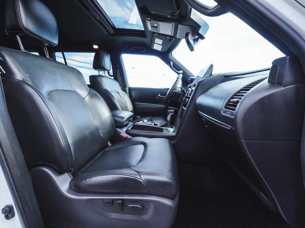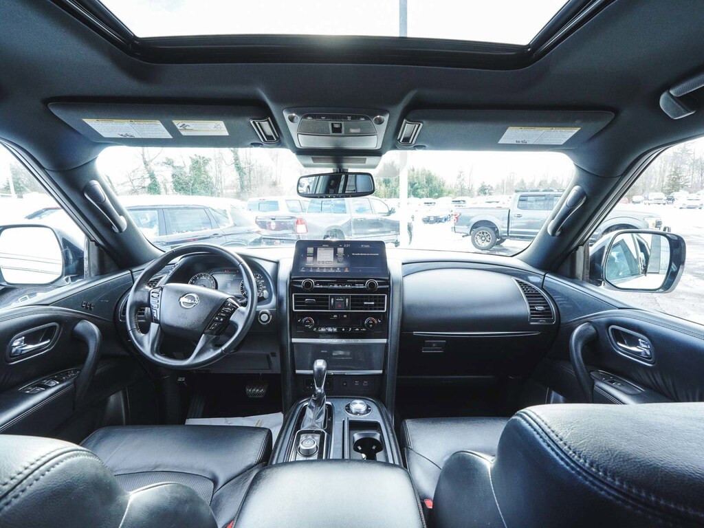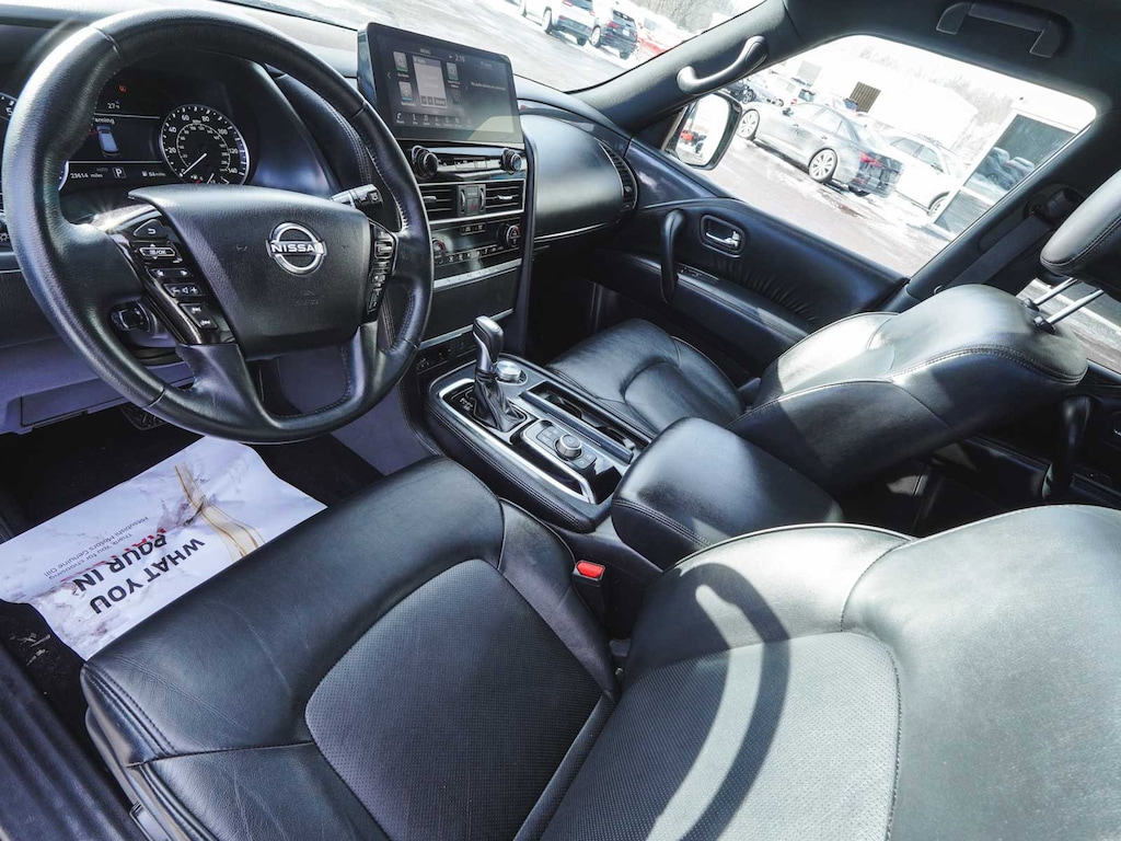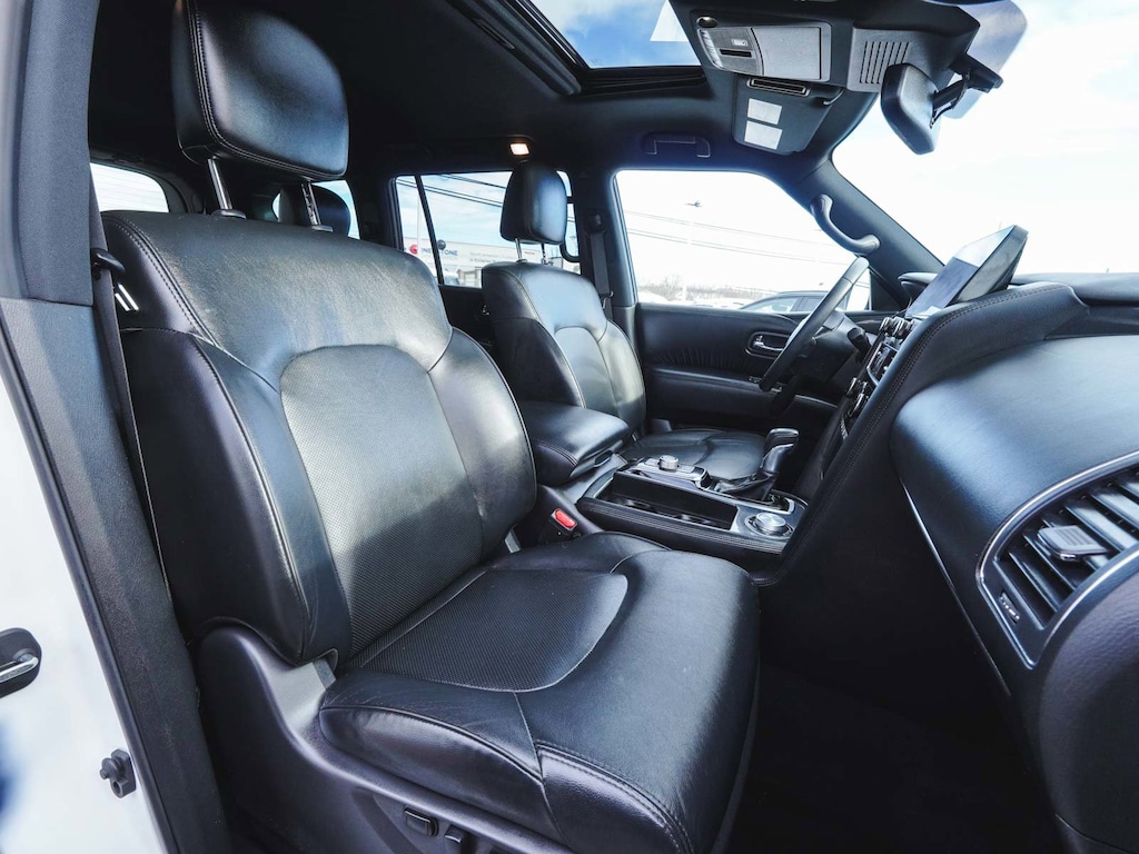 2023 Nissan Armada SL BLUE TOOTH, NEW PA STATE INSPECTION, FULLY RECONDITIONED, NAVIGATION, ALLOY WHEELS, SUNROOF/MOONROOF, LEATHER, BACK UP CAMERA, Armada SL, 4D Sport Utility, 5.6L V8 DOHC 32V LEV3-ULEV125 400hp, 7-Speed Automatic, 4WD, Aspen White Tricoat, Midnight Edition w/Leather Appointed Seat Trim, 20" Wheels, 2nd Row Captain's Chairs, 2nd Row Center Console w/Padded Armrest, 3rd row seats: split-bench, 4-Wheel Disc Brakes, ABS brakes, AM/FM radio: SiriusXM, Anti-whiplash front head restraints, Auto High-beam Headlights, Auto tilt-away steering wheel, Auto-Dimming Exterior Mirror w/LED Turn Signals, Auto-dimming Rear-View mirror, Auto-leveling suspension, Automatic temperature control, Black Painted Grille, Bose 13-Speaker Premium Audio System, Brake assist, Captain's Chairs Package, Cruise control, Dual front impact airbags, Dual front side impact airbags, Electronic Stability Control, Exterior Parking Camera Rear, Four wheel independent suspension, Front & Rear Lower Center Bumper Fascias, Front dual zone A/C, Front fog lights, Fully automatic headlights, Garage door transmitter: HomeLink, Heated door mirrors, Heated Front Bucket Seats, Heated steering wheel, Illuminated entry, Illuminated Kick Plates, Knee airbag, Leather Appointed Seat Trim, Leather Shift Knob, Low tire pressure warning, Memory seat, Midnight Edition Package, Navigation System, NissanConnect featuring Apple CarPlay and Android Auto, Occupant sensing airbag, Overhead airbag, Panic alarm, Power door mirrors, Power driver seat, Power Liftgate, Power moonroof, Power passenger seat, Premium audio system: Bose, Radio: NissanConnect w/SiriusXM, Rear air conditioning, Rear LED Lamps w/Black Paint Finisher, Rear window defroster, Rear window wiper, Reclining 3rd row seat, Remote keyless entry, Security system, Steering wheel memory, Telescoping steering wheel, Traction control. Odometer is 30630 miles below market average!