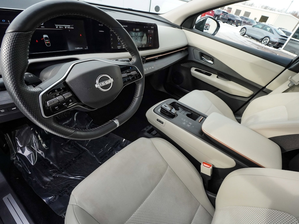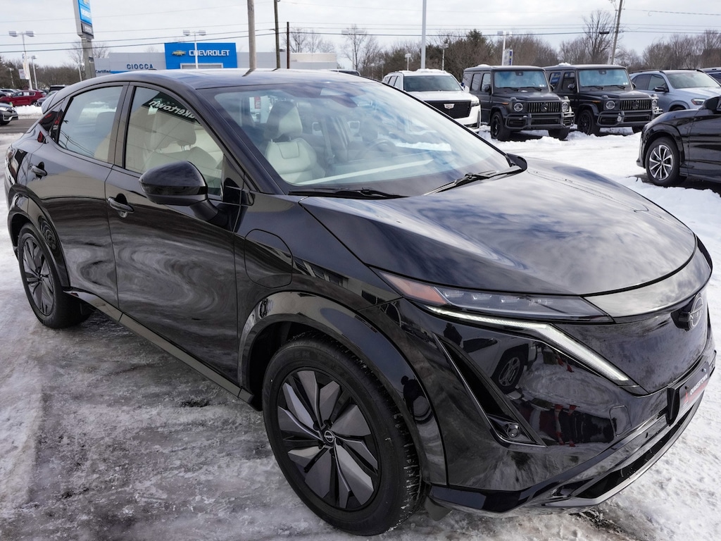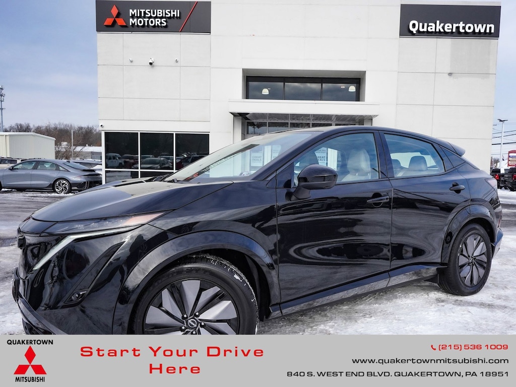 2024 Nissan Ariya EVOLVE+ e-4ORCE CLEAN CARFAX, ONE OWNER, BLUE TOOTH, NEW PA STATE INSPECTION, FULLY RECONDITIONED, NAVIGATION, ALLOY WHEELS, NON-SMOKER, PANORAMIC SUNROOF, LEATHER, BACK UP CAMERA, Ariya EVOLVE+ e-4ORCE, 4D Sport Utility, Electric Motor, CVT, AWD, Black Diamond Pearl, Hai Gray w/Leatherette Seating Surfaces, 19" Alloy Wheels, 4-Wheel Disc Brakes, 6 Speakers, ABS brakes, Auto High-beam Headlights, Automatic temperature control, Brake assist, Cruise control, Dual front impact airbags, Dual front side impact airbags, Electronic Stability Control, Four wheel independent suspension, Front dual zone A/C, Front fog lights, Garage door transmitter: HomeLink, Heads-Up Display, Heated door mirrors, Heated Front Bucket Seats, Heated rear seats, Heated steering wheel, Illuminated entry, Knee airbag, Leather steering wheel, Leatherette Seating Surfaces, Low tire pressure warning, Memory seat, Navigation system: Nissan Door to Door Connected Navigation, Nissan USB Charging Cable Set, Occupant sensing airbag, Overhead airbag, Panic alarm, Power door mirrors, Power driver seat, Power Liftgate, Power passenger seat, Radio: AM/FM Audio System, Rain sensing wipers, Rear side impact airbag, Rear window defroster, Rear window wiper, Remote keyless entry, Security system, Telescoping steering wheel, Tilt steering wheel, Traction control. 97/86 City/Highway MPG Odometer is 4286 miles below market average!