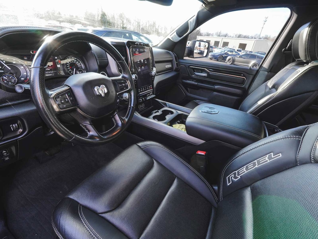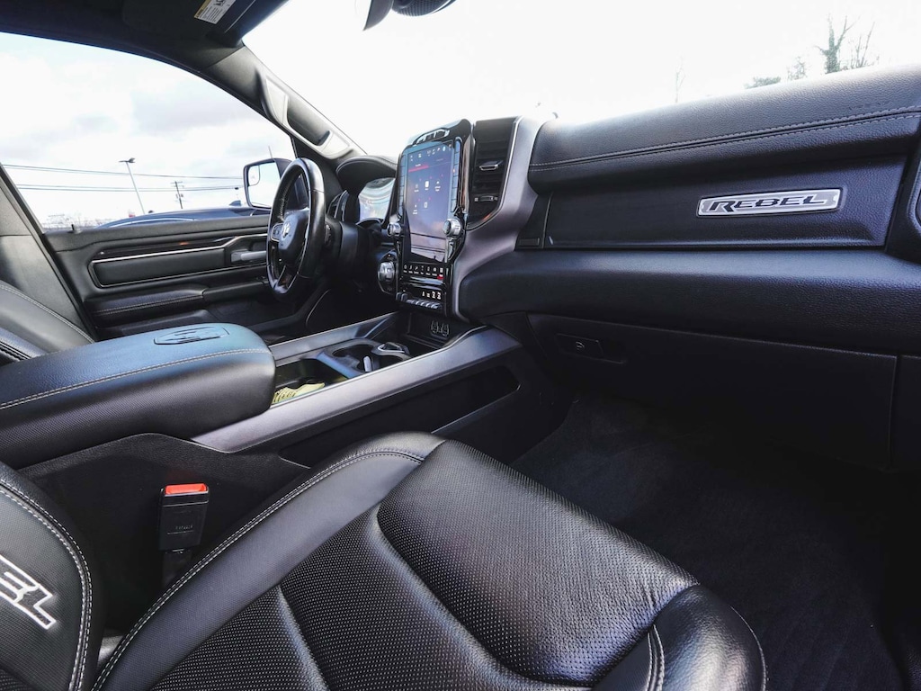 2022 Ram 1500 Rebel CLEAN CARFAX, BLUE TOOTH, NEW PA STATE INSPECTION, FULLY RECONDITIONED, NAVIGATION, ALLOY WHEELS, LEATHER, BACK UP CAMERA, 1500 Rebel, 4D Crew Cab, EcoDiesel 3.0L V6, 8-Speed Automatic, 4WD, Granite Crystal Metallic Clearcoat, Black w/Leather Trimmed Bucket Seats, 12" Touchscreen Display, 2-Door Passive Entry, Front Door Locks, 4-Wheel Disc Brakes, 4G LTE Wi-Fi Hot Spot, ABS brakes, Air Conditioning ATC w/Dual Zone Control, All R1 High Radios, All Radio Equipped Vehicles, AM/FM radio: SiriusXM, Apple CarPlay, Auto-Dimming Exterior Driver Mirror, Auto-dimming Rear-View mirror, Black Exterior Mirrors, Black Premium Power Mirrors, Bluetooth Handsfree Phone & Audio, Body Color Door Handles, Brake assist, Convex Wide-Angle Mirror Insert, Cruise control, Disassociated Touchscreen Display, Dual front impact airbags, Dual front side impact airbags, Electronic Stability Control, Exterior Mirrors Courtesy Lamps, Exterior Mirrors w/Heating Element, Exterior Mirrors w/Supplemental Signals, Front Bucket Seats, Front fog lights, Front wheel independent suspension, Fully automatic headlights, Google Android Auto, GPS Antenna Input, GPS Navigation, Grille Surround 2 Black Texture 3 Black, harman/kardon 19 Speaker Premium Sound, HD Radio, Heated Front Seats, Heated Steering Wheel, Illuminated entry, Integrated Center Stack Radio, Integrated Voice Command w/Bluetooth, Leather steering wheel, LED Footwell Lighting, Low tire pressure warning, Lux Leather Trimmed Bucket Seats, Media Hub w/2 Charge Only USBs, Night Edition, Occupant sensing airbag, Off-Road Information Pages, Overhead airbag, Panic alarm, ParkSense Front/Rear Park Assist w/Stop, ParkView Rear Back-Up Camera, Power 2-Way Driver Lumbar Adjust, Power 2-Way Passenger Lumbar Adjust, Power 8-Way Driver & Passenger Seats, Power Adjustable Pedals, Power door mirrors, Power-Folding Mirrors, Quick Order Package 28W Rebel, Radio: Uconnect 5 Nav w/12.0" Display, Rain Sensitive Windshield Wipers, RAM Grille Badge - Black, RamBox Cargo Management System, Rear 60/40 Folding Seat, Rear Dome w/On/Off Switch Lamp, Rear step bumper, Rear Window Defroster, Rebel 12, Rebel Level 2 Equipment Group, Remote keyless entry, Remote Start System, Security Alarm, Telescoping steering wheel, Tilt steering wheel, Traction control, Trailer Brake Control, Universal Garage Door Opener, USB Host Flip, Wheels: 18" x 8.0" Gloss Black. 21/29 City/Highway MPG Odometer is 23122 miles below market average!