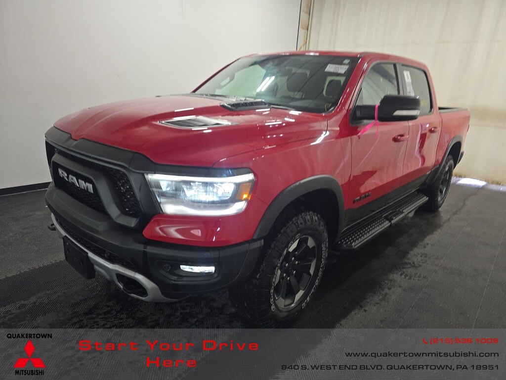 2022 Ram 1500 Rebel Recent Arrival! CLEAN CARFAX, BLUE TOOTH, NEW PA STATE INSPECTION, FULLY RECONDITIONED, NAVIGATION, ALLOY WHEELS, BACK UP CAMERA, 1500 Rebel, 4D Crew Cab, HEMI 5.7L V8 Multi Displacement VVT, 8-Speed Automatic, 4WD, Flame Red Clearcoat, Black/Red w/Cloth/Vinyl Bucket Seats, 12" Touchscreen Display, 2-Door Passive Entry, Front Door Locks, 4-Wheel Disc Brakes, 48V Belt Starter Generator, 4G LTE Wi-Fi Hot Spot, 9 Amplified Speakers w/Subwoofer, ABS brakes, Air Conditioning ATC w/Dual Zone Control, All R1 High Radios, All Radio Equipped Vehicles, AM/FM radio: SiriusXM, Apple CarPlay, Auto-Dimming Exterior Driver Mirror, Auto-dimming Rear-View mirror, Black Premium Power Mirrors, Bluetooth Handsfree Phone & Audio, Body Color Door Handles, Brake assist, Cloth/Vinyl Low Back Bucket Seats, Convex Wide-Angle Mirror Insert, Cruise control, Disassociated Touchscreen Display, Dual front impact airbags, Dual front side impact airbags, Electronic Stability Control, Exterior Mirrors Courtesy Lamps, Exterior Mirrors w/Heating Element, Exterior Mirrors w/Supplemental Signals, Front fog lights, Front wheel independent suspension, Fully automatic headlights, Global Telematics Box Module (TBM), Google Android Auto, GPS Antenna Input, GPS Navigation, HD Radio, Heated Front Seats, Heated Steering Wheel, Illuminated entry, Integrated Center Stack Radio, Integrated Voice Command w/Bluetooth, Leather steering wheel, LED Footwell Lighting, Low tire pressure warning, Media Hub w/2 Charge Only USBs, Mopar Black Tubular Side Steps, Occupant sensing airbag, Off-Road Information Pages, Overhead airbag, Panic alarm, ParkSense Front/Rear Park Assist w/Stop, ParkView Rear Back-Up Camera, Power 2-Way Driver Lumbar Adjust, Power Adjustable Pedals, Power door mirrors, Power driver seat, Power-Folding Mirrors, Quick Order Package 25W Rebel, Radio: Uconnect 5 Nav w/12.0" Display, Rain Sensitive Windshield Wipers, Rear 60/40 Folding Seat, Rear step bumper, Rear Window Defroster, Rebel Level 2 Equipment Group, Remote keyless entry, Remote Start System, Security Alarm, Telescoping steering wheel, Tilt steering wheel, Traction control, Universal Garage Door Opener, USB Host Flip, Wheels: 18" x 8.0" Painted Mid-Gloss Black. Odometer is 17679 miles below market average!