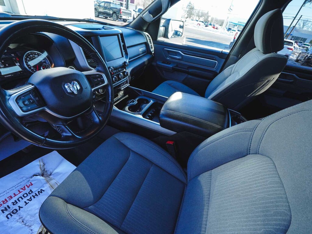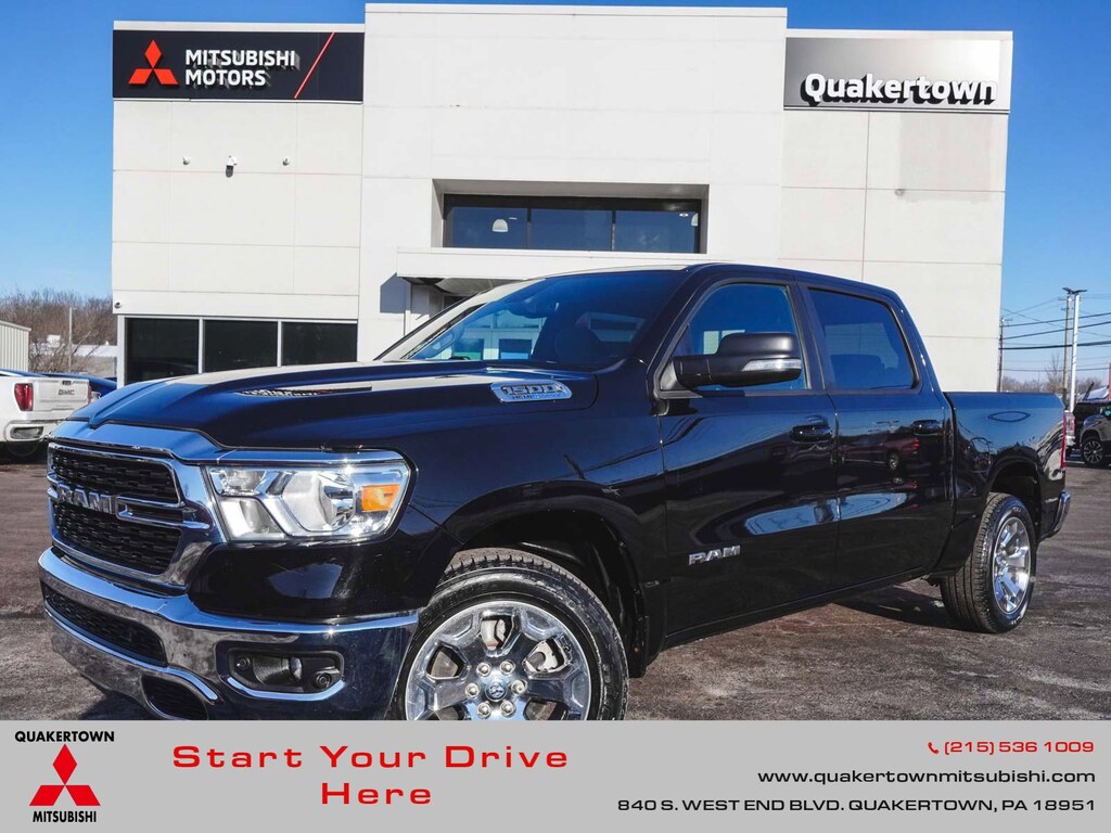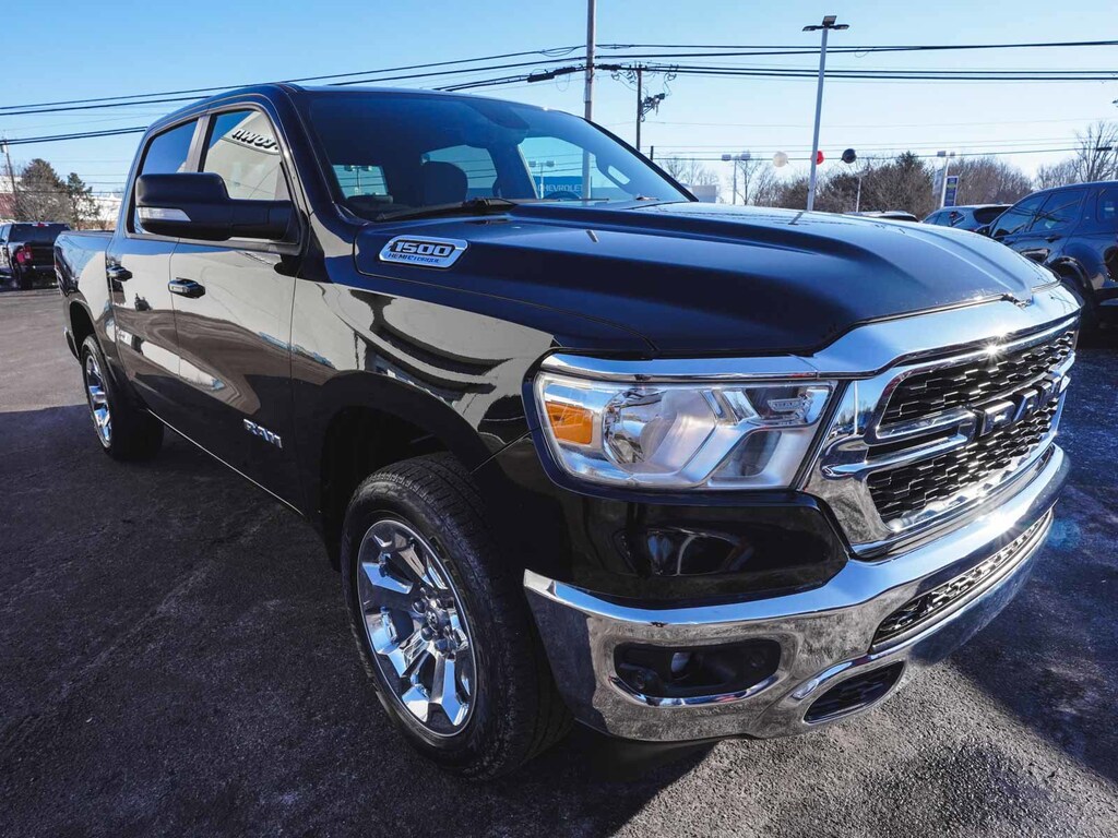 2022 Ram 1500 Big Horn/Lone Star CLEAN CARFAX, ONE OWNER, BLUE TOOTH, NEW PA STATE INSPECTION, FULLY RECONDITIONED, NAVIGATION, ALLOY WHEELS, NON-SMOKER, BACK UP CAMERA, 1500 Big Horn/Lone Star, 4D Crew Cab, HEMI 5.7L V8 Multi Displacement VVT, 8-Speed Automatic, 4WD, Diamond Black Crystal Pearlcoat, Diesel Gray/Black Deluxe Cloth Bucket Seats, 4-Wheel Disc Brakes, 48V Belt Starter Generator, 4G LTE Wi-Fi Hot Spot, 6 Speakers, 8.4" Touchscreen Display, ABS brakes, Active Noise Control System, Air Conditioning ATC w/Dual Zone Control, AM/FM radio, Apple CarPlay, Auto-Dimming Exterior Driver Mirror, Auto-Dimming Rear-View Mirror, Big Horn Badge, Big Horn Level 2 Equipment Group, Black Premium Power Mirrors, Bluetooth Handsfree Phone & Audio, Brake assist, Bucket Seats, Class IV Receiver Hitch, Cluster 7.0" TFT Color Display, Convex Wide-Angle Mirror Insert, Cruise control, Dual front impact airbags, Dual front side impact airbags, Dual Rear Exhaust w/Bright Tips, Electronic Stability Control, Exterior Mirrors Courtesy Lamps, Exterior Mirrors w/Heating Element, Exterior Mirrors w/Supplemental Signals, Front fog lights, Front wheel independent suspension, Fully automatic headlights, Global Telematics Box Module (TBM), Google Android Auto, GPEC 5 Engine Controller, GPS Antenna Input, GPS Navigation, Heated Front Seats, Heated Steering Wheel, Illuminated entry, Integrated Center Stack Radio, Integrated Voice Command w/Bluetooth, Leather steering wheel, Low tire pressure warning, Media Hub w/2 Charge Only USBs, Occupant sensing airbag, Overhead airbag, Panic alarm, ParkSense Front/Rear Park Assist w/Stop, ParkView Rear Back-Up Camera, Power 2-Way Driver Lumbar Adjust, Power 8-Way Driver Seat, Power Adjustable Pedals, Power door mirrors, Power-Folding Mirrors, Quick Order Package 27Z Big Horn, Radio: Uconnect 5 W w/8.4" Display, Rear 60/40 Folding Seat, Rear Power Sliding Window, Rear step bumper, Rear Window Defroster, Remote keyless entry, Remote Start System, Security Alarm, SiriusXM Radio Service, SiriusXM Satellite Radio, Telescoping steering wheel, Tilt steering wheel, Traction control, Universal Garage Door Opener, USB Host Flip, Wheels: 20" x 9" Aluminum Chrome Clad (WRK). Odometer is 3651 miles below market average!