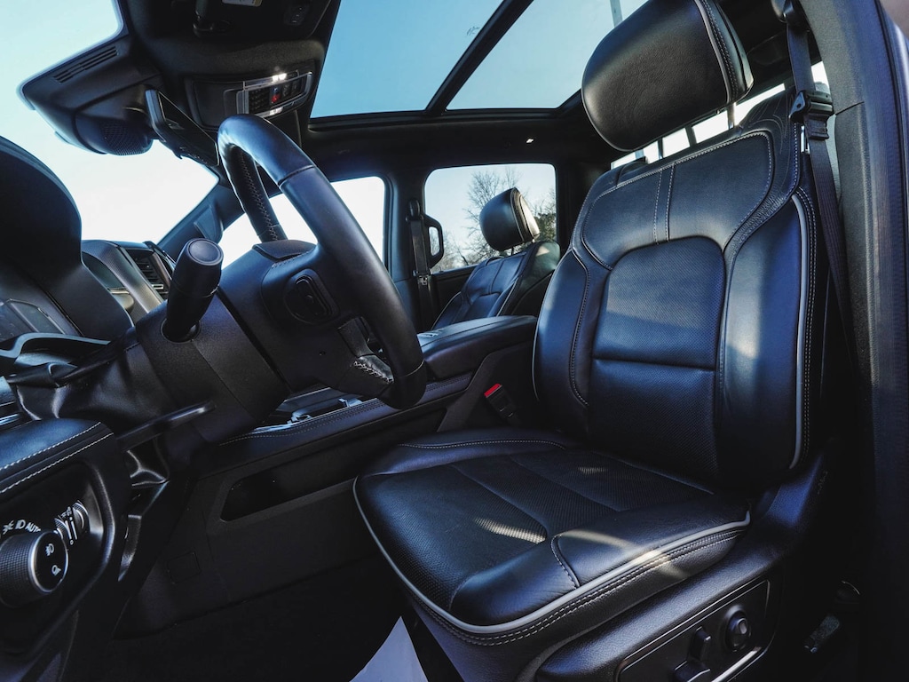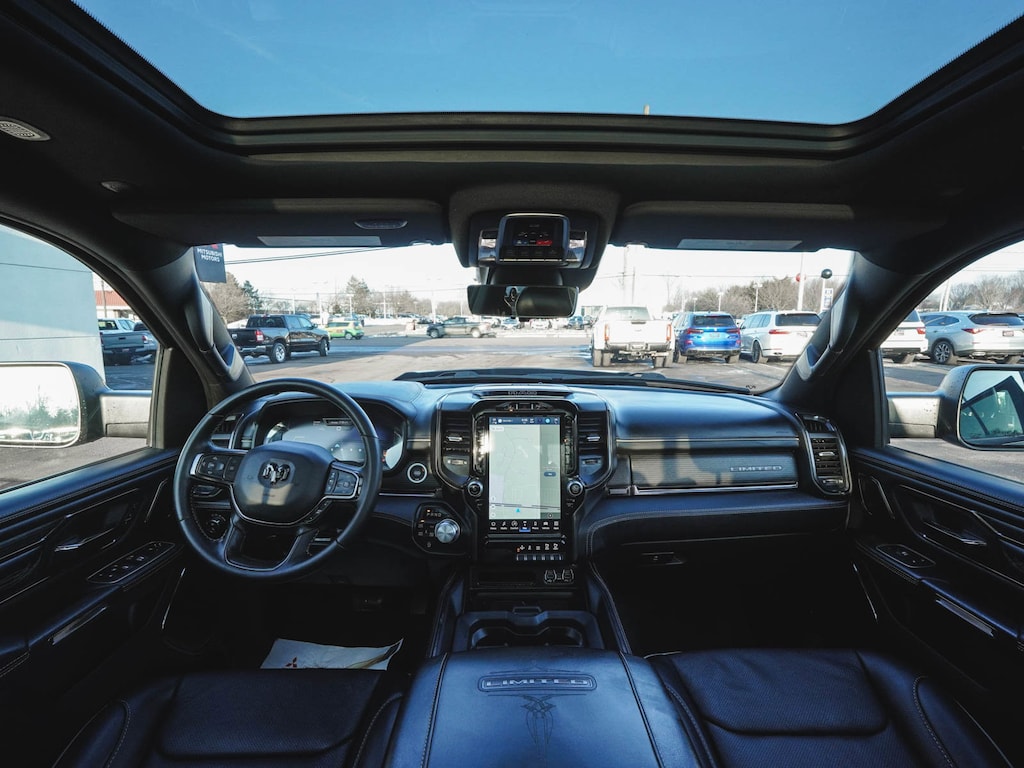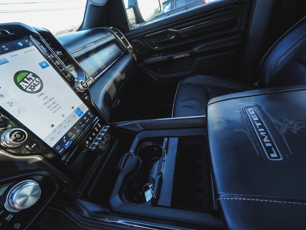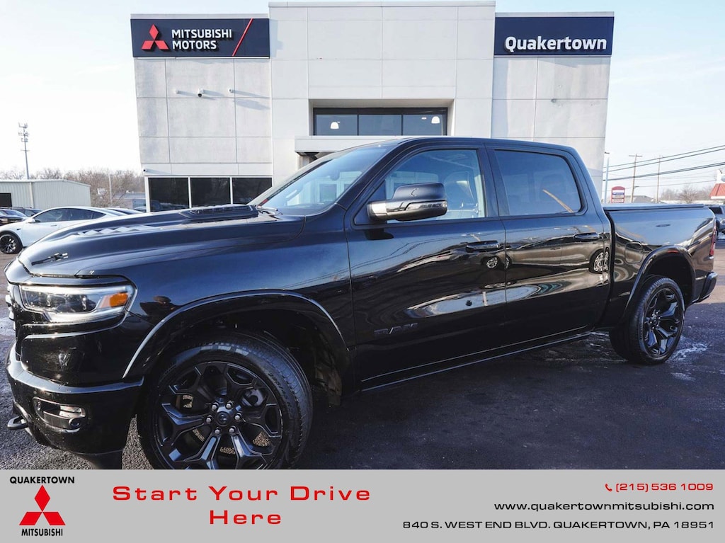 2023 Ram 1500 Limited ONE OWNER, BLUE TOOTH, NEW PA STATE INSPECTION, FULLY RECONDITIONED, NAVIGATION, PREMIUM WHEELS, NON-SMOKER, PANORAMIC SUNROOF, LEATHER, BACK UP CAMERA, 1500 Limited, 4D Crew Cab, HEMI 5.7L V8 Multi Displacement VVT eTorque, 8-Speed Automatic, 4WD, Diamond Black Crystal Pearlcoat, Black w/Premium Leather Trimmed Bucket Seats, 33 Gallon Fuel Tank, 4-Wheel Disc Brakes, 48V Belt Starter Generator, ABS brakes, Accent Color Door Handles, Active Noise Control System, Adaptive Cruise Control w/Stop & Go, Adjustable pedals, AM/FM radio: SiriusXM with 360L, Apple CarPlay/Android Auto, Audio memory, Auto High-beam Headlights, Auto-dimming door mirrors, Auto-dimming Rear-View mirror, Auto-leveling suspension, Automatic temperature control, Black Day Light Opening Moldings, Black Exterior Truck Badging, Black Grille Surround Texture 7 Black, Black Headlamp Bezels, Body Color Front Bumper, Body Color Rear Bumper w/Step Pads, Brake assist, Convex Wide-Angle Exterior Mirror Insert, Digital Rearview Mirror, Dome Dual LED Reading Lamp, Dual Exhaust w/Black Tips, Dual front impact airbags, Dual front side impact airbags, Dual-Pane Panoramic Sunroof, Electronic Stability Control, Exterior Mirrors Courtesy Lamps, Exterior Mirrors w/Heating Element, Exterior Mirrors w/Memory, Exterior Mirrors w/Supplemental Signals, Front dual zone A/C, Front fog lights, Front wheel independent suspension, Full Length Premium Floor Console, Fully automatic headlights, Garage door transmitter, Genuine wood console insert, Genuine wood dashboard insert, Genuine wood door panel insert, harman/kardon 19 Speaker Premium Sound, Heads-Up Display, Heated door mirrors, Heated Front Seats, Heated rear seats, Heated Steering Wheel, Illuminated entry, Lane Keep Assist, Leather steering wheel, LED CHMSL Lamp, LED Dome/Reading Lamp, Limited Level 1 Equipment Group, Low tire pressure warning, Memory seat, MOPAR Spray In Bedliner, Navigation System, Night Edition, Occupant sensing airbag, Overhead airbag, Panic alarm, Parallel & Perp Park Assist w/Stop, ParkSense Front/Rear Park Assist w/Stop, ParkView Rear Back-Up Camera, Pedal memory, Pedestrian Emergency Braking, Pick-Up Box Lighting, Power 4-Way Driver Lumbar Adjust, Power 4-Way Passenger Lumbar Adjust, Power 8-Way Driver & Passenger Seats, Power door mirrors, Power Running Boards, Power-Folding Mirrors, Premium Leather Trimmed Bucket Seats, Quick Order Package 27M Limited, Radio: Uconnect 5 Nav w/12.0" Display, Rain sensing wipers, RAM Grille Badge - Black, Rear 60/40 Folding Split Recline Seat, Rear step bumper, Rear window defroster, Remote keyless entry, Security system, Sport Performance Hood, Surround View Camera System, Tailgate Ajar Warning Lamp, Telescoping steering wheel, Tilt steering wheel, Tow Hooks, Traction control, Tri-Fold Tonneau Cover, Turn signal indicator mirrors, Ventilated Front Seats, Ventilated Rear Seats, Wheels: 22" x 9" Black Aluminum, Wireless Charging Pad. Odometer is 4628 miles below market average!