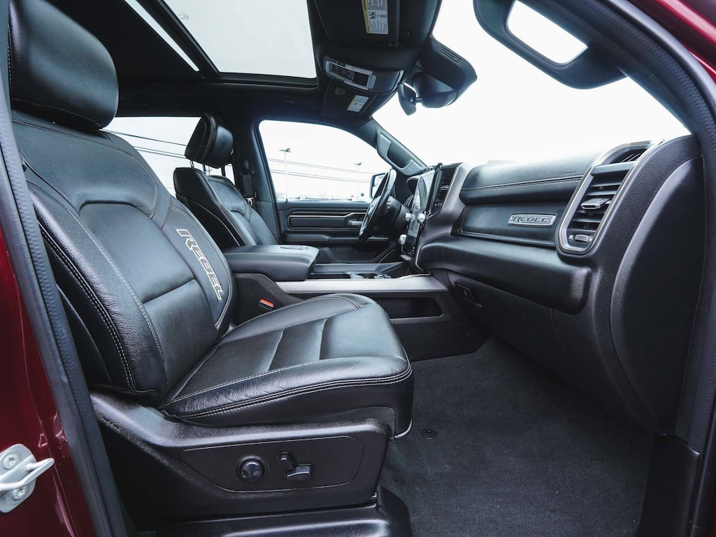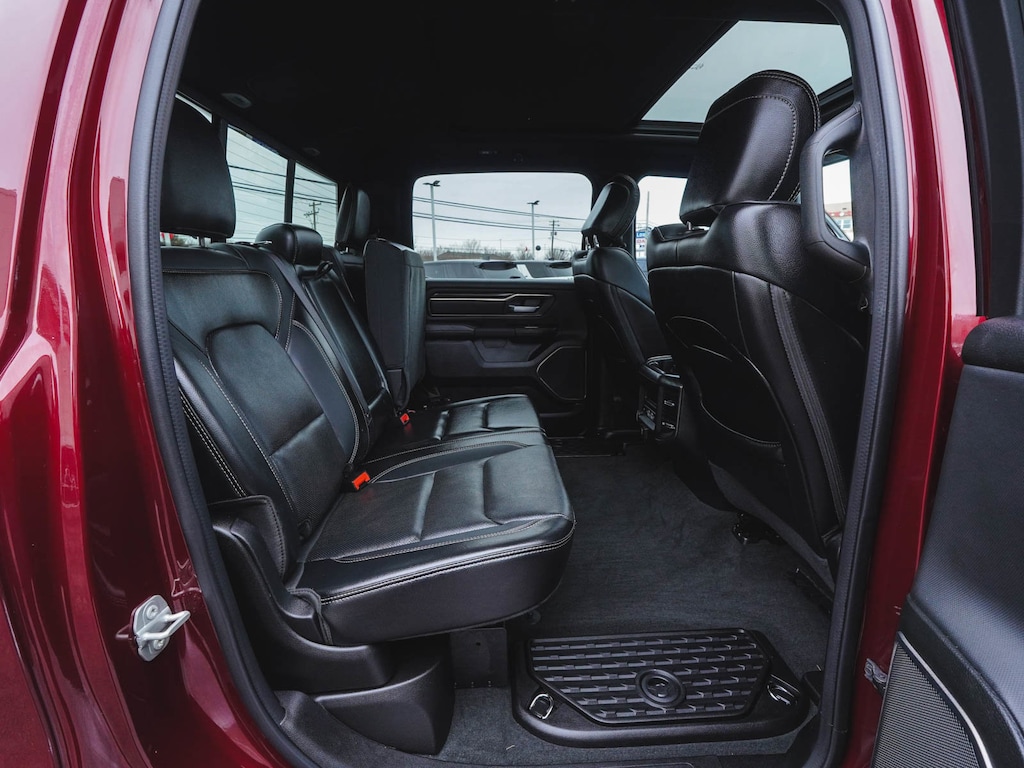 2023 Ram 1500 Rebel BLUE TOOTH, NEW PA STATE INSPECTION, FULLY RECONDITIONED, NAVIGATION, ALLOY WHEELS, NON-SMOKER, PANORAMIC SUNROOF, LEATHER, BACK UP CAMERA, 1500 Rebel, 4D Crew Cab, HEMI 5.7L V8 Multi Displacement VVT eTorque, 8-Speed Automatic, 4WD, Red Pearl, Black Lux Leather Trimmed Bucket Seats, 12" Touchscreen Display, 2-Door Passive Entry, Front Door Locks, 26 Gal. Fuel Tank (Replace 23 Gal.), 4-Wheel Disc Brakes, 48V Belt Starter Generator, 4G LTE Wi-Fi Hot Spot, ABS brakes, Accent Color Door Handles, Adaptive Cruise Control w/Stop & Go, Advanced Safety Group, AM/FM radio: SiriusXM with 360L, Apple CarPlay/Android Auto, Auto High Beam Headlamp Control, Auto-Dimming Exterior Driver Mirror, Auto-dimming Rear-View mirror, Automatic temperature control, Bed Utility Group, Black Front Bumper w/Black Plate, Blind Spot & Cross Path Detection, Brake assist, Class IV Receiver Hitch, Comfort/Convenience Group, Connected Travel & Traffic Services, Convex Wide-Angle Exterior Mirror Insert, Disassociated Touchscreen Display, Dual front impact airbags, Dual front side impact airbags, Dual-Pane Panoramic Sunroof, Electric Shift-On-Demand Transfer Case, Electronic Stability Control, Exterior Mirrors Courtesy Lamps, Exterior Mirrors w/Heating Element, Exterior Mirrors w/Memory, Exterior Mirrors w/Supplemental Signals, Front Bucket Seats, Front dual zone A/C, Front fog lights, Front wheel independent suspension, Fully automatic headlights, Global Telematics Box Module (TBM), GPS Antenna Input, Grille Surround 2 Black Texture 3 Black, harman/kardon 19 Speaker Premium Sound, HD Radio, Heated door mirrors, Heated Front Seats, Heated Second Row Seats, Heated Steering Wheel, Illuminated entry, Integrated Center Stack Radio, Integrated Voice Command w/Bluetooth, Lane Keep Assist, Leather steering wheel, Low tire pressure warning, Media Hub w/2 Charge Only USBs, Mopar Black Tubular Side Steps, MOPAR Rebel Hood Decal, MOPAR Spray In Bedliner, Navigation System, Night Edition, Occupant sensing airbag, Overhead airbag, Overhead LED Lamps, Panic alarm, Parallel & Perp Park Assist w/Stop, ParkSense Front/Rear Park Assist w/Stop, ParkView Rear Back-Up Camera, Pedestrian Emergency Braking, Pick-Up Box Lighting, Power 2-Way Driver Lumbar Adjust, Power 8-Way Driver & Passenger Seats, Power Adjustable Pedals, Power door mirrors, Power-Folding Mirrors, Premium Overhead Console, Quick Order Package 27W Rebel, Radio: Uconnect 5 Nav w/12.0" Display, Rain Sensitive Windshield Wipers, RAM Grille Badge - Black, Rear 60/40 Folding Seat, Rear Power Sliding Window, Rear step bumper, Rear Window Defroster, Rebel Level 2 Equipment Group, Remote keyless entry, Remote Start System, Remote Tailgate Release, Security Alarm, Surround View Camera System, Tailgate Ajar Warning Lamp, Telescoping steering wheel, Tilt steering wheel, Traction control, Universal Garage Door Opener, USB Host Flip, Wheels: 18" x 8.0" Gloss Black, Wireless Charging Pad. Odometer is 15302 miles below market average!