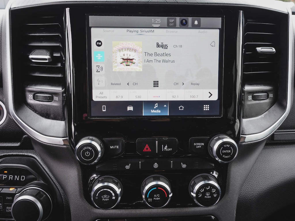 2025 Ram 1500 Big Horn/Lone Star CLEAN CARFAX, ONE OWNER, BLUE TOOTH, NEW PA STATE INSPECTION, FULLY RECONDITIONED, NAVIGATION, ALLOY WHEELS, BACK UP CAMERA, 1500 Big Horn/Lone Star, 4D Crew Cab, 3.6L V6 24V VVT, 8-Speed Automatic, 4WD, Diamond Black Crystal Pearlcoat, Black Deluxe Cloth Bucket Seats, 4-Wheel Disc Brakes, 4G LTE Wi-Fi Hot Spot, 9 Amplified Speakers w/Subwoofer, ABS brakes, Air Conditioning, AM/FM radio, Apple CarPlay/Android Auto, Auto High-beam Headlights, Auto Power-Folding Mirrors, Auto-Dimming Exterior Driver Mirror, Auto-Dimming Rear-View Mirror, Bed Utility Group, Big Horn Level 1 Equipment Group, Black Premium Power Mirrors, Body Color Rear Bumper w/Step Pads, Brake assist, Bucket Seats, Convex Wide-Angle Exterior Mirror Insert, Cruise control, Deluxe Cloth Bucket Seats, Dual front impact airbags, Dual front side impact airbags, Electronic Stability Control, Exterior Mirrors Courtesy Lamps, Exterior Mirrors w/Heating Element, Exterior Mirrors w/Supplemental Signals, Front fog lights, Front wheel independent suspension, Full Length Floor Console, Fully automatic headlights, GPS Antenna Input, GPS Navigation, Heated Front Seats, Heated Steering Wheel, Illuminated entry, Integrated Voice Command w/Bluetooth, Leather Wrapped Steering Wheel, Low tire pressure warning, MOPAR Spray In Bedliner, Occupant sensing airbag, Overhead airbag, Panic alarm, ParkView Rear Back-Up Camera, Pick-Up Box Lighting, Power 2-Way Driver Lumbar Adjust, Power Adjust 8-Way Driver Seat, Power Adjustable Pedals, Power door mirrors, Quick Order Package 23Z Big Horn, Radio: Uconnect 5 W w/8.4" Display, Rear 60/40 Folding Seat, Rear Center Armrest, Rear step bumper, Rear Window Defroster, Remote keyless entry, Sport Appearance Package, Telescoping steering wheel, Tilt steering wheel, Traction control, Trailer Brake Control, Universal Garage Door Opener, USB Host Flip, Wheels: 20" x 9" Aluminum Chrome Clad (WRK).