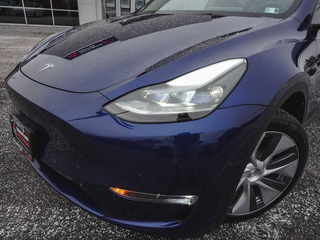 2024 Tesla Model Y Long Range ONE OWNER, BLUE TOOTH, NEW PA STATE INSPECTION, FULLY RECONDITIONED, NAVIGATION, ALLOY WHEELS, PANORAMIC SUNROOF, LEATHER, BACK UP CAMERA, Model Y Long Range, 4D Sport Utility, Electric Motor, 1-Speed Automatic, AWD, Deep Blue Metallic, Black w/Vegan Leather Seat Trim, 4-Wheel Disc Brakes, 5 Seat Interior, ABS brakes, Auto High-beam Headlights, Auto tilt-away steering wheel, Auto-dimming door mirrors, Auto-dimming Rear-View mirror, Automatic temperature control, Brake assist, Cruise control, Dual front impact airbags, Dual front side impact airbags, Electronic Stability Control, Exterior Parking Camera Rear, Four wheel independent suspension, Front Bucket Seats, Front dual zone A/C, Front fog lights, Fully automatic headlights, Genuine wood dashboard insert, Heated door mirrors, Heated front seats, Heated rear seats, Heated steering wheel, Illuminated entry, Knee airbag, Lane Departure Warning System, Low tire pressure warning, Memory seat, Navigation System, Occupant sensing airbag, Overhead airbag, Power door mirrors, Power driver seat, Power Liftgate, Power passenger seat, Radio: Premium Audio System w/13 Speakers, Rain sensing wipers, Rear window defroster, Security system, Steering wheel memory, Steering wheel mounted A/C controls, Telescoping steering wheel, Traction control, Vegan Leather Seat Trim, Wheels: 19" x 9.5" Gemini Dark. 122/112 City/Highway MPG