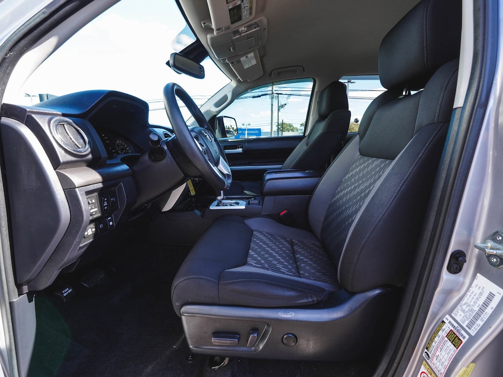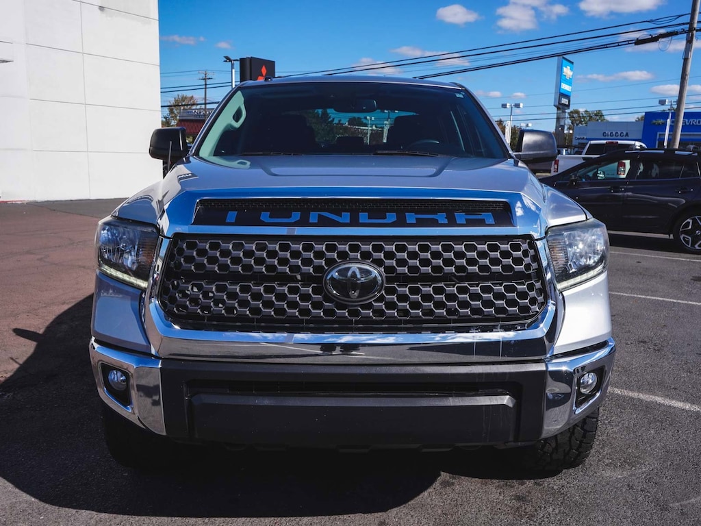 2019 Toyota Tundra SR5 CrewMax BLUE TOOTH, NEW PA STATE INSPECTION, FULLY RECONDITIONED, ALLOY WHEELS, BACK UP CAMERA, Tundra SR5 CrewMax, 4D CrewMax, i-Force 5.7L V8 Flex Fuel DOHC 32V LEV, 6-Speed Automatic Electronic, 4WD, Silver Sky Metallic, Black w/Fabric Seat Trim, 38 Gallon Fuel Tank Capacity, 4-Wheel Disc Brakes, 6 Speakers, ABS brakes, Air Conditioning, Anti-Theft Immobilizer w/Alarm, Auto High-beam Headlights, Auto-Dimming Rear-View Mirror, Brake assist, Cruise control, Deck Rail System, Dual front impact airbags, Dual front side impact airbags, Electronic Stability Control, Exterior Parking Camera Rear, Front Bucket Seats, Front fog lights, Front wheel independent suspension, Fully automatic headlights, Garage door transmitter: HomeLink, Heated door mirrors, Illuminated entry, Knee airbag, Leather Shift Knob, Low tire pressure warning, Occupant sensing airbag, Overhead airbag, Panic alarm, Power door mirrors, Radio: Entune Audio Plus AM/FM/HD Radio w/CD, Rear step bumper, Rear window defroster, Remote keyless entry, SR5 Upgrade Package, Traction control, Urethane Tilt/Telescopic Steering Wheel.