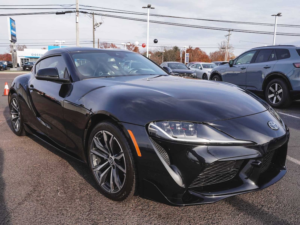 2022 Toyota Supra 2.0 GR BLUE TOOTH, NEW PA STATE INSPECTION, FULLY RECONDITIONED, NAVIGATION, ALLOY WHEELS, LEATHER, BACK UP CAMERA, Supra 2.0 GR, 2D Coupe, 2.0L Turbocharged, 8-Speed Automatic, RWD, Nocturnal, Black w/Alcantara/Leather Seat Trim, 4-Wheel Disc Brakes, ABS brakes, Alcantara/Leather Seat Trim, AM/FM radio: SiriusXM, Auto High-beam Headlights, Auto-dimming door mirrors, Auto-dimming Rear-View mirror, Automatic temperature control, Brake assist, Child-Seat-Sensing Airbag, Cruise control, Dual front impact airbags, Dual front side impact airbags, Electronic Stability Control, Exterior Parking Camera Rear, Four wheel independent suspension, Front dual zone A/C, Front fog lights, Front Sport Seats, Fully automatic headlights, Garage door transmitter: HomeLink, Heated door mirrors, Illuminated entry, Knee airbag, Leather Shift Knob, Leather steering wheel, Low tire pressure warning, Navigation System, Occupant sensing airbag, Overhead airbag, Panic alarm, Power door mirrors, Power driver seat, Power passenger seat, Rain sensing wipers, Rear window defroster, Remote keyless entry, Security system, Telescoping steering wheel, Tilt steering wheel, Traction control, Turn signal indicator mirrors, Wheels: 18" Cast Aluminum. 25/32 City/Highway MPG