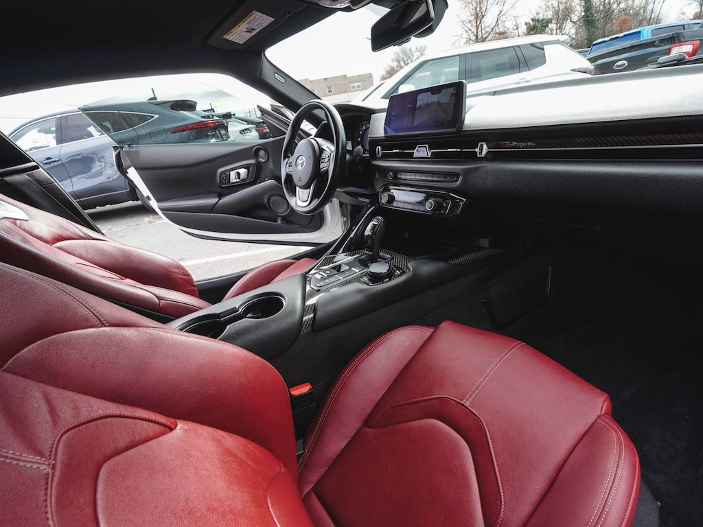 2023 Toyota GR Supra 3.0 Premium CLEAN CARFAX, BLUE TOOTH, NEW PA STATE INSPECTION, FULLY RECONDITIONED, NAVIGATION, ALLOY WHEELS, LEATHER, BACK UP CAMERA, GR Supra 3.0 Premium, 2D Coupe, 3.0L I6 DOHC 24V, 8-Speed Automatic, RWD, Absolute Zero, Red w/Leather Seat Trim, 12 Speakers, 4-Wheel Disc Brakes, ABS brakes, Adaptive suspension, AM/FM radio: SiriusXM, Apple CarPlay, Auto High-beam Headlights, Auto-dimming door mirrors, Auto-dimming Rear-View mirror, Automatic temperature control, Brake assist, Carbon Fiber Mirror Caps (TMS), Child-Seat-Sensing Airbag, Driver Assist Package, Driving Assistant Safety Sense, Dual front impact airbags, Dual front side impact airbags, Electronic Stability Control, Exterior Parking Camera Rear, Four wheel independent suspension, Front dual zone A/C, Front fog lights, Full Color Head-Up Display (HUD), Full-Speed Dynamic Radar Cruise Control, Fully automatic headlights, Garage door transmitter: HomeLink, Heads-Up Display, Heated door mirrors, Heated Front Sport Seats, Illuminated entry, Knee airbag, Leather Seat Trim, Leather Shift Knob, Leather steering wheel, Low tire pressure warning, Memory seat, Navigation System, Occupant sensing airbag, Overhead airbag, Panic alarm, Parking Support Alert, Power door mirrors, Power driver seat, Power passenger seat, Qi-Compatible Wireless Charging Tray, Radio: AM/FM w/500W JBL HiFi Surround Sound System, Rain sensing wipers, Rear window defroster, Red Front Wheel Brake w/Logo, Remote keyless entry, Security system, Telescoping steering wheel, Traction control, Turn signal indicator mirrors, Wheels: 19" Forged Aluminum. 23/31 City/Highway MPG