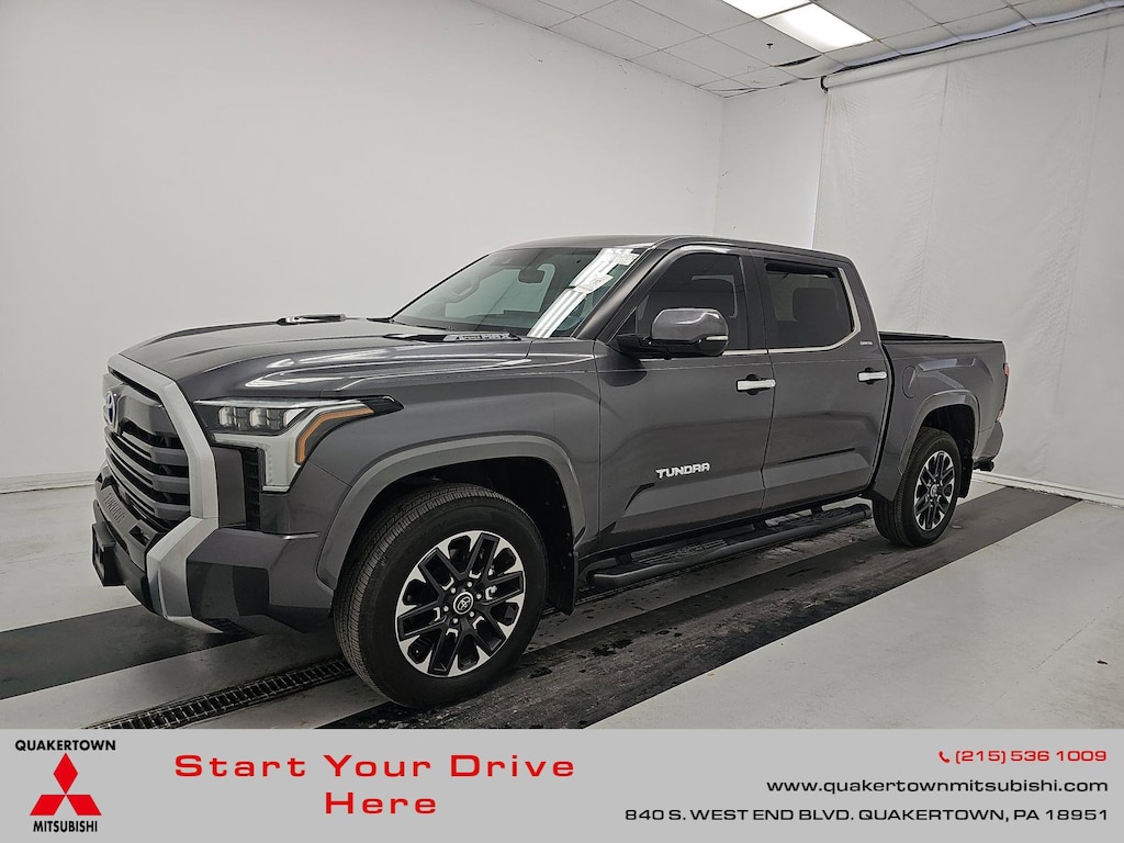 2024 Toyota Tundra Hybrid Limited Recent Arrival! ONE OWNER, BLUE TOOTH, NEW PA STATE INSPECTION, FULLY RECONDITIONED, NAVIGATION, ALLOY WHEELS, NON-SMOKER, PANORAMIC SUNROOF, LEATHER, BACK UP CAMERA, Tundra Hybrid Limited, 4D Crew Cab, 3.4L V6, 10-Speed Automatic, 4WD, Magnetic Gray Metallic, Black w/SofTex Seat Trim, 20" x 8" Alloy Wheels, 4-Wheel Disc Brakes, 9 Speakers, ABS brakes, AM/FM radio: SiriusXM, Apple CarPlay/Android Auto, Auto High-beam Headlights, Auto-dimming door mirrors, Auto-dimming Rear-View mirror, Automatic temperature control, Bed Step (TMS), Blind Spot Monitor, Brake assist, Cruise control, Dual front impact airbags, Dual front side impact airbags, Dual-Step Running Board - Black (TMS), Electronic Stability Control, Exterior Parking Camera Rear, Front dual zone A/C, Front fog lights, Front wheel independent suspension, Fully automatic headlights, Garage door transmitter: HomeLink, Heated & Ventilated Front Bucket Seats, Heated Leather Steering Wheel, Heated Power Folding Color-Keyed Outside Mirrors, Heated steering wheel, High Grade Full LED Headlamp, Illuminated entry, Knee airbag, Leather Shift Knob, Limited Premium Package, Low tire pressure warning, Memory seat, Multi-Terrain Back Monitor, Navigation System, Occupant sensing airbag, Overhead airbag, Panic alarm, Panoramic View Back Monitor, Panoramic View Monitor Package, Power door mirrors, Power driver seat, Power Package, Power Panoramic Roof, Power passenger seat, Qi-Compatible Wireless Smartphone Charger, Radio: Premium Audio w/JBL, Rear step bumper, Rear window defroster, Remote keyless entry, Security system, SofTex Seat Trim, Telescoping steering wheel, Tilt steering wheel, Towing Technology Package, Traction control, Turn signal indicator mirrors. Odometer is 14139 miles below market average!